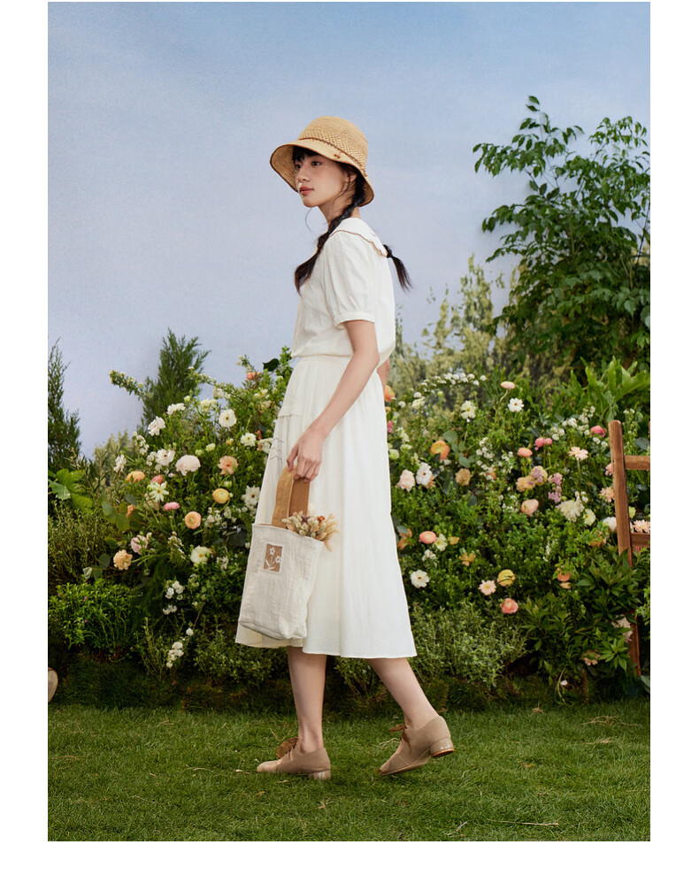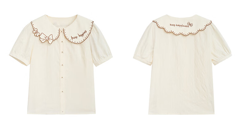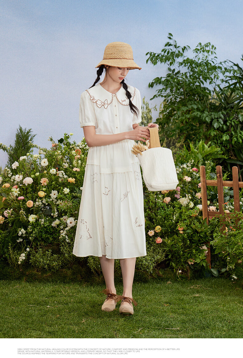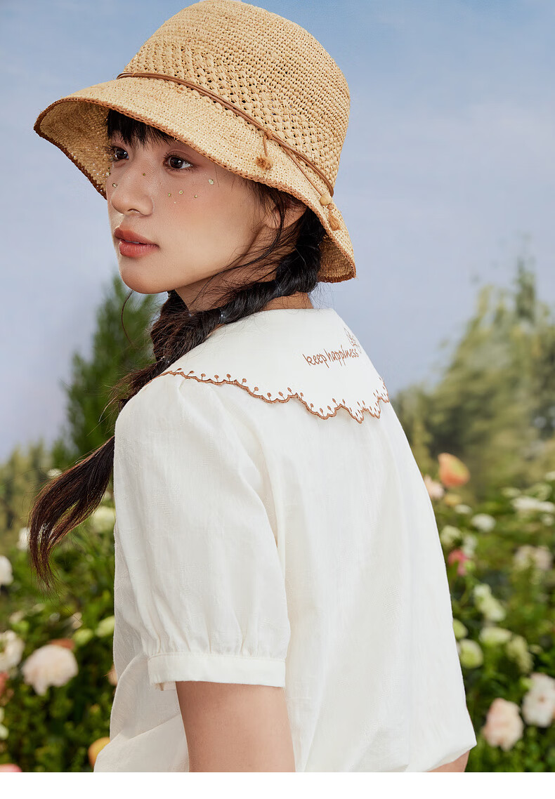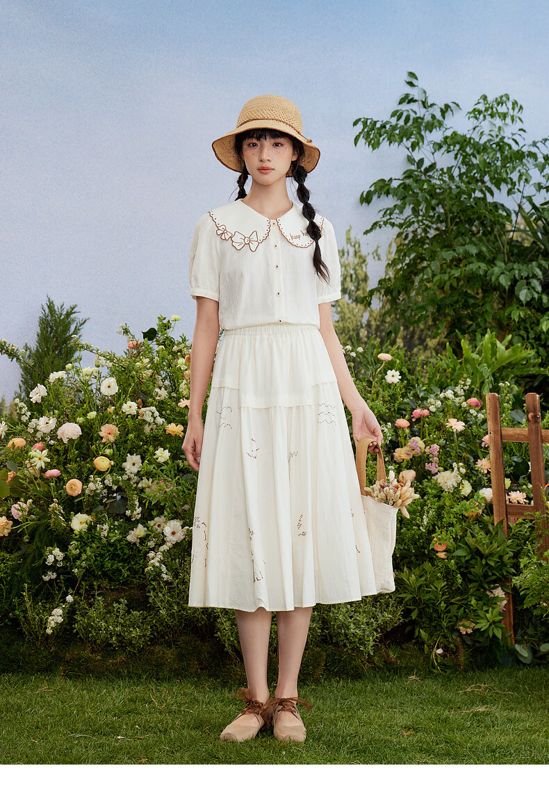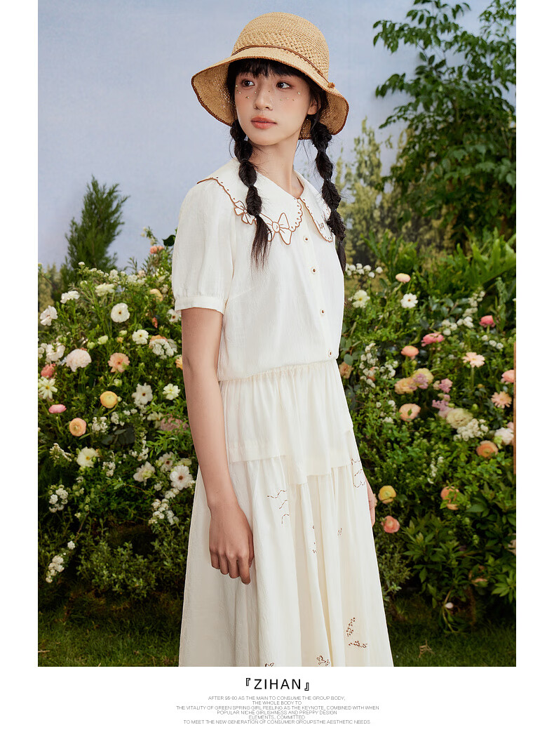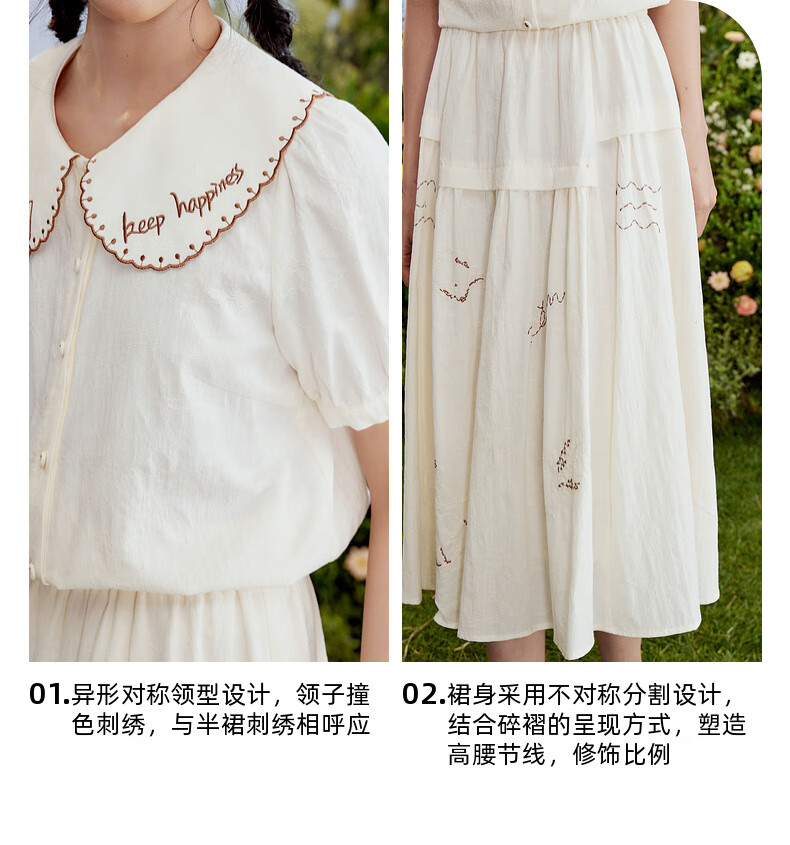 Zihan (ZIHAN) Zihan special-shaped lapel shirt embroidered skirt suit women's summer forest-style design two-piece set Mijin S