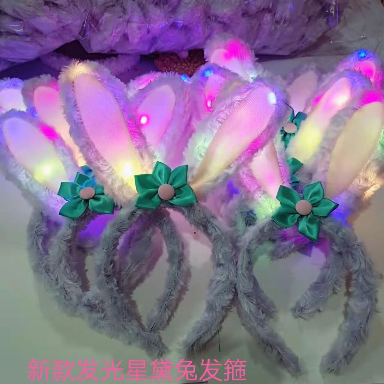 Muyu Korean style headband with luminous stars and rabbit ears, the same style as the Internet celebrity, cute bunny girl heart plush luminous headband, luminous stars and lu, one pack