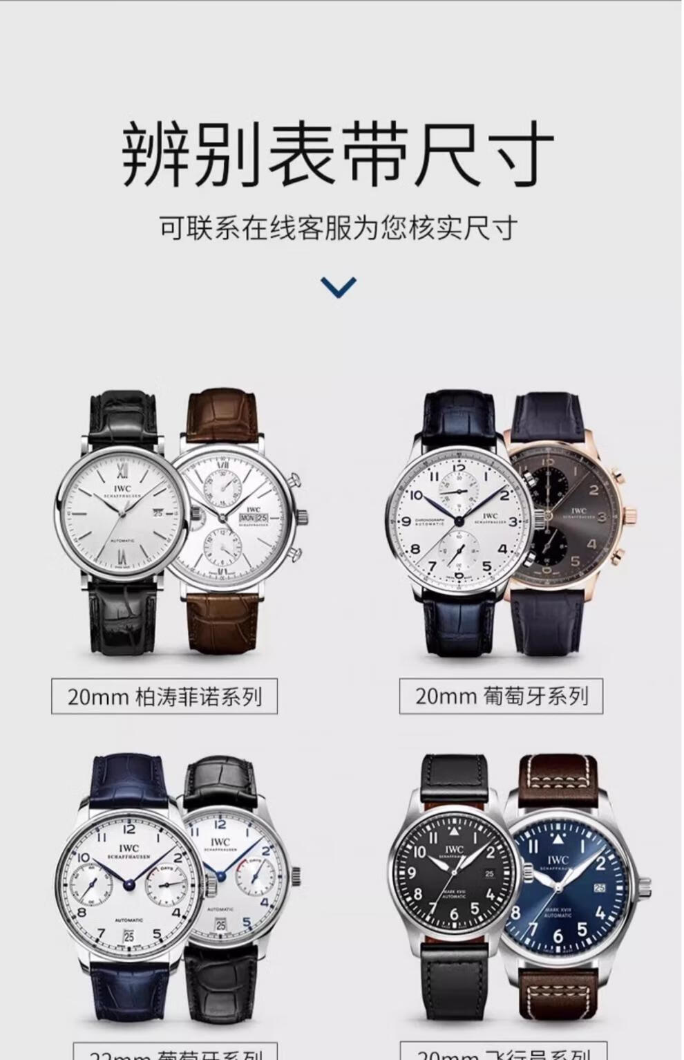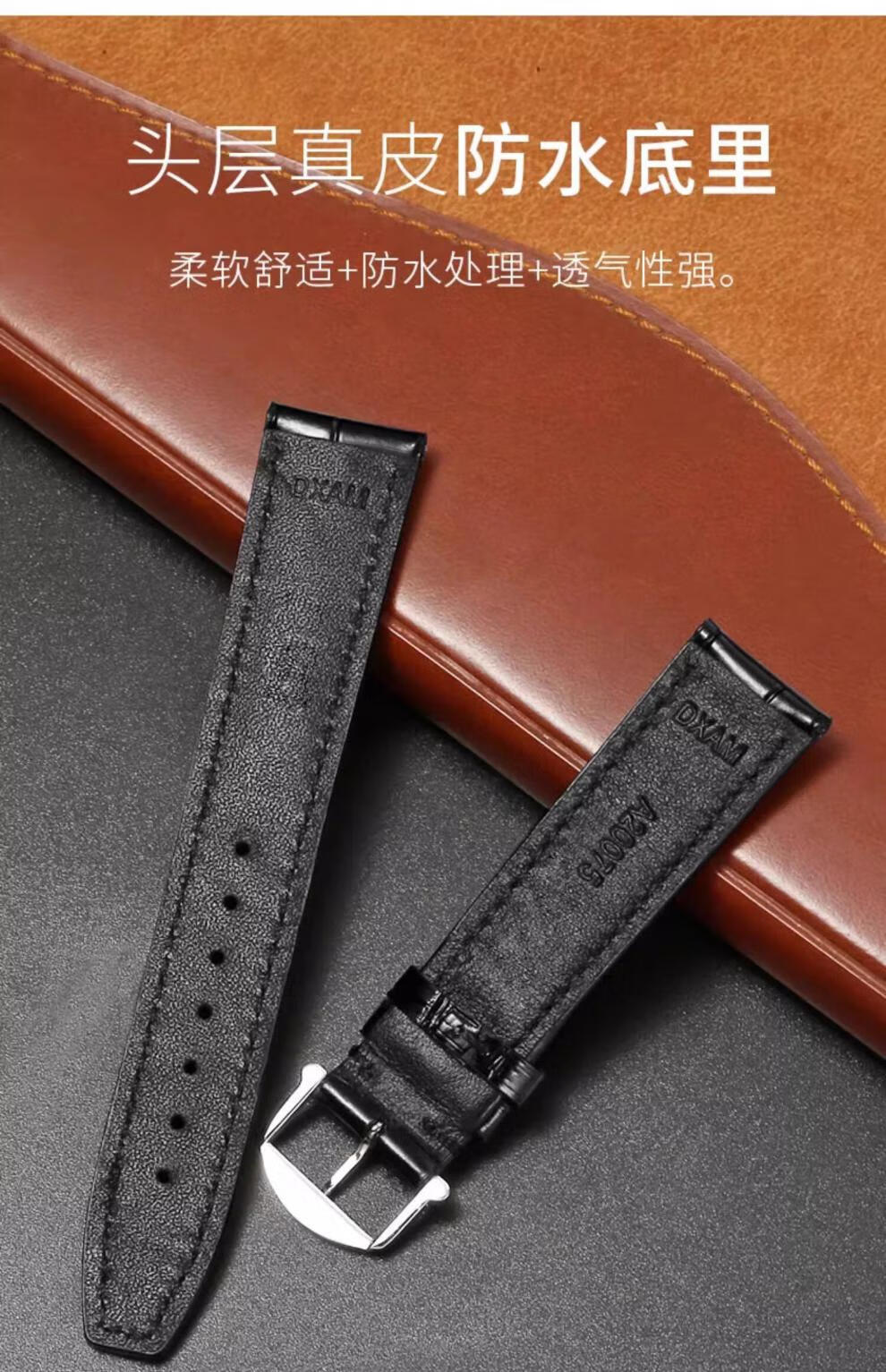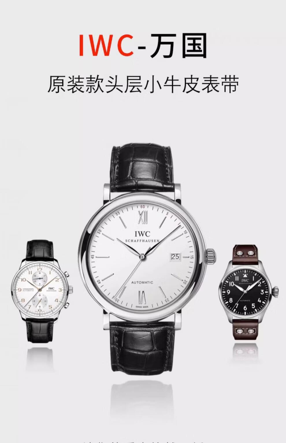 WPOOC IWC watch strap genuine leather original men's iwc Portofino Portugal 7 chronograph original seven-day chain pilot adapter bracelet black silver pin buckle original model 20 mm belt width