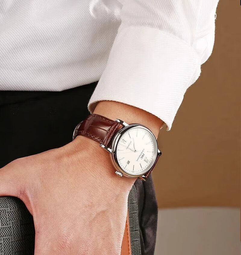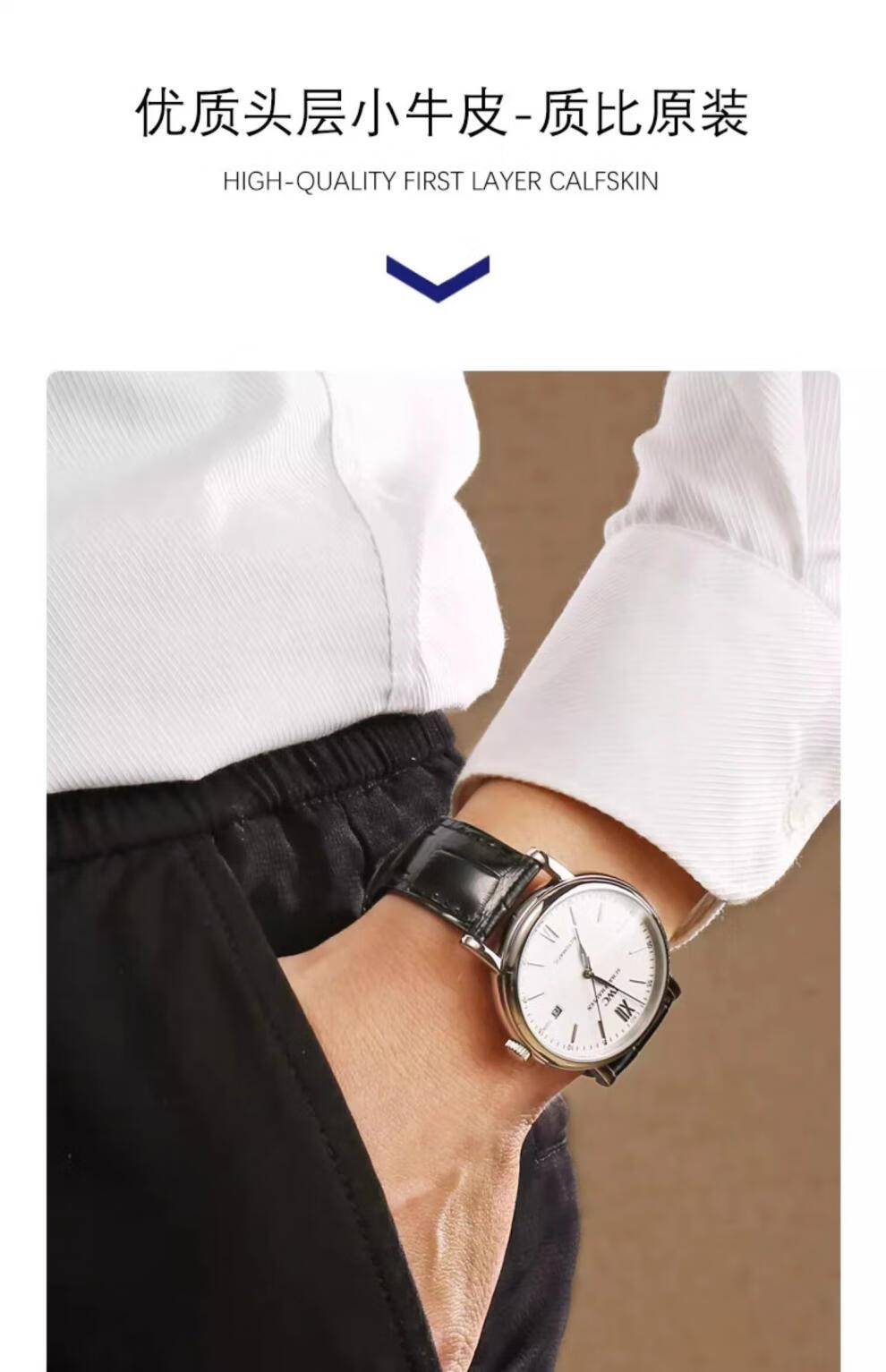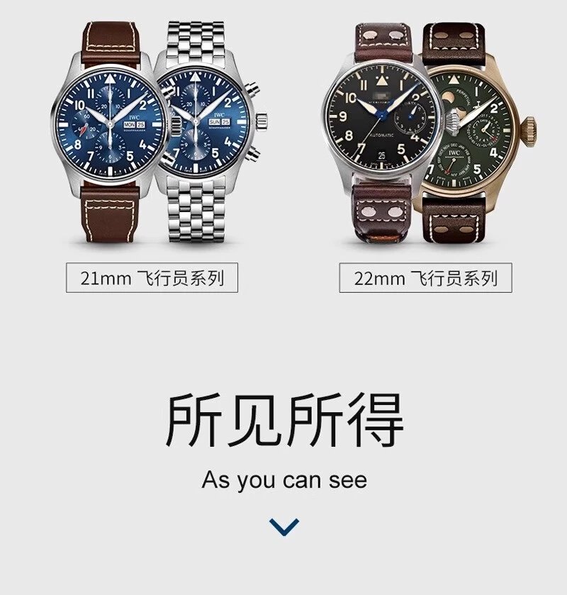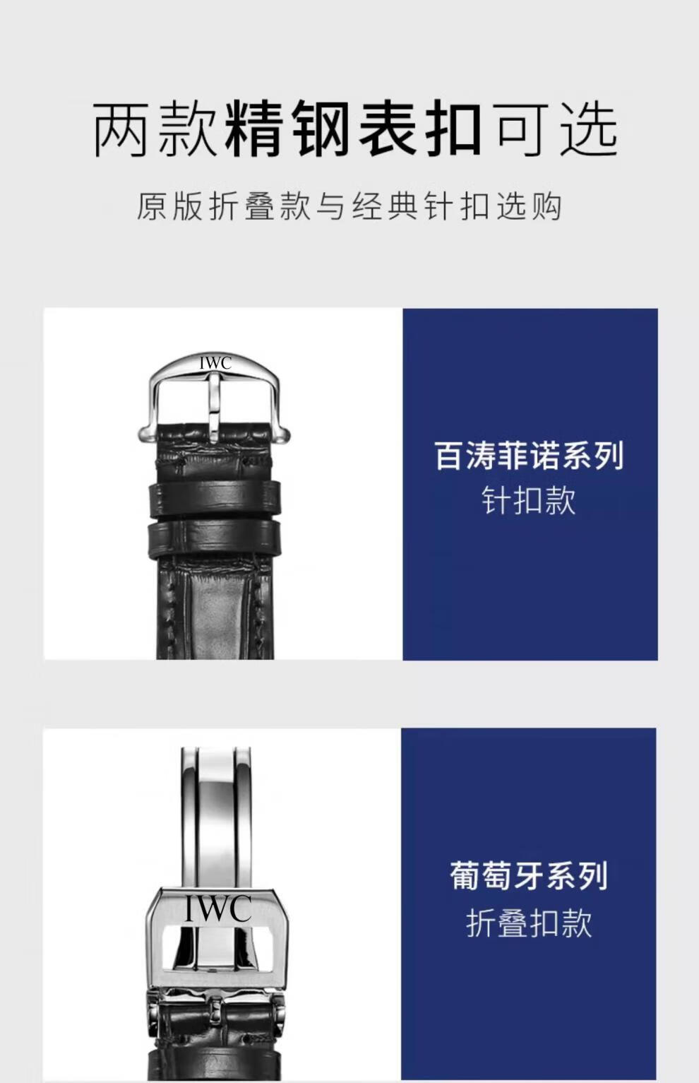 WPOOC IWC watch strap genuine leather original men's iwc Portofino Portugal 7 chronograph original seven-day chain pilot adapter bracelet black silver pin buckle original model 20 mm belt width