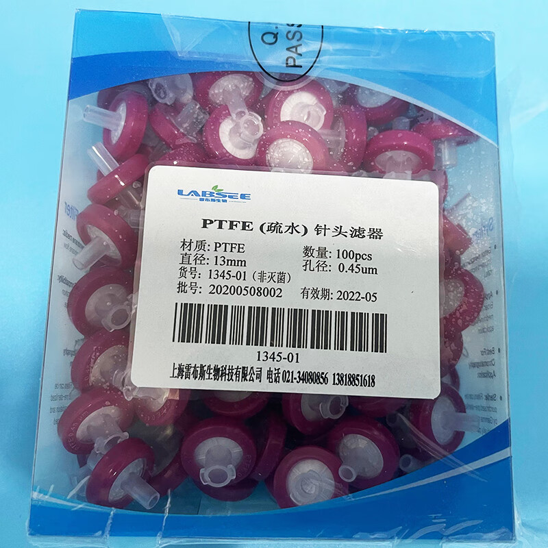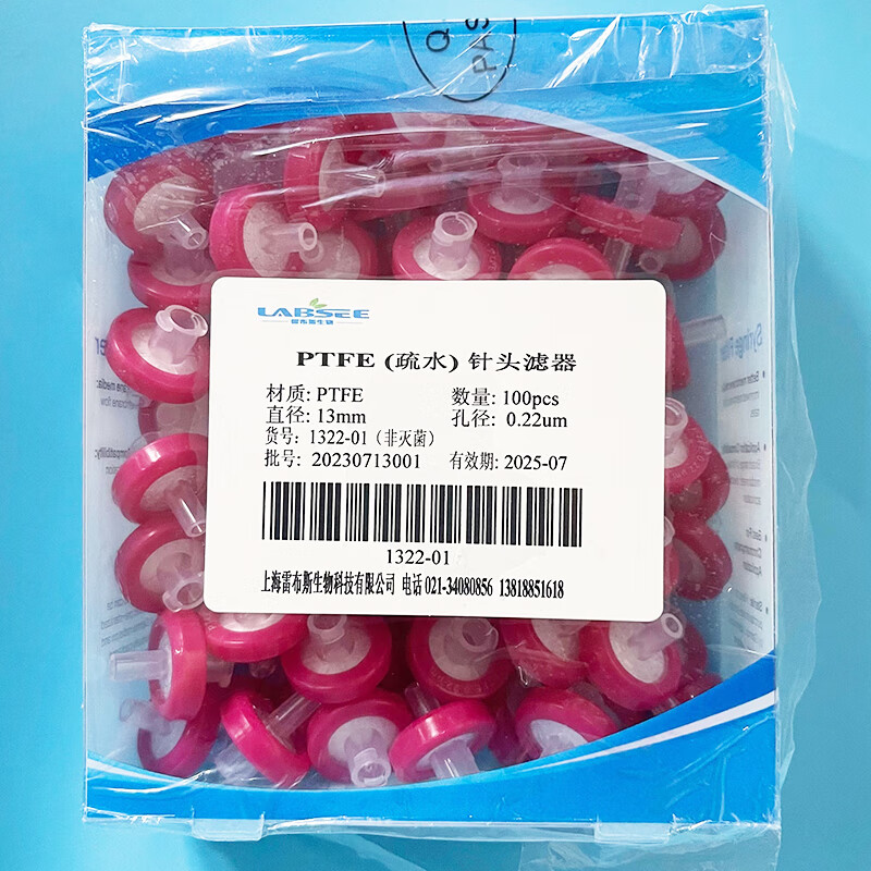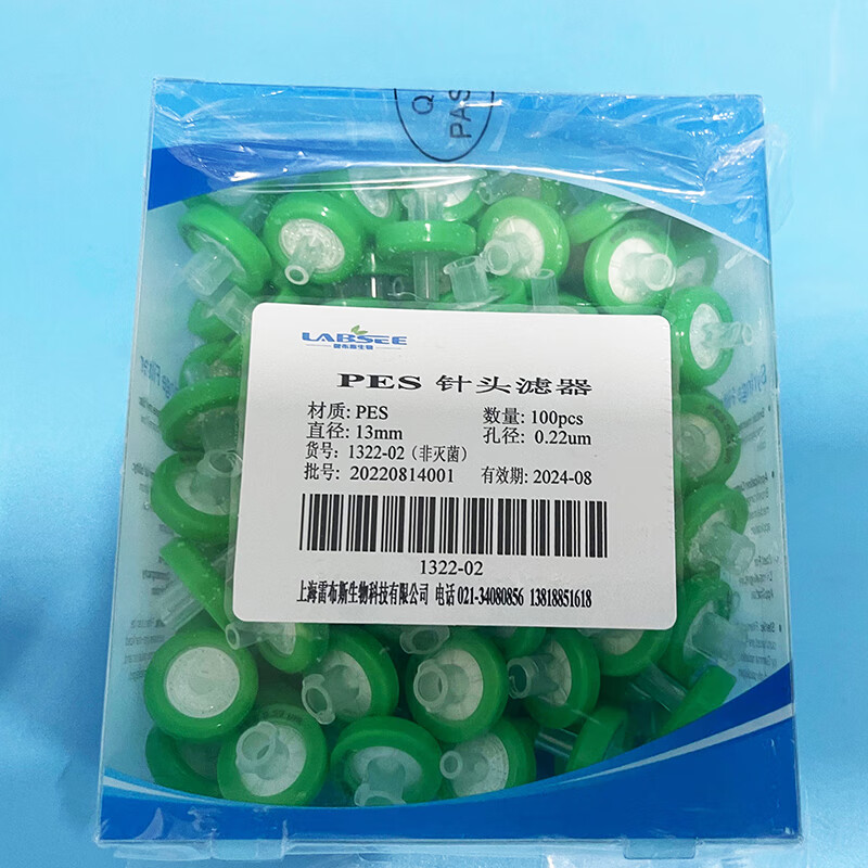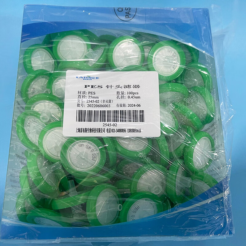 LABSEE1345-02PES water system disposable syringe filter PTFE syringe filter syringe filter organic system 13mm2 PES water system 25mm*0.22um 100 pieces/box