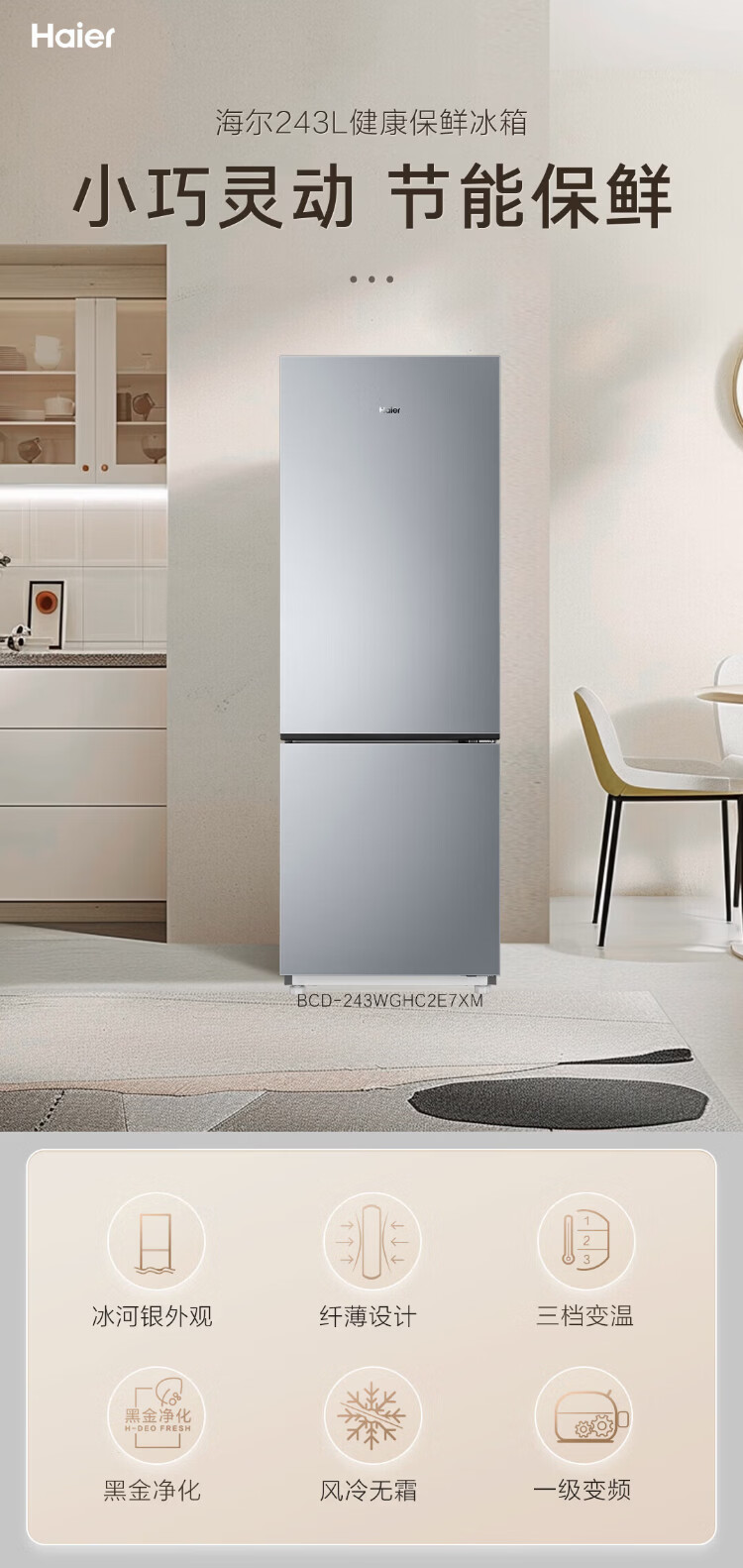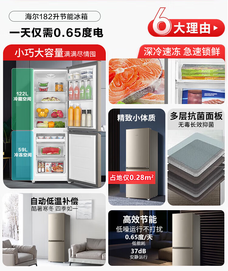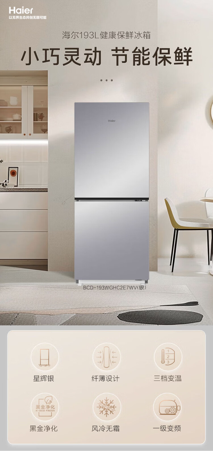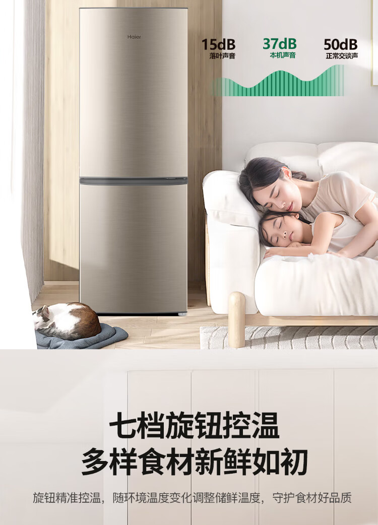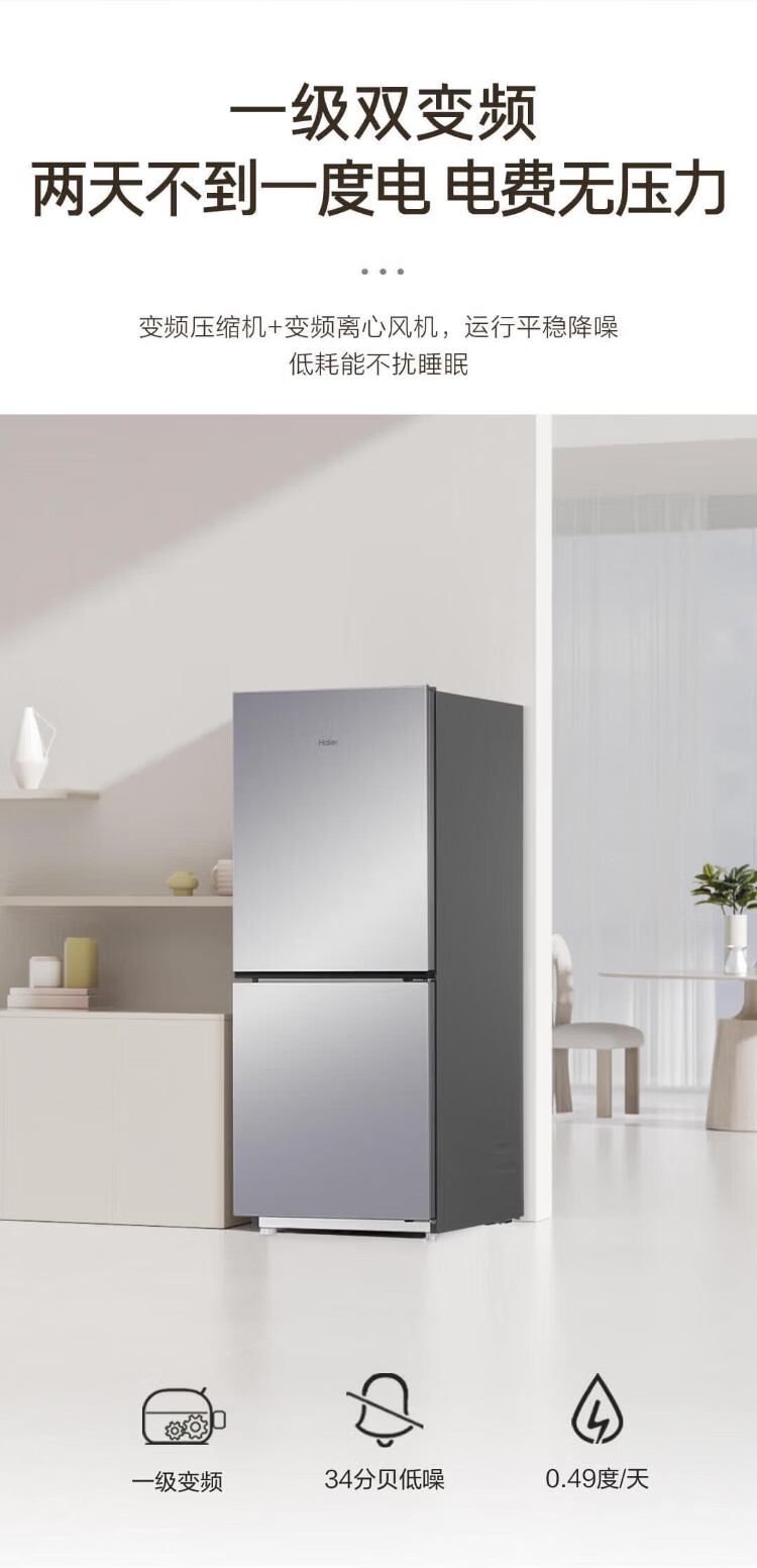 Haier refrigerator double door air-cooled frost-free energy-saving one or two doors new grade energy efficiency refrigerator small 1.5 meters high small apartment household refrigerator frequency conversion ultra-thin refrigerator rental room two doors 182 liter double door refrigerator smart power saving new model expedited delivery