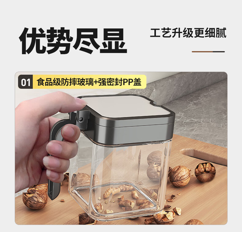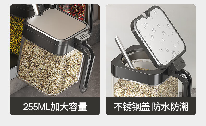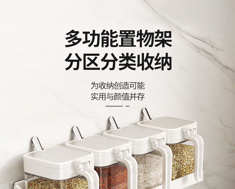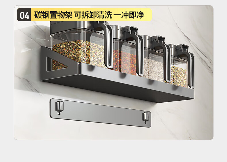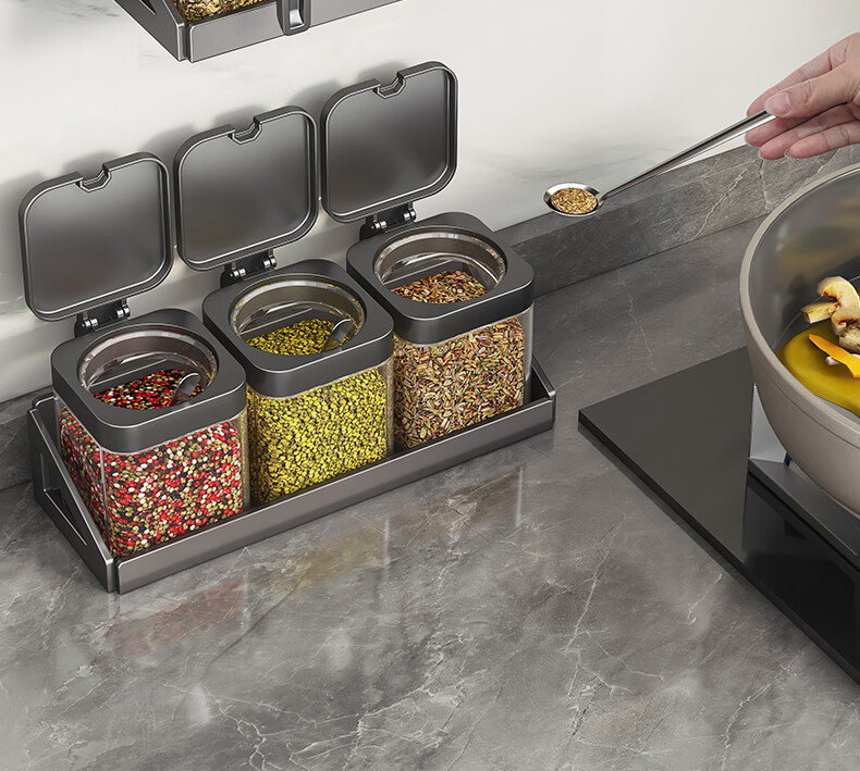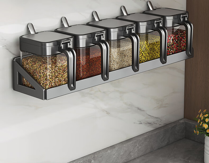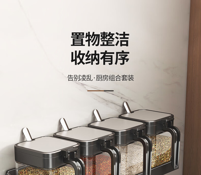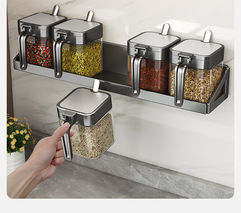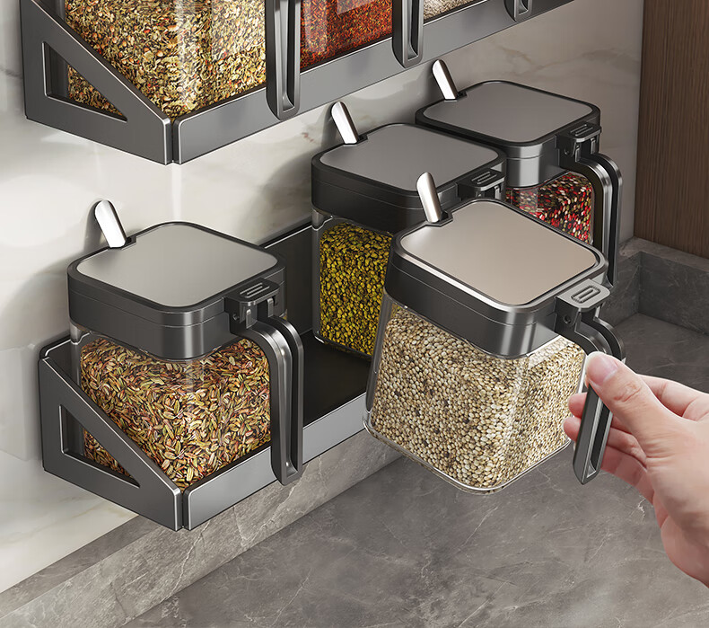 Yameiji condiment seasoning box storage rack combination set seasoning jar bottle storage rack home kitchen wall hanging salt shaker seal four-piece set 3 seasoning jars + gun ash storage rack