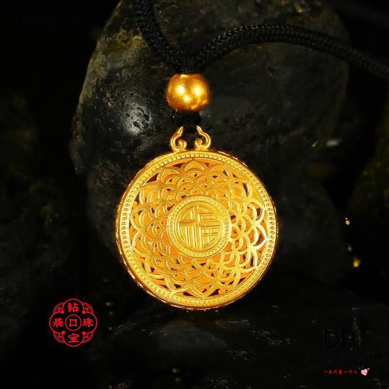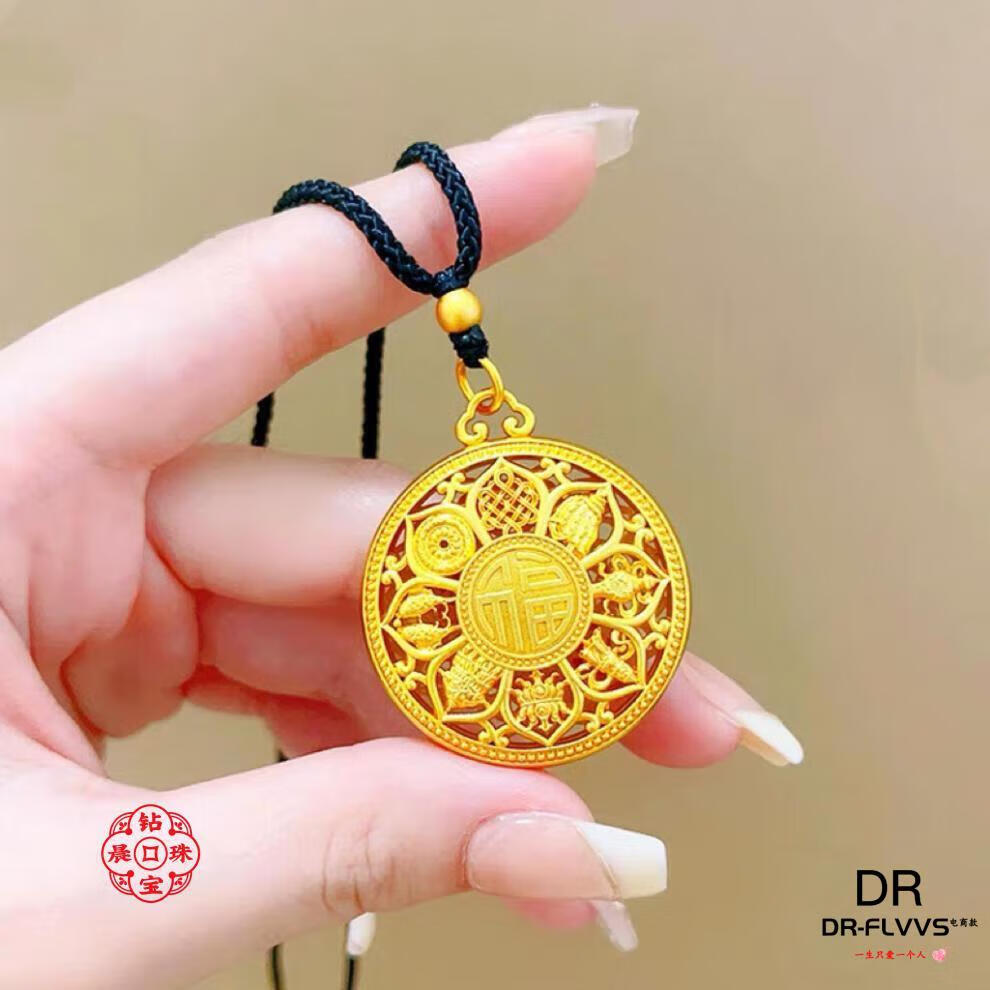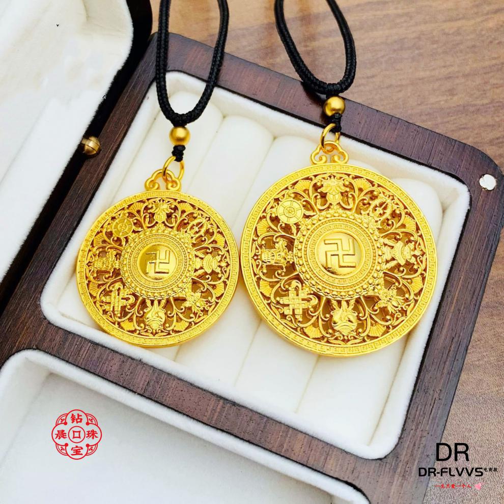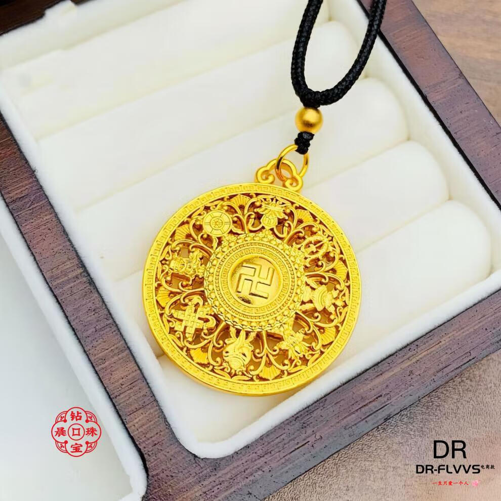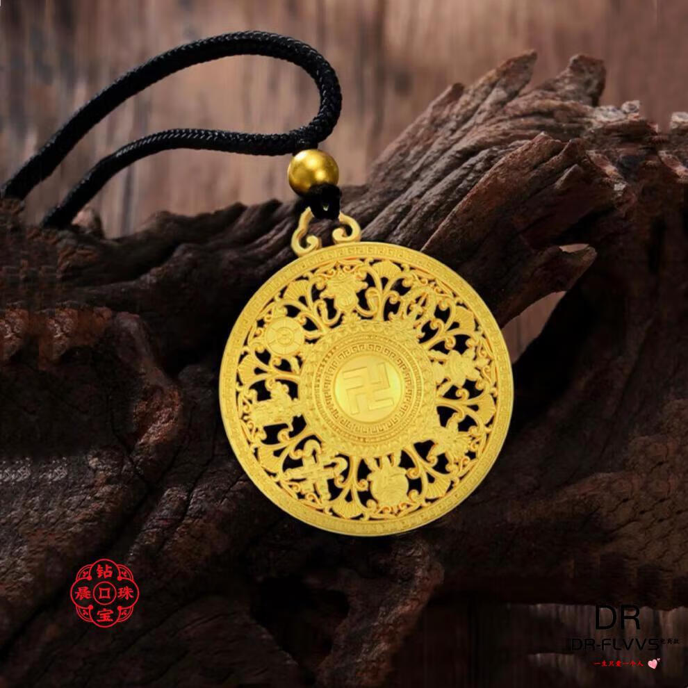 Fat Donglai's same style 18k gold eight treasures compass pendant, the Great Sun Tathagata Amitabha 18k yellow l gold lotus necklace Wanfu eight treasures compass pendant size 35*35 (+ rope