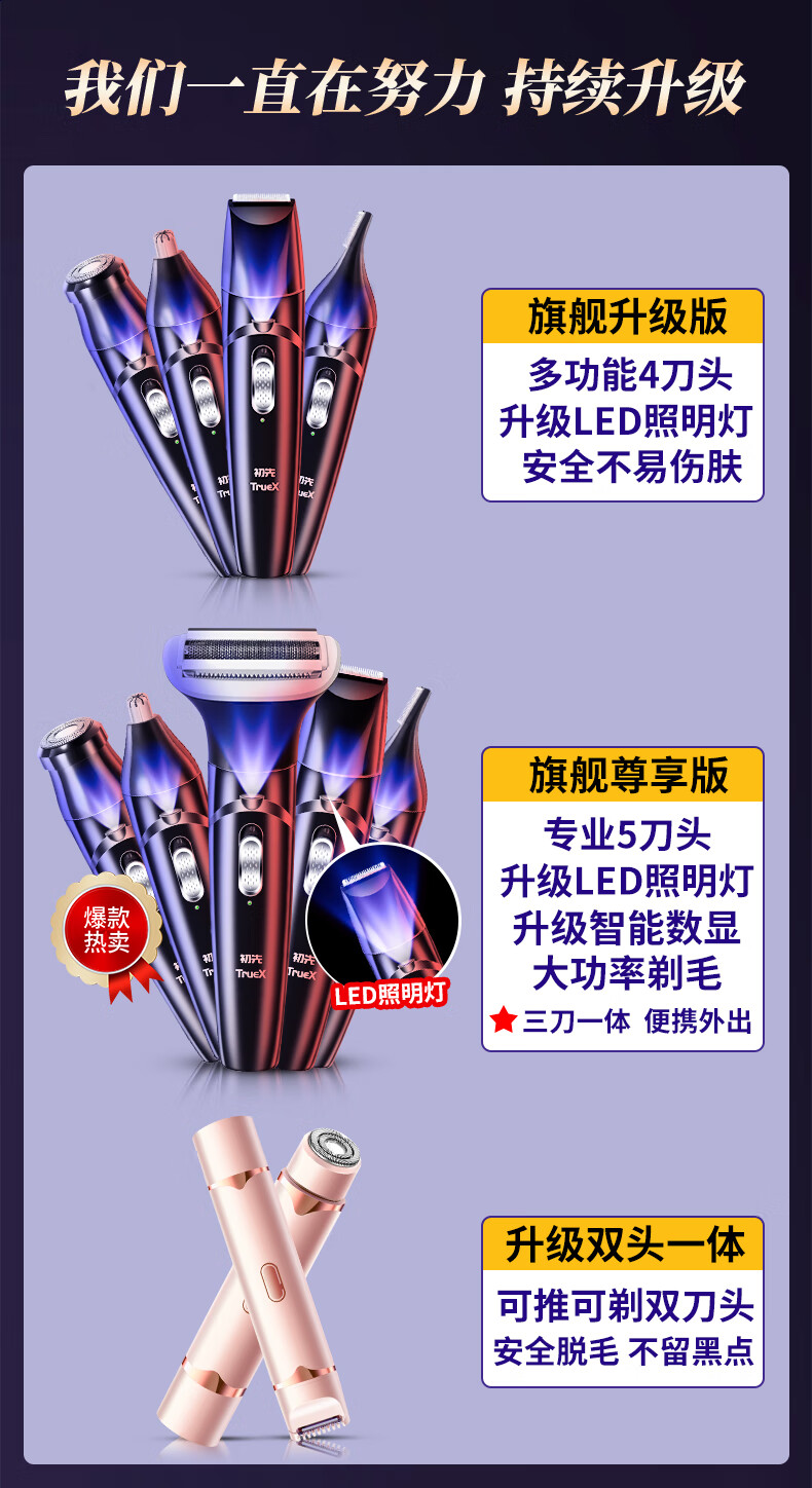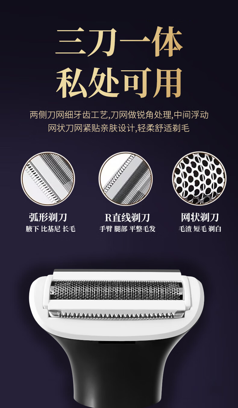 Chuxian electric private part shaver, epilator shaver, underarm shaving, leg hair, nose hair trimmer, men's and women's pubic epilator, bikini private part armpit hair removal and anal hair removal, exclusive 5-knife all-in-one LED lighting, available for the whole body, plus ice point body lotion