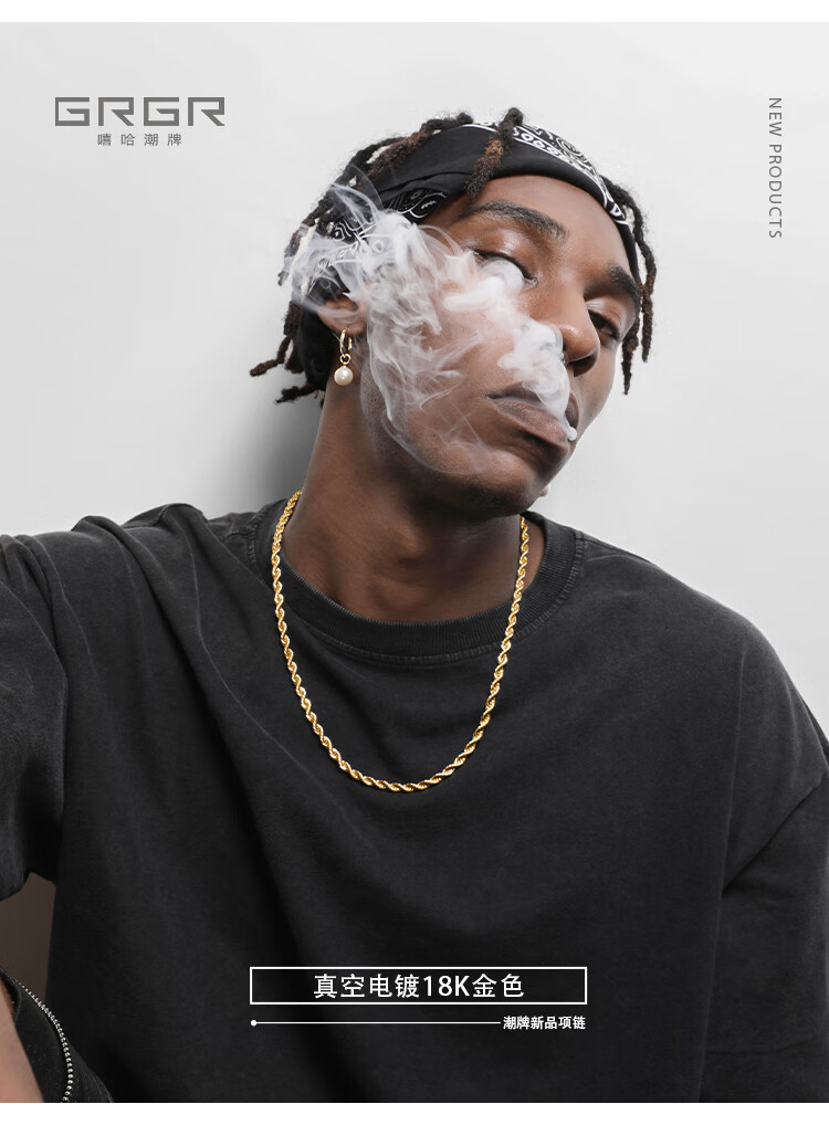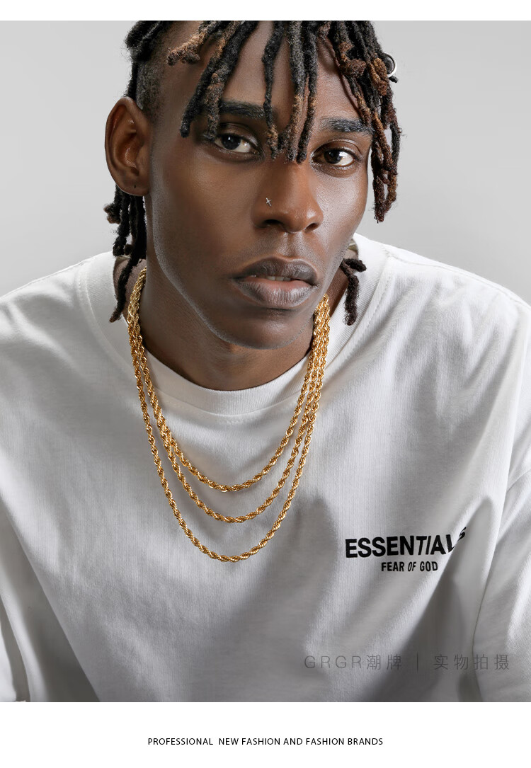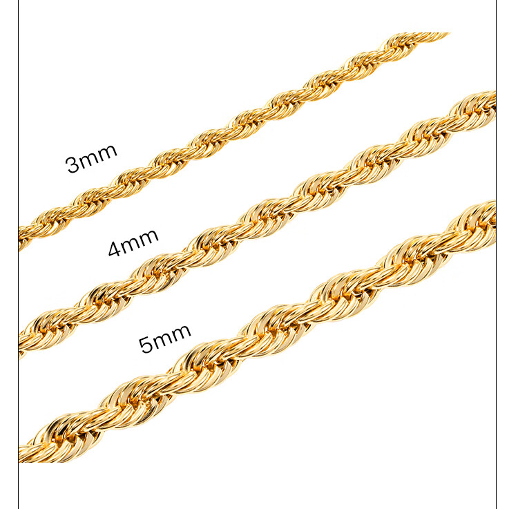 Fat Donglai same style 18k gold twist chain short twist chain gold color K gold necklace for men and women gold 5mm55cm