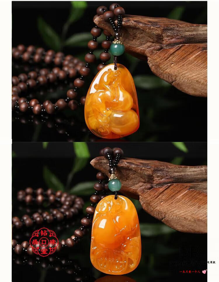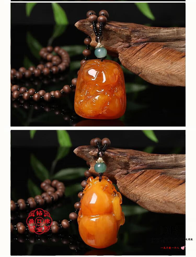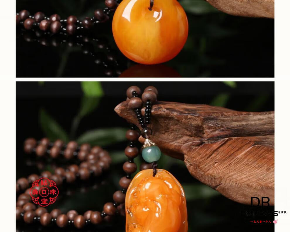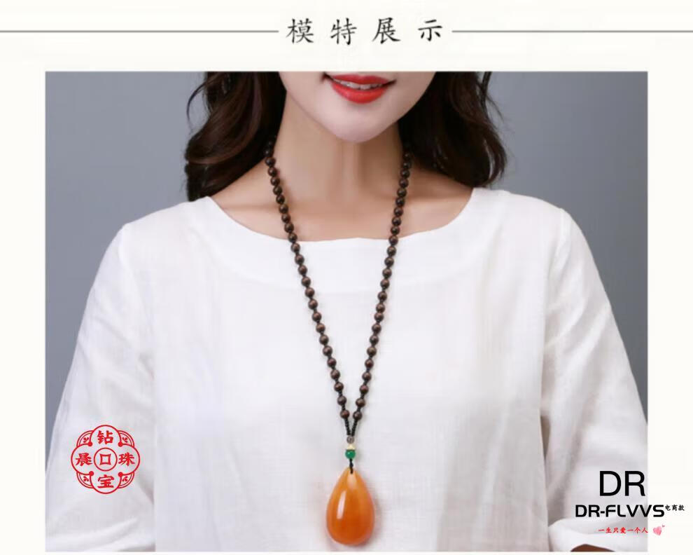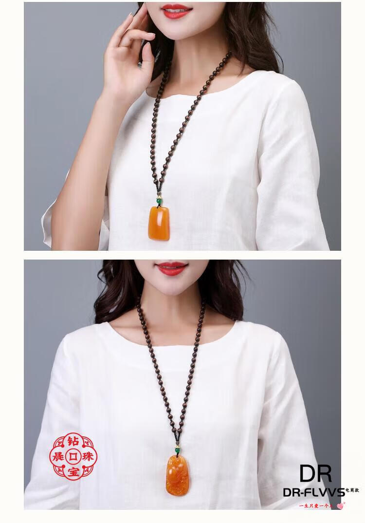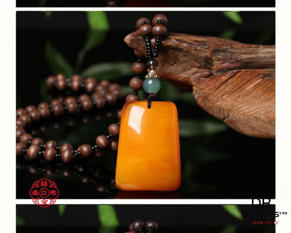 Fat Donglai's same style amber necklace for women, old beeswax pendant sweater chain for men and women, chicken oil yellow beeswax chicken wing wood necklace, old honey water drop/chicken wing wood chain