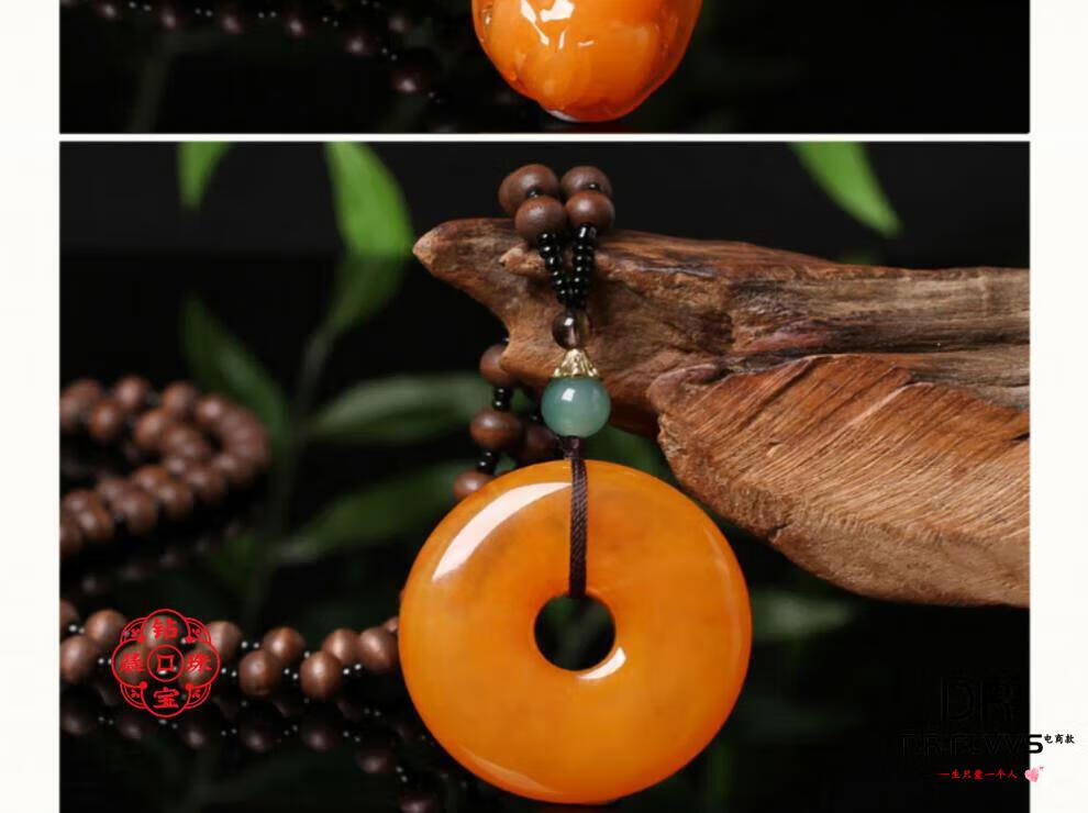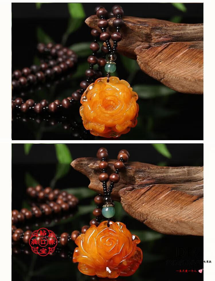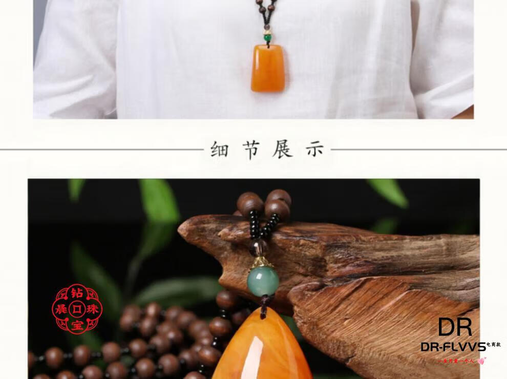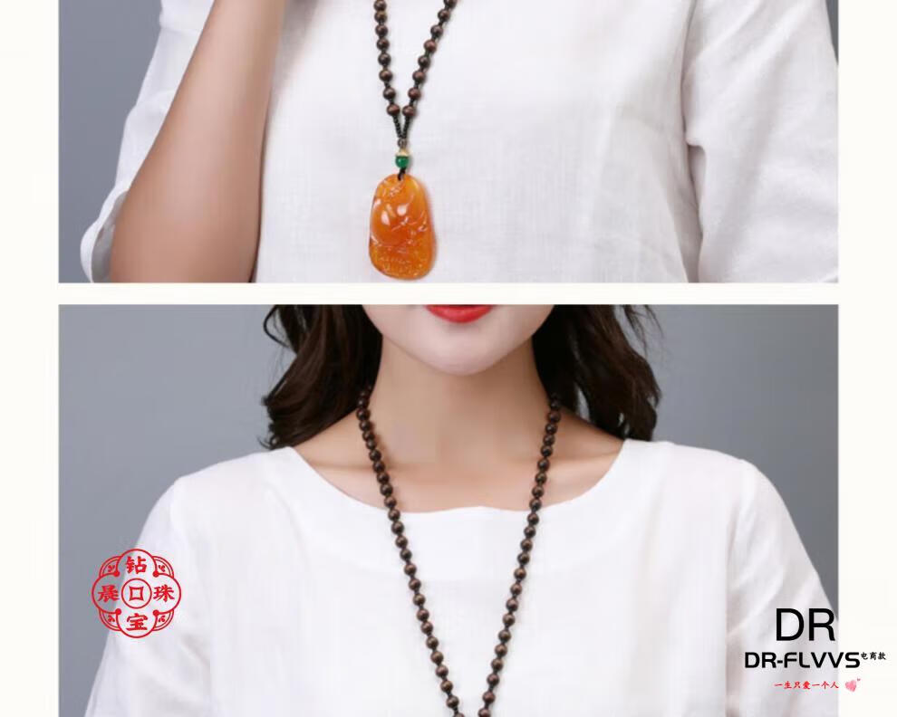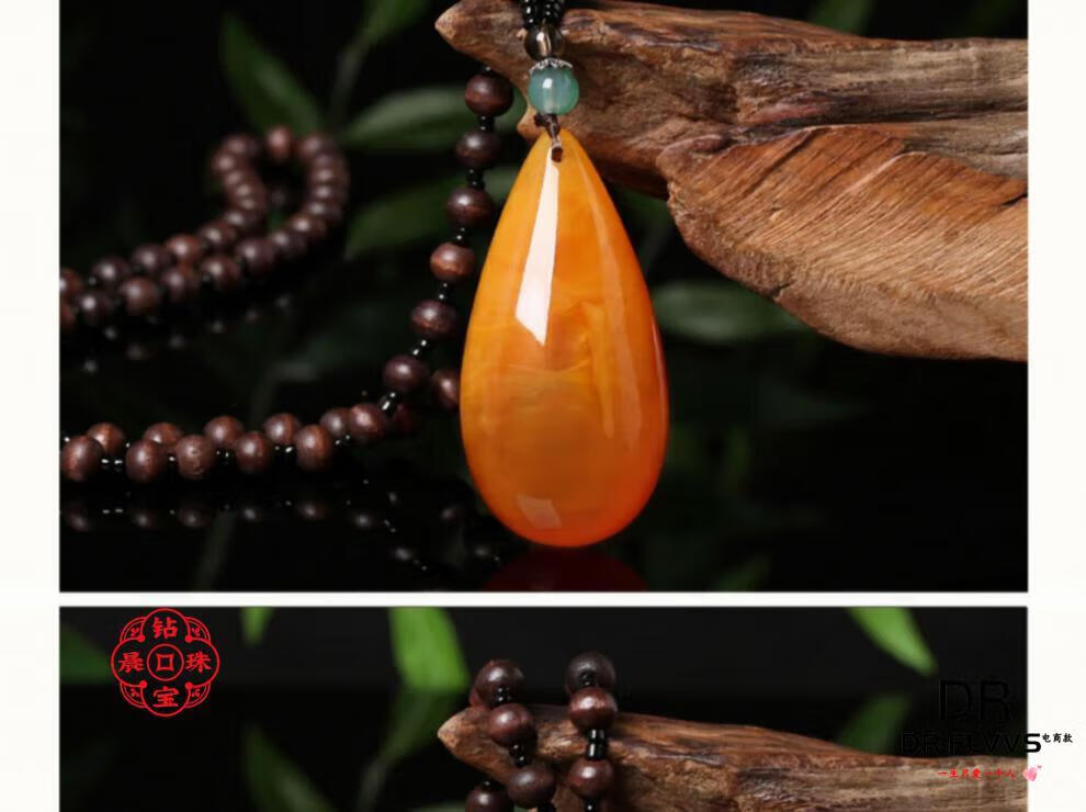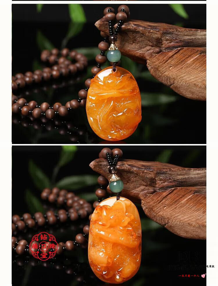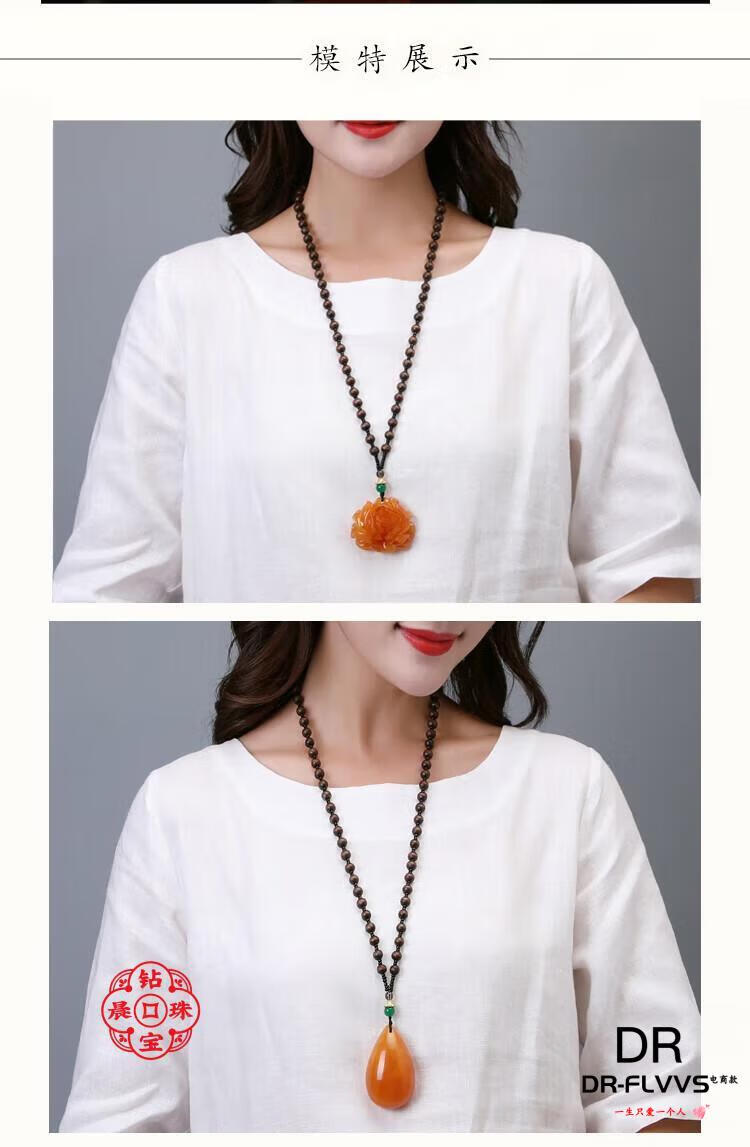 Fat Donglai's same style amber necklace for women, old beeswax pendant sweater chain for men and women, chicken oil yellow beeswax chicken wing wood necklace, old honey water drop/chicken wing wood chain