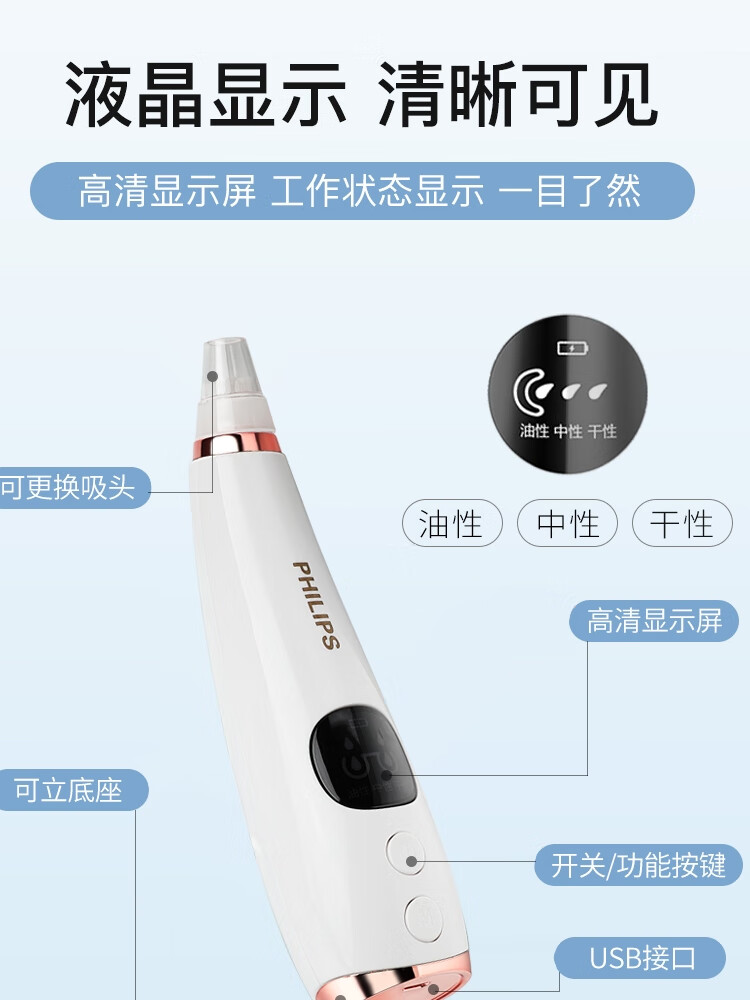 Инструмент для аспирации черных точек Philips, электрическая аспирация пор, удаление прыщей, устройство для аспирации черных точек, очищение и умывание лица, белый