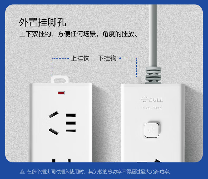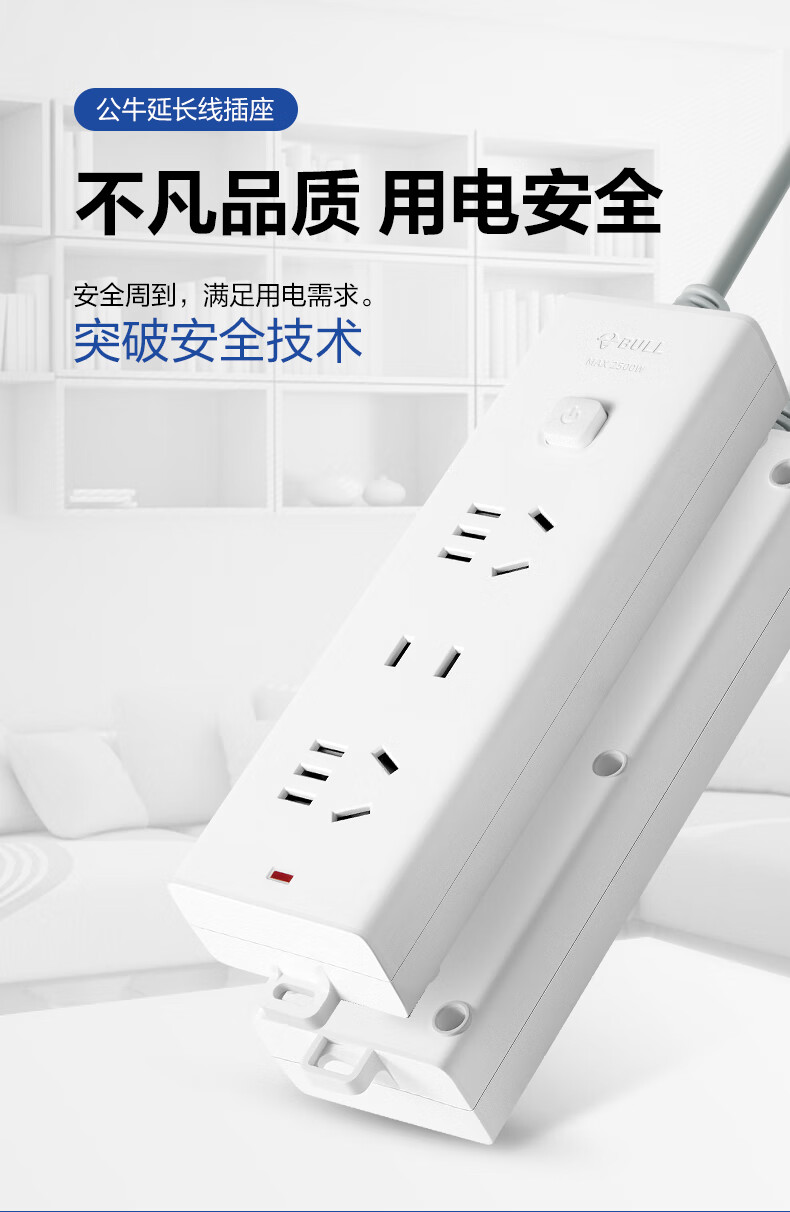 Bull kitchen special socket rice cooker plug-in induction cooker plug-in board hot water kettle wiring board male steak plug-in multi-functional household plug-in board free wall climber (one person one control 1.8 meters 4 holes B5043)