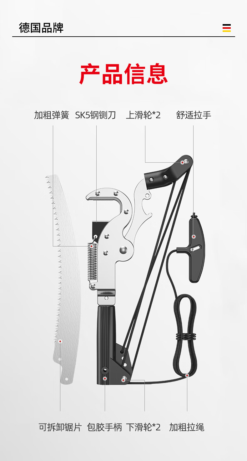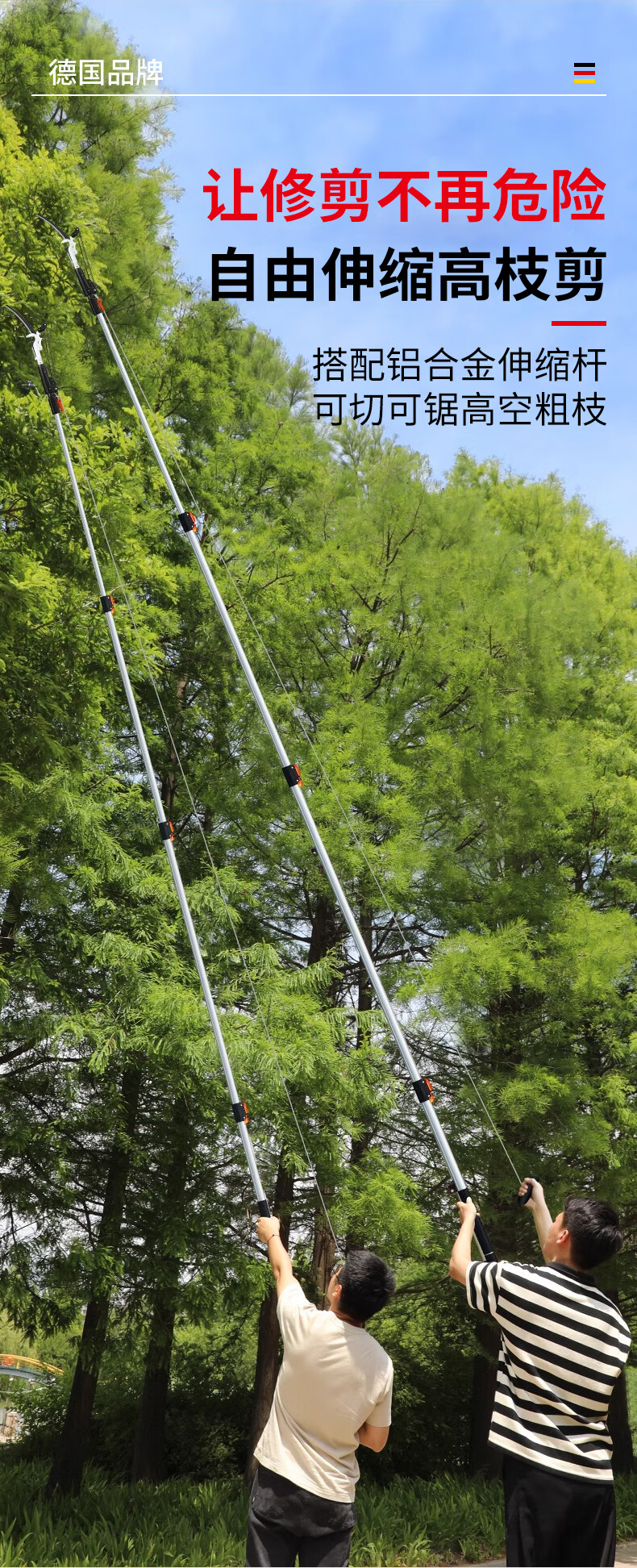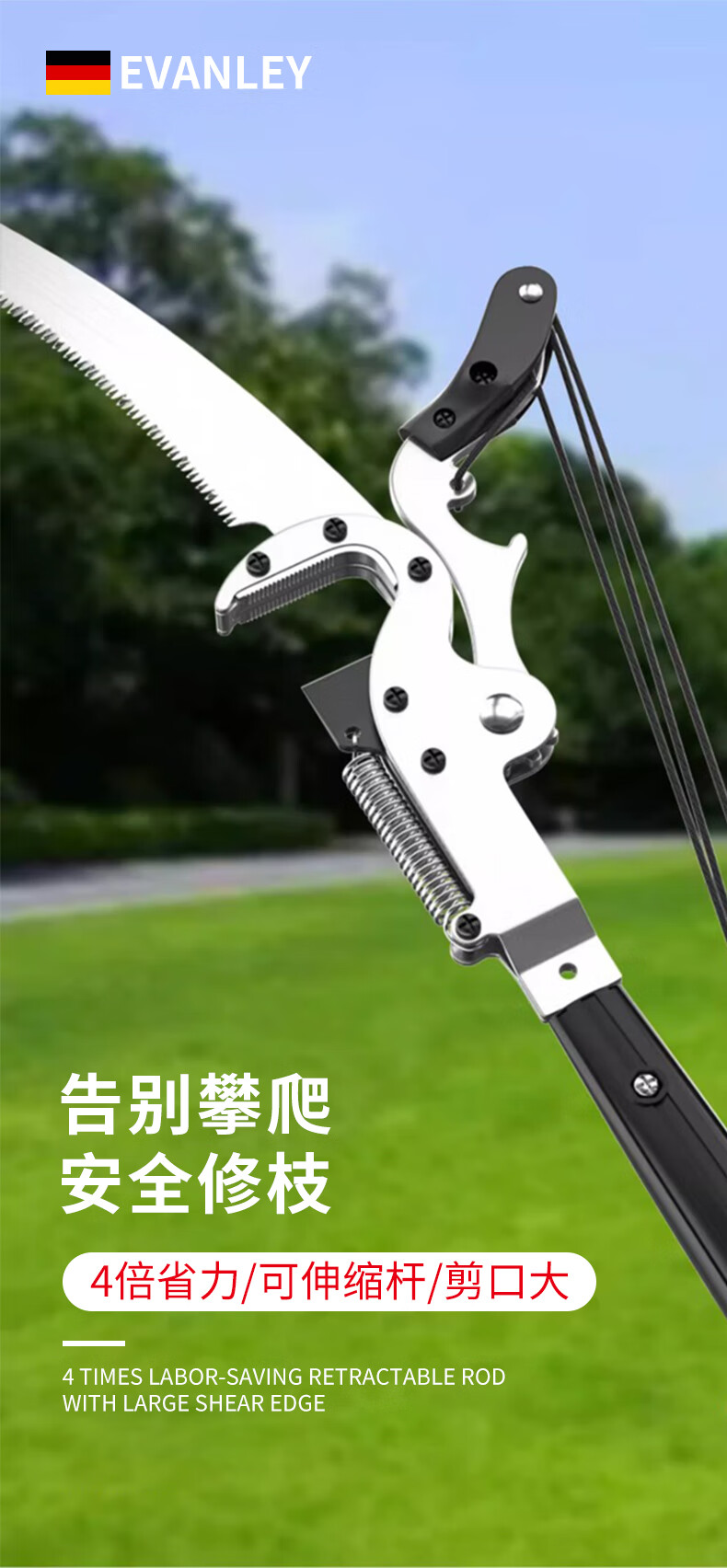 EVANLEY German high-altitude branch pruning scissors, high-branch shears, labor-saving telescopic special extension pole, fruit tree high-altitude saw artifact, 5-meter telescopic high-branch shears, guillotine type + folding saw