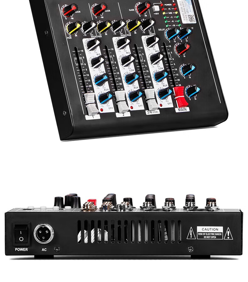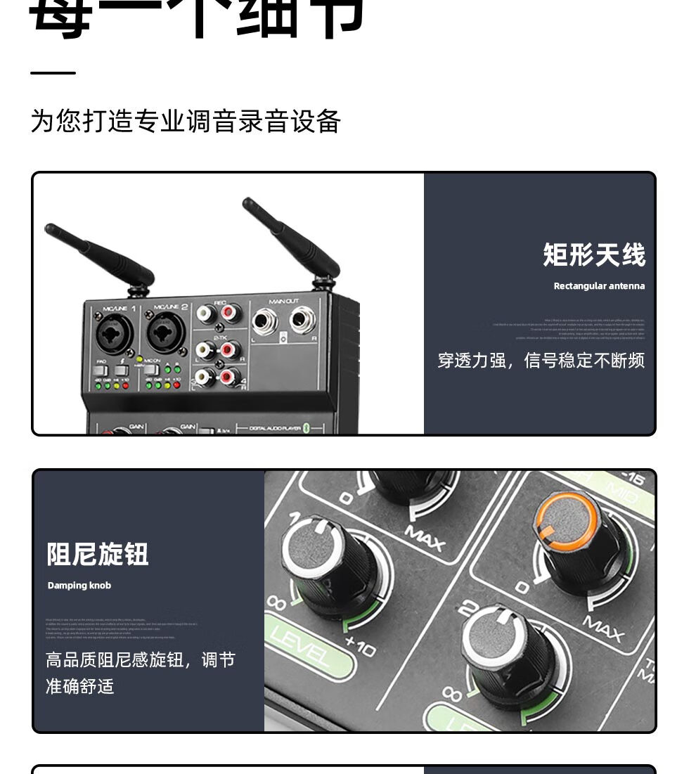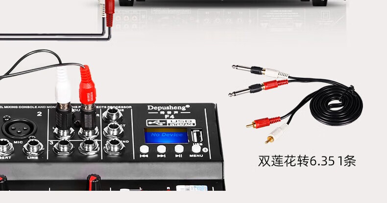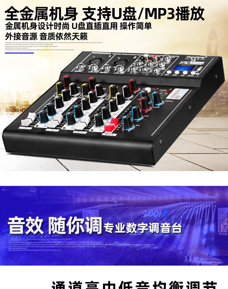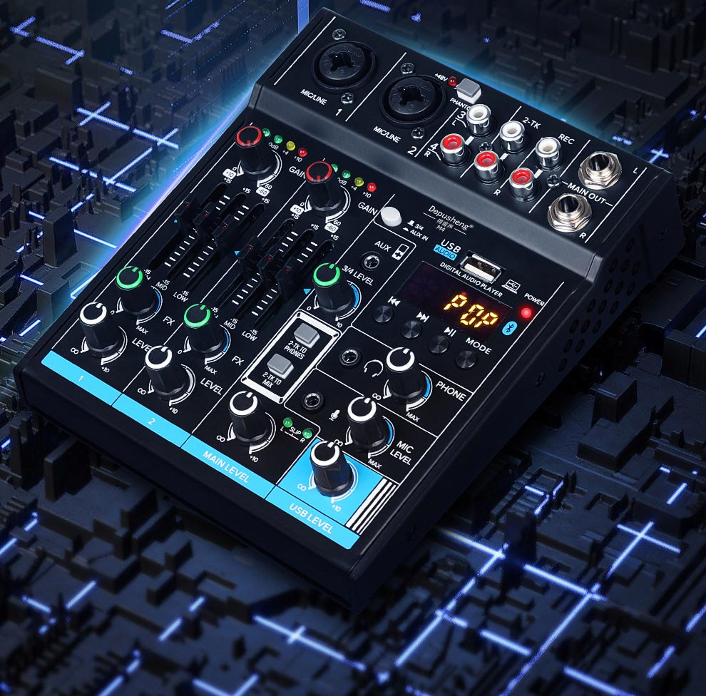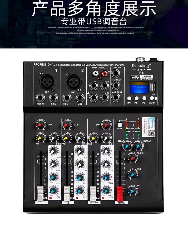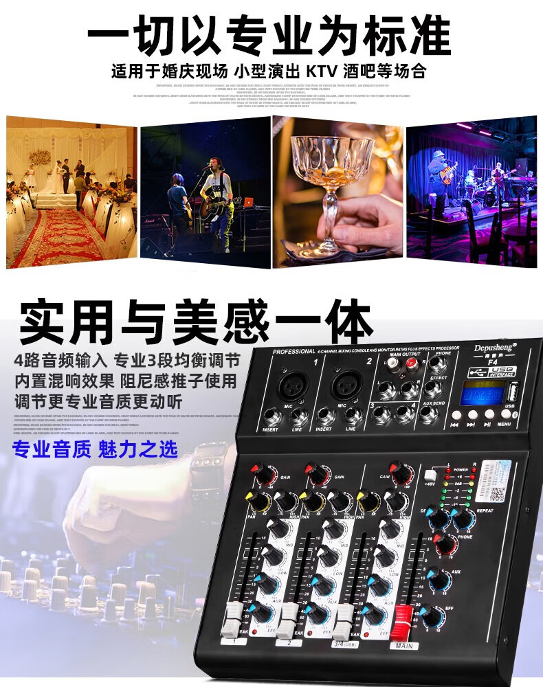 Depusheng professional 4-way mixer computer recording performance home KTV singing video conference live broadcast USB sound card Bluetooth reverb effect balanced wireless microphone small console M4 USB sound card mixer