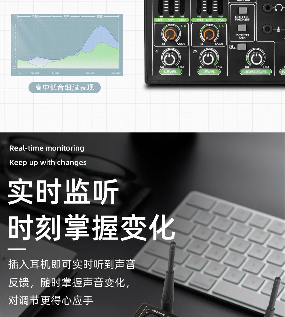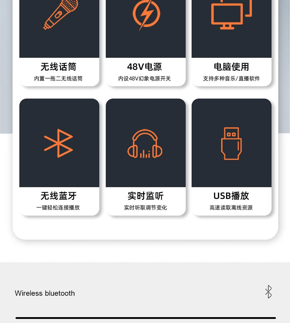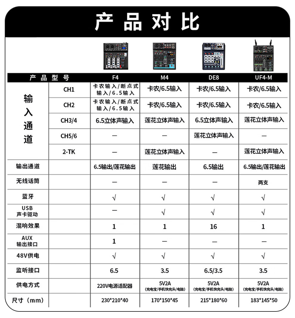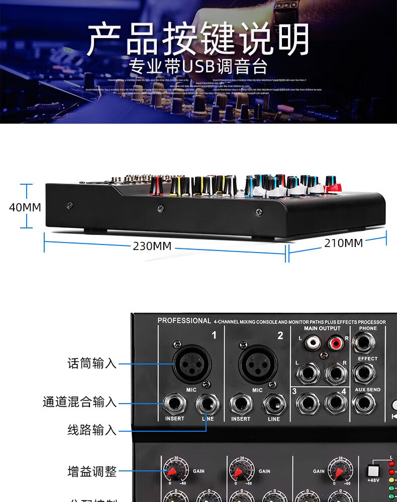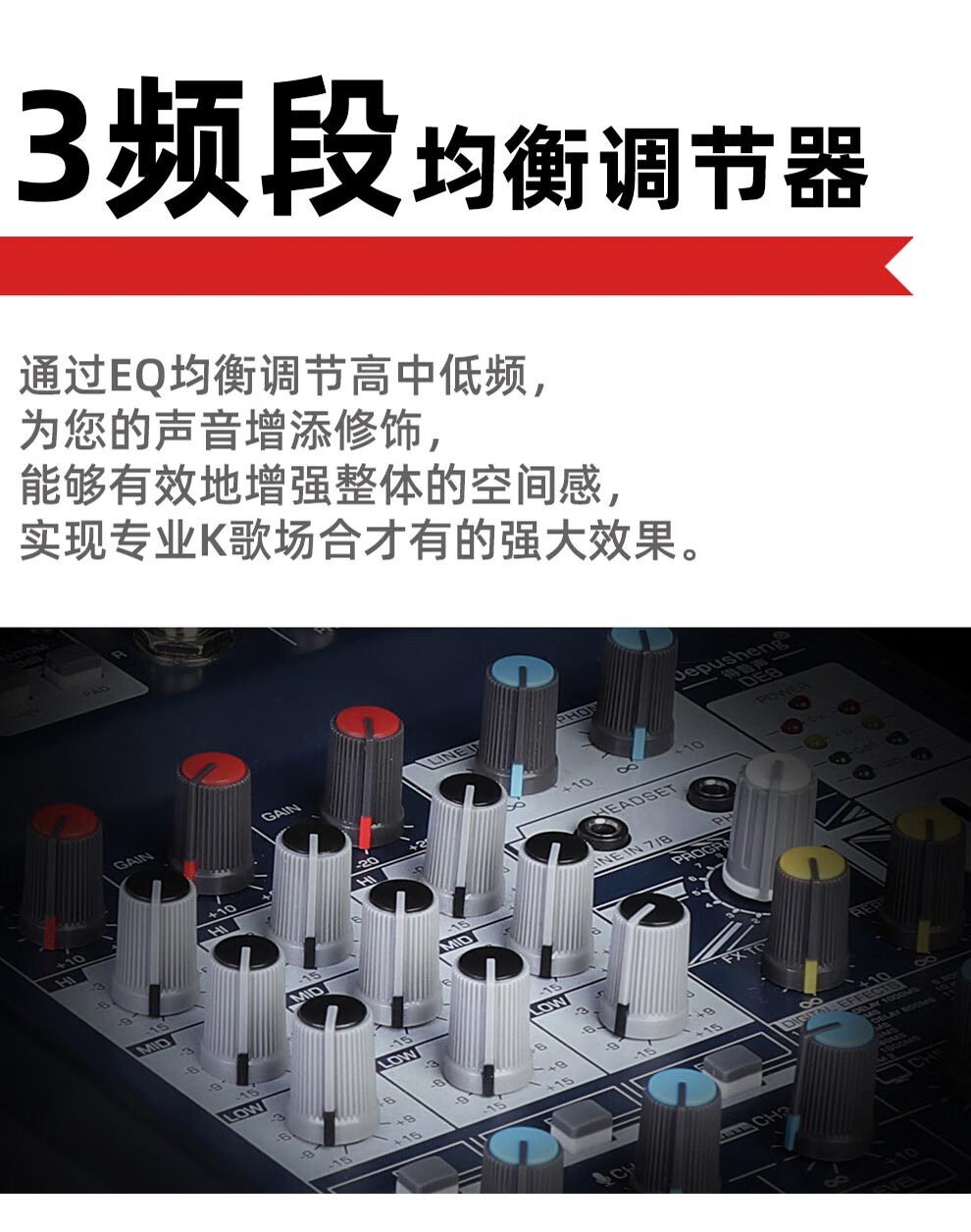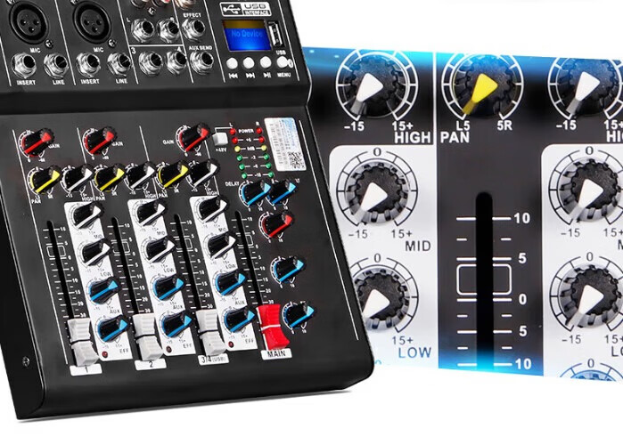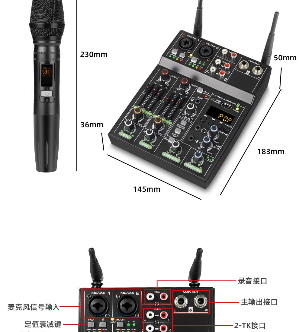 Depusheng professional 4-way mixer computer recording performance home KTV singing video conference live broadcast USB sound card Bluetooth reverb effect balanced wireless microphone small console M4 USB sound card mixer