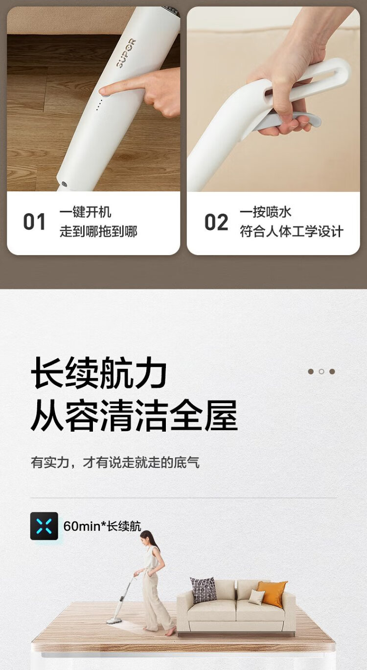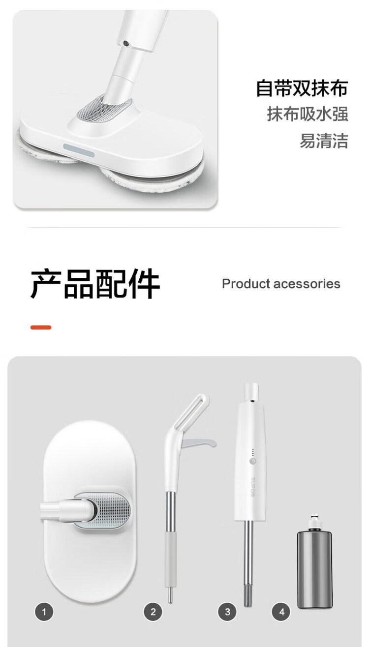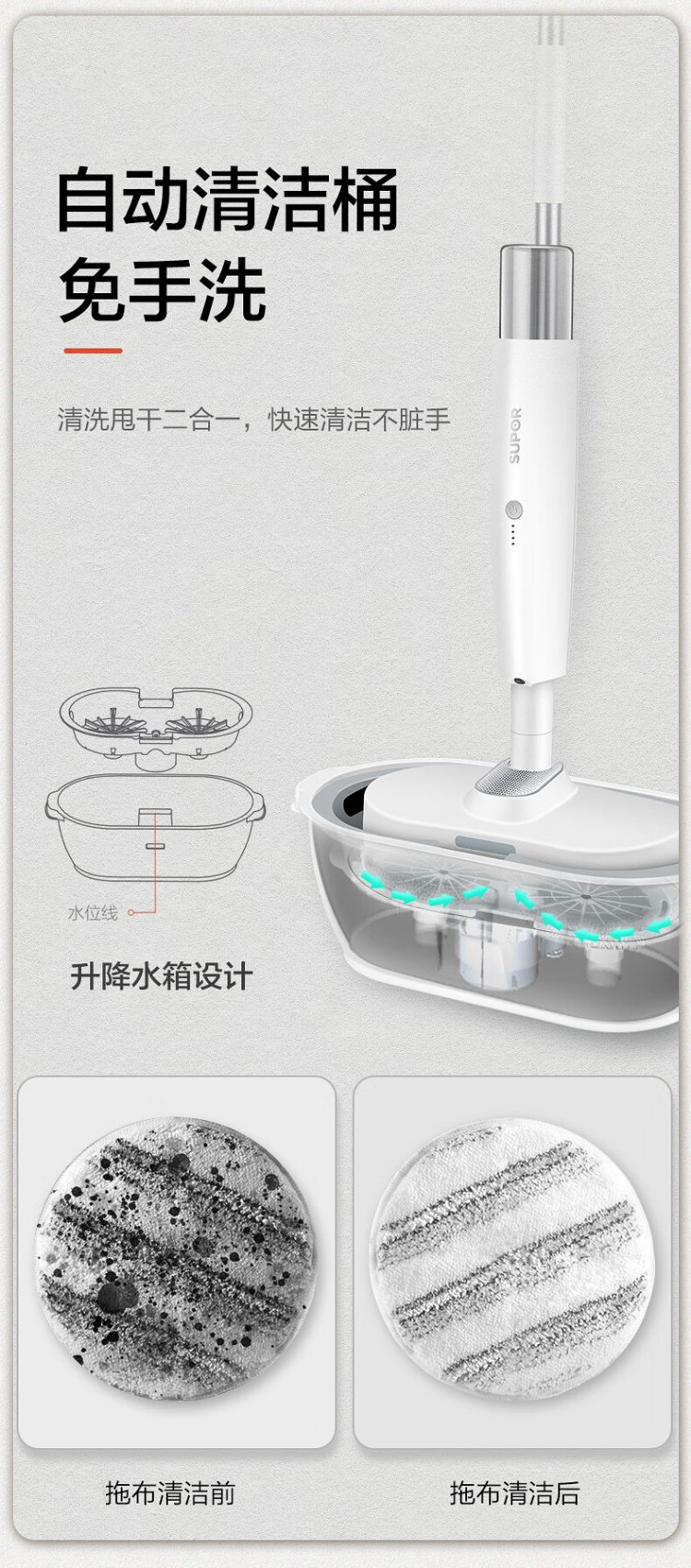 SUPOR electric mop wireless handheld floor washer mopping smart artifact household self-cleaning washing machine washing and mopping all-in-one machine hand-free washing automatic floor mopping machine SCT26A-S1