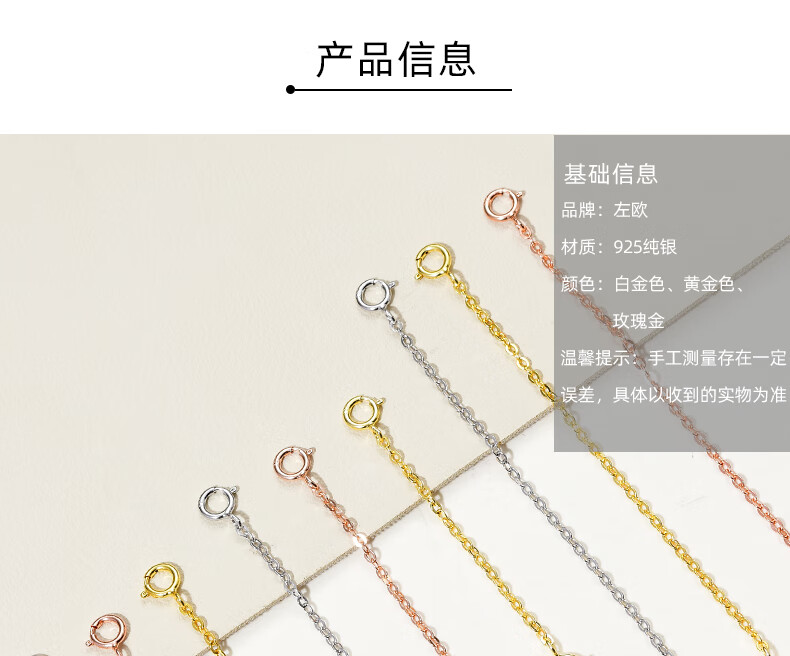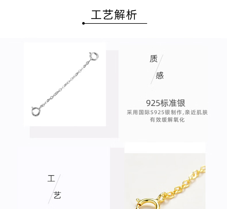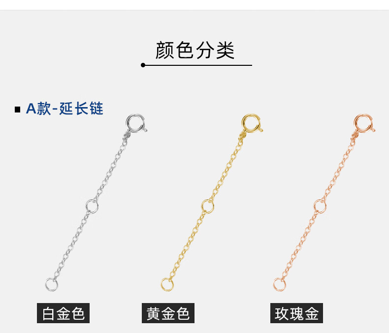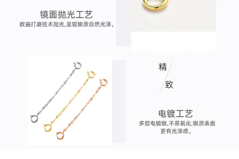 Zuoou S925 silver necklace extension chain tail chain lengthened hand chain adjustment buckle chain double-ended lobster buckle head diy accessories c style extension chain 8cm (white gold)