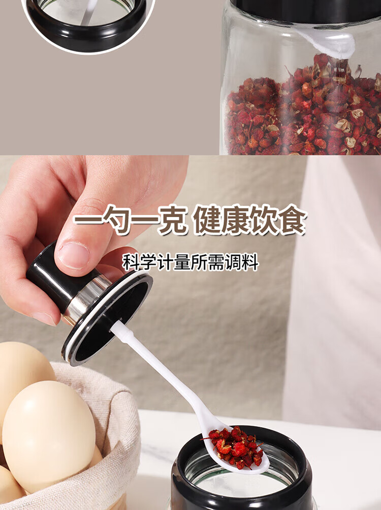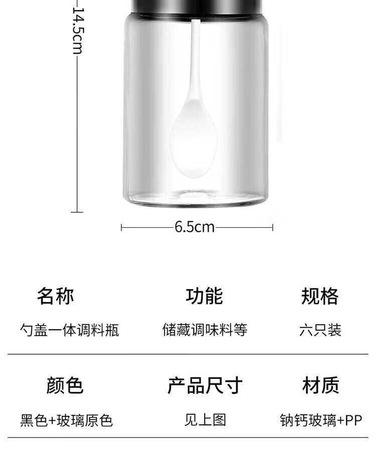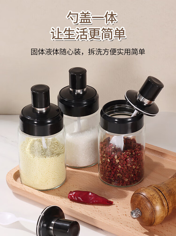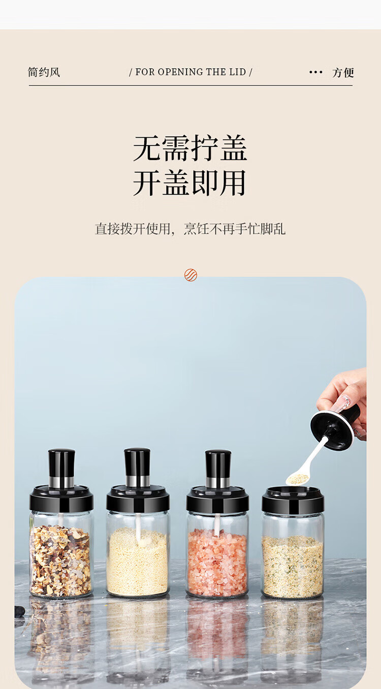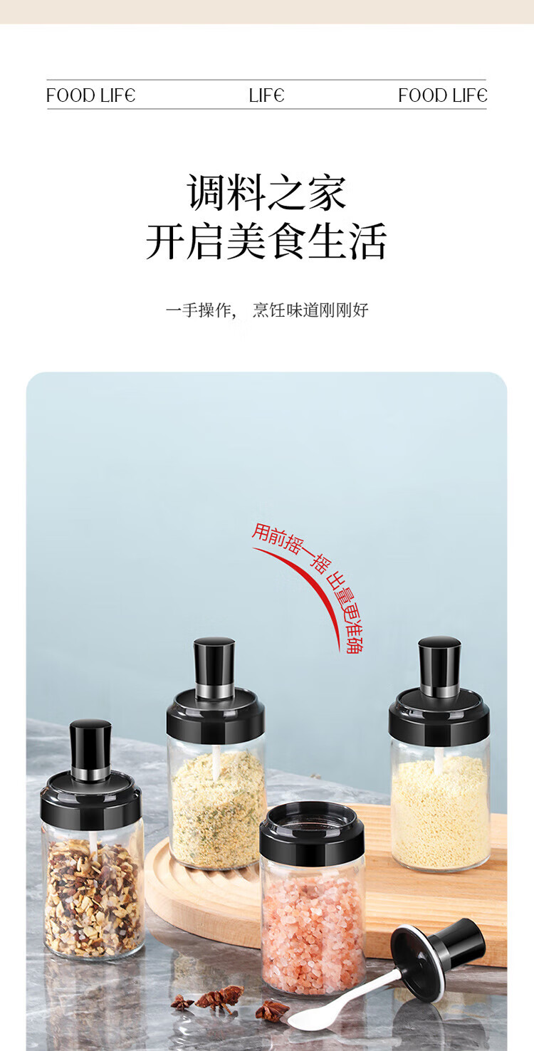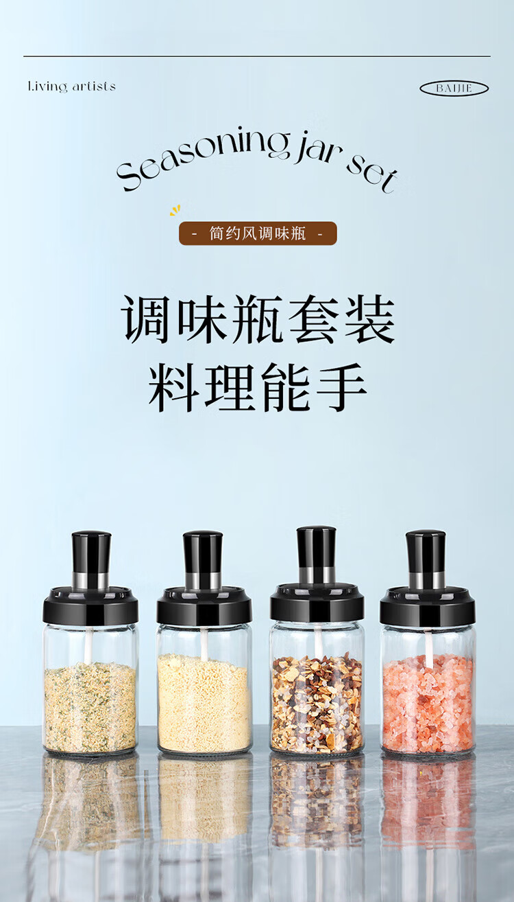 Baijie seasoning jar glass seasoning bottle salt shaker kitchen seasoning storage box spoon lid integrated sealed salt bottle seasoning box set integrated seasoning box free sticker 4-piece set
