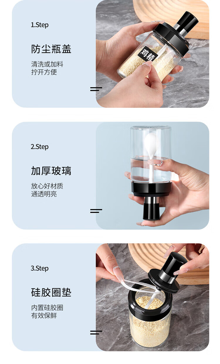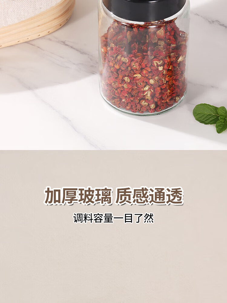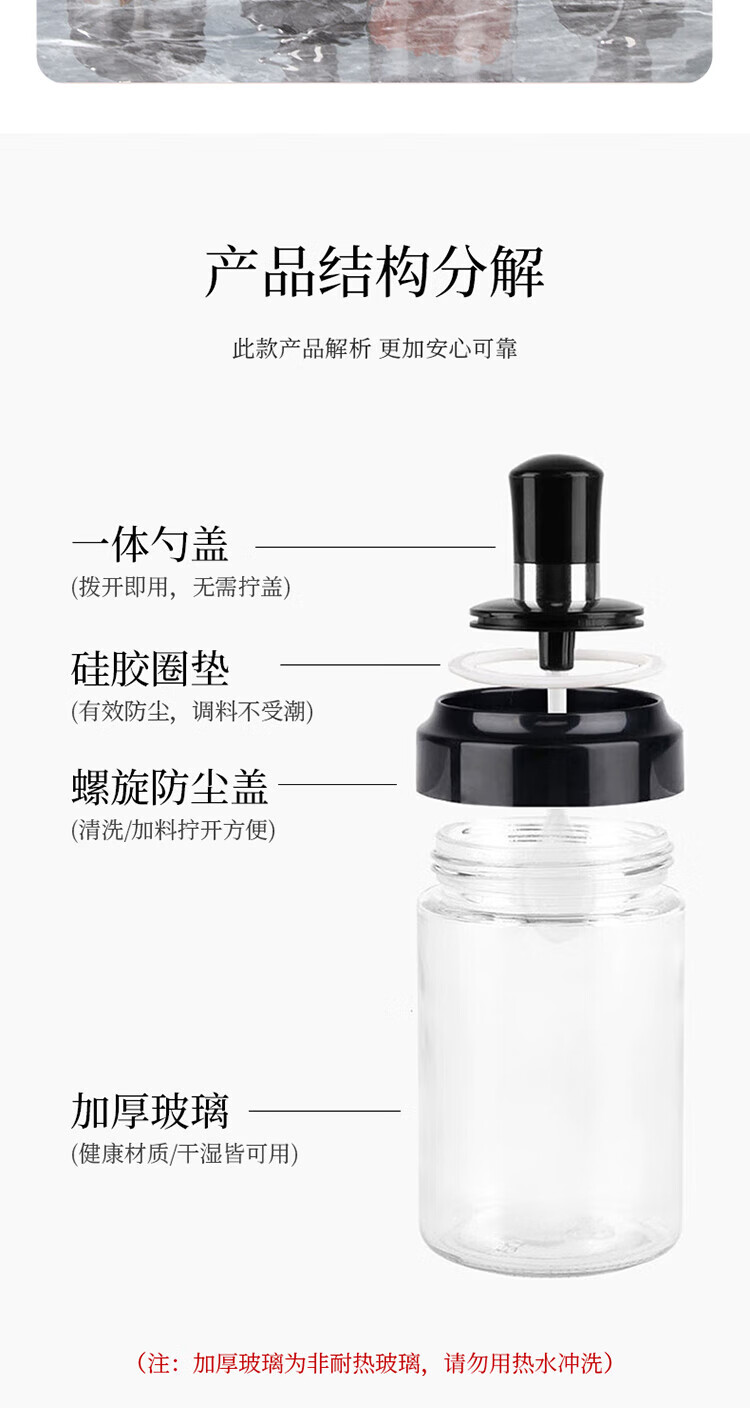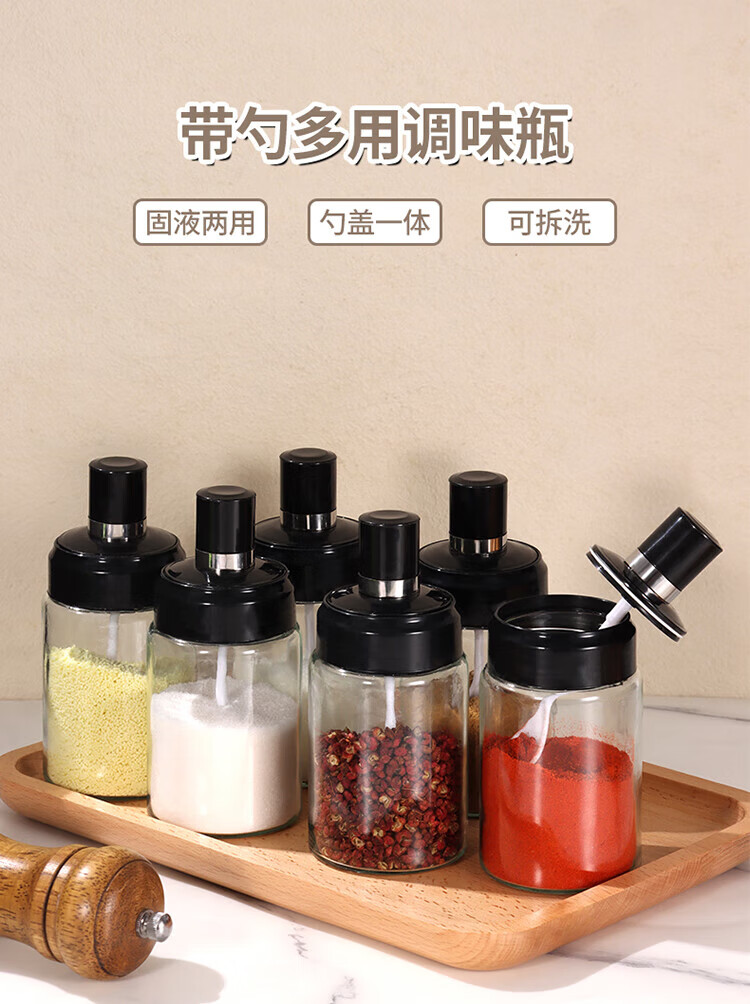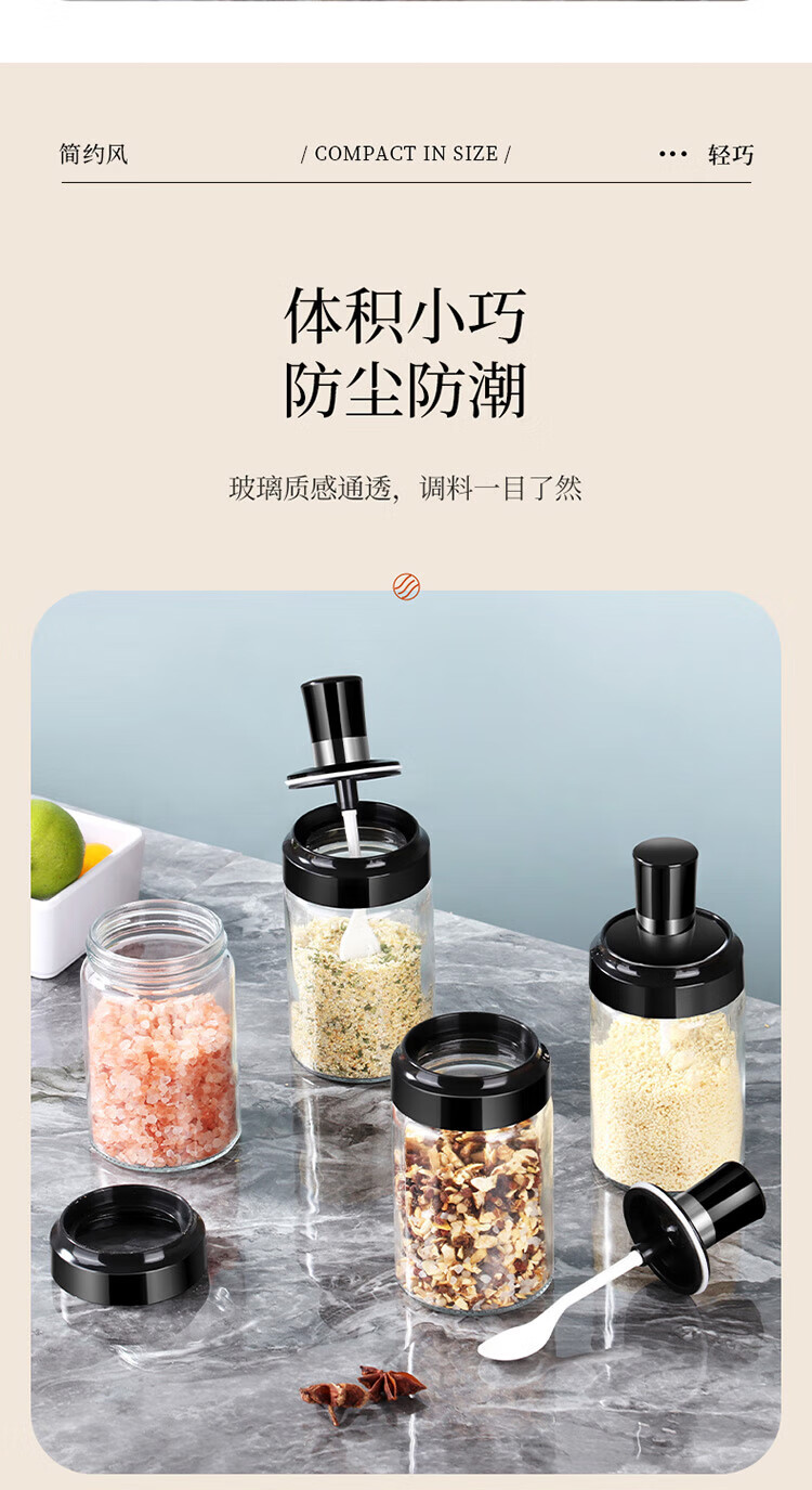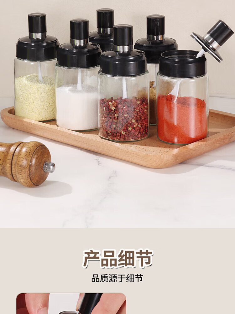 Baijie seasoning jar glass seasoning bottle salt shaker kitchen seasoning storage box spoon lid integrated sealed salt bottle seasoning box set integrated seasoning box free sticker 4-piece set