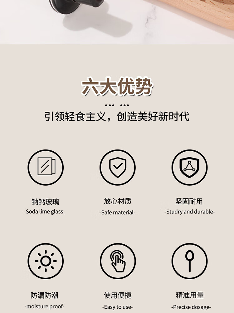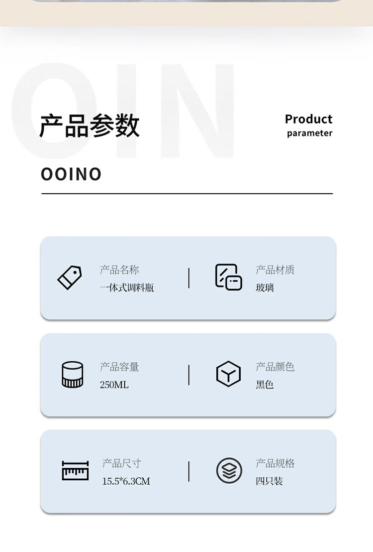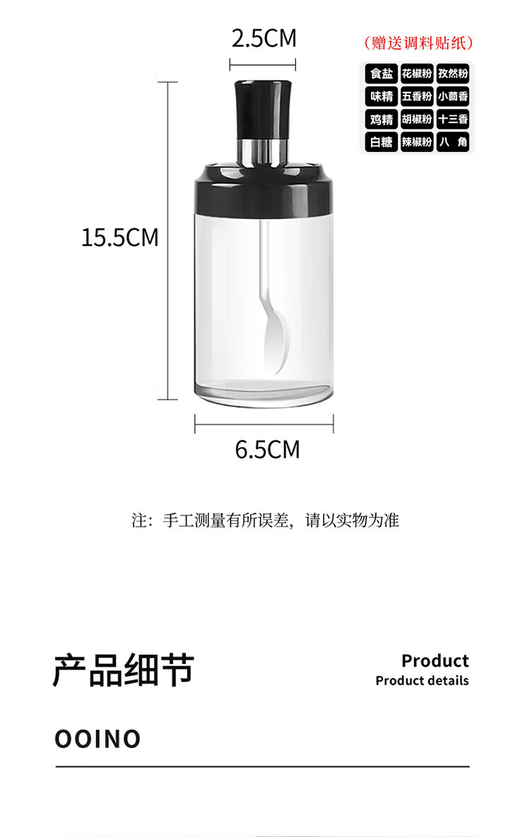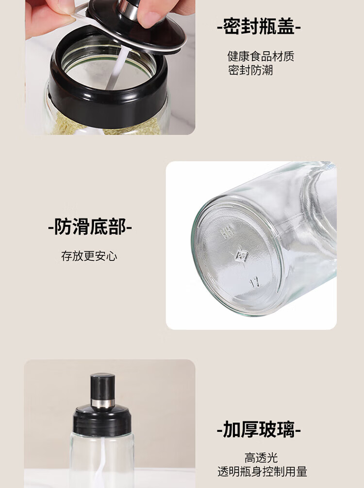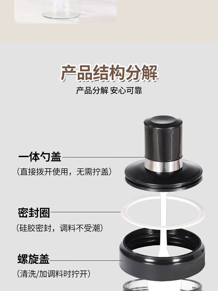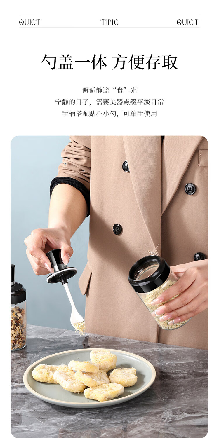 Baijie seasoning jar glass seasoning bottle salt shaker kitchen seasoning storage box spoon lid integrated sealed salt bottle seasoning box set integrated seasoning box free sticker 4-piece set