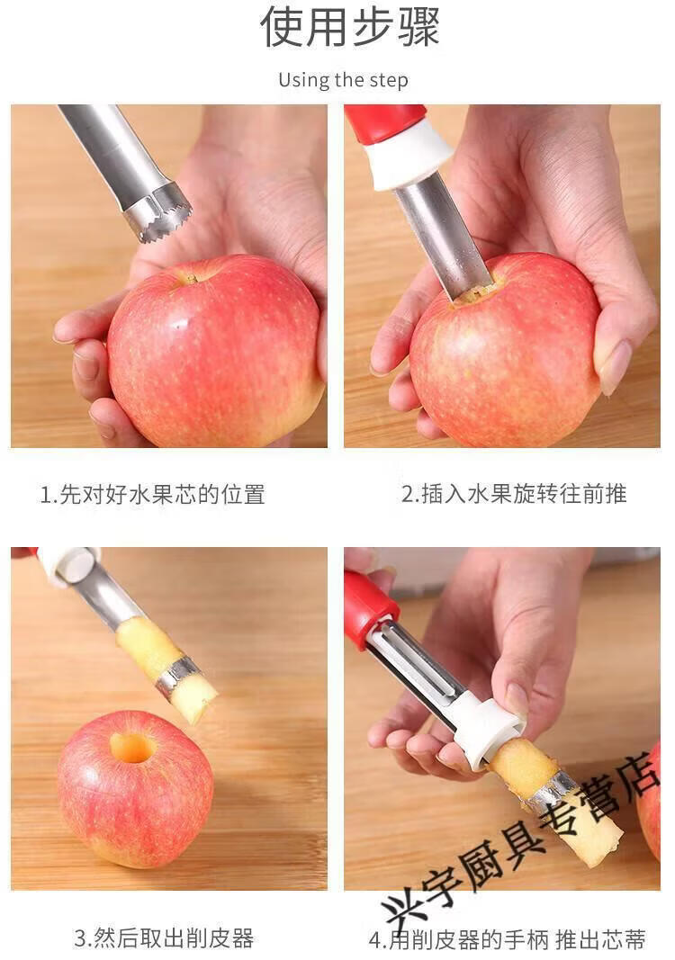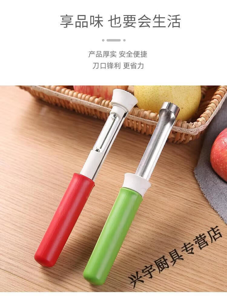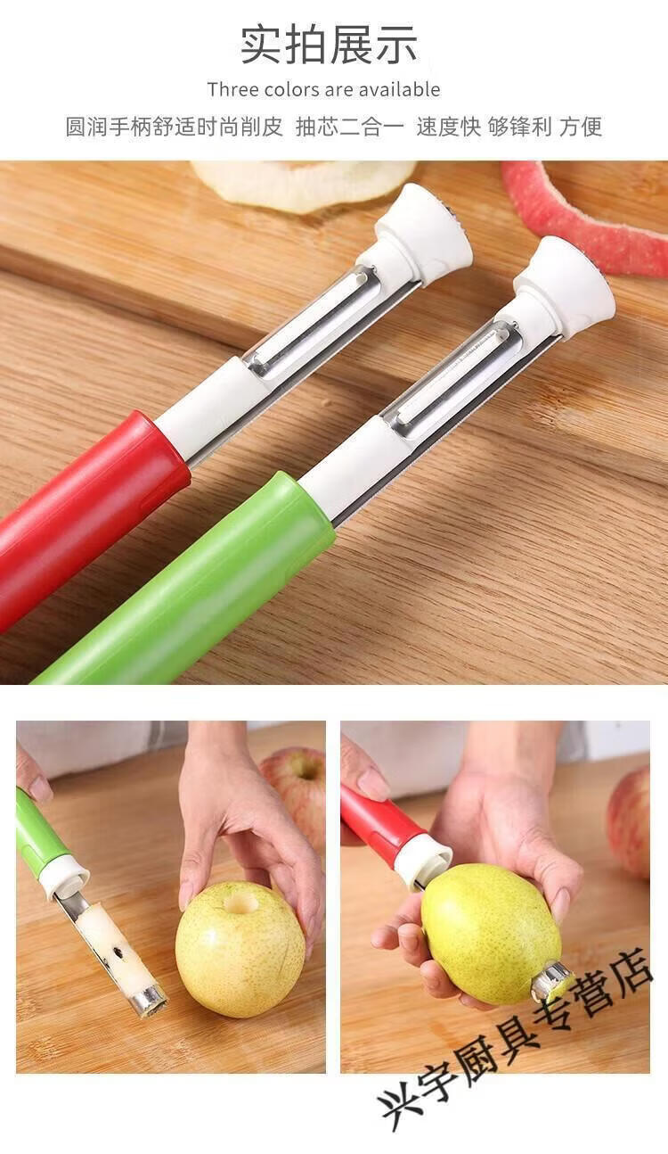 Bei Jingjie Telescopic Fruit Corer Apple Core Remover Stainless Steel Pear Core Extraction 2-in-1 Multifunctional Peeler 1 Pack - Apple Green 2-in-1 Core Peeler