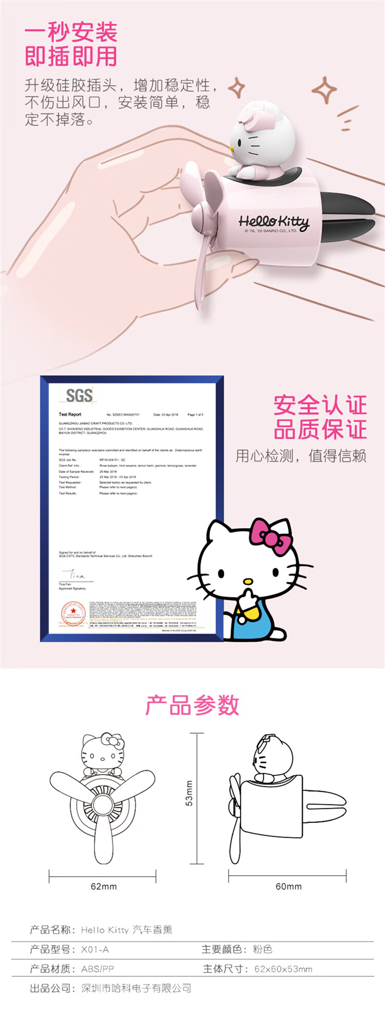 Cute Hello Kitty little airplane car aromatherapy vent fan pilot car perfume decoration high-end line friends Brown Bear