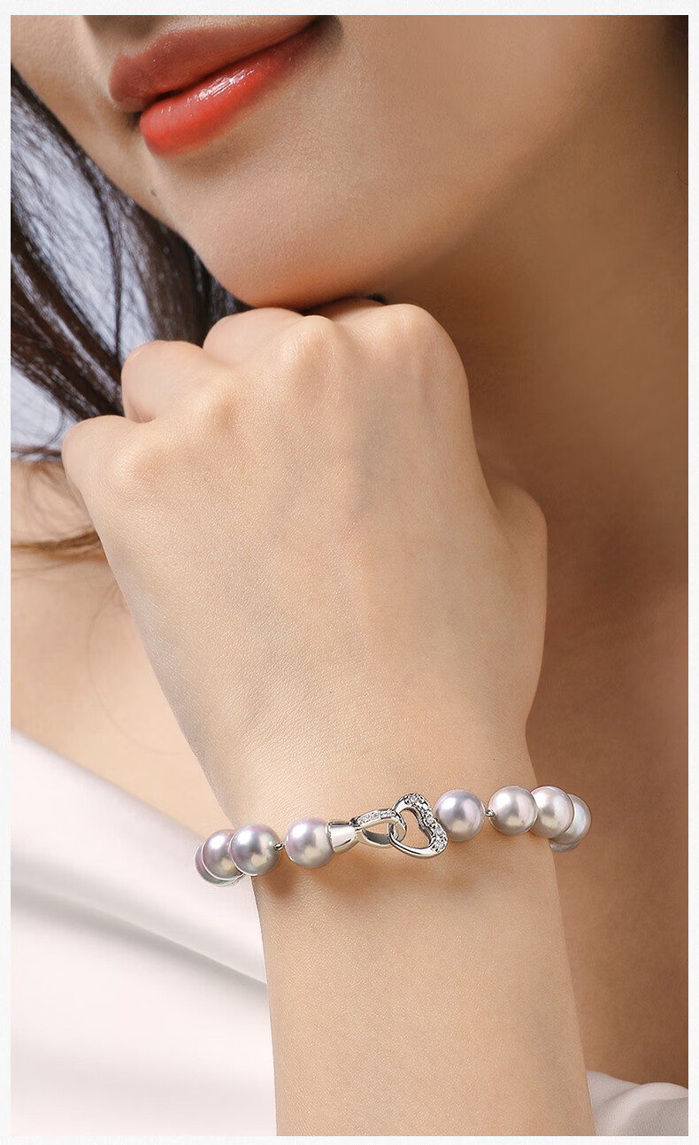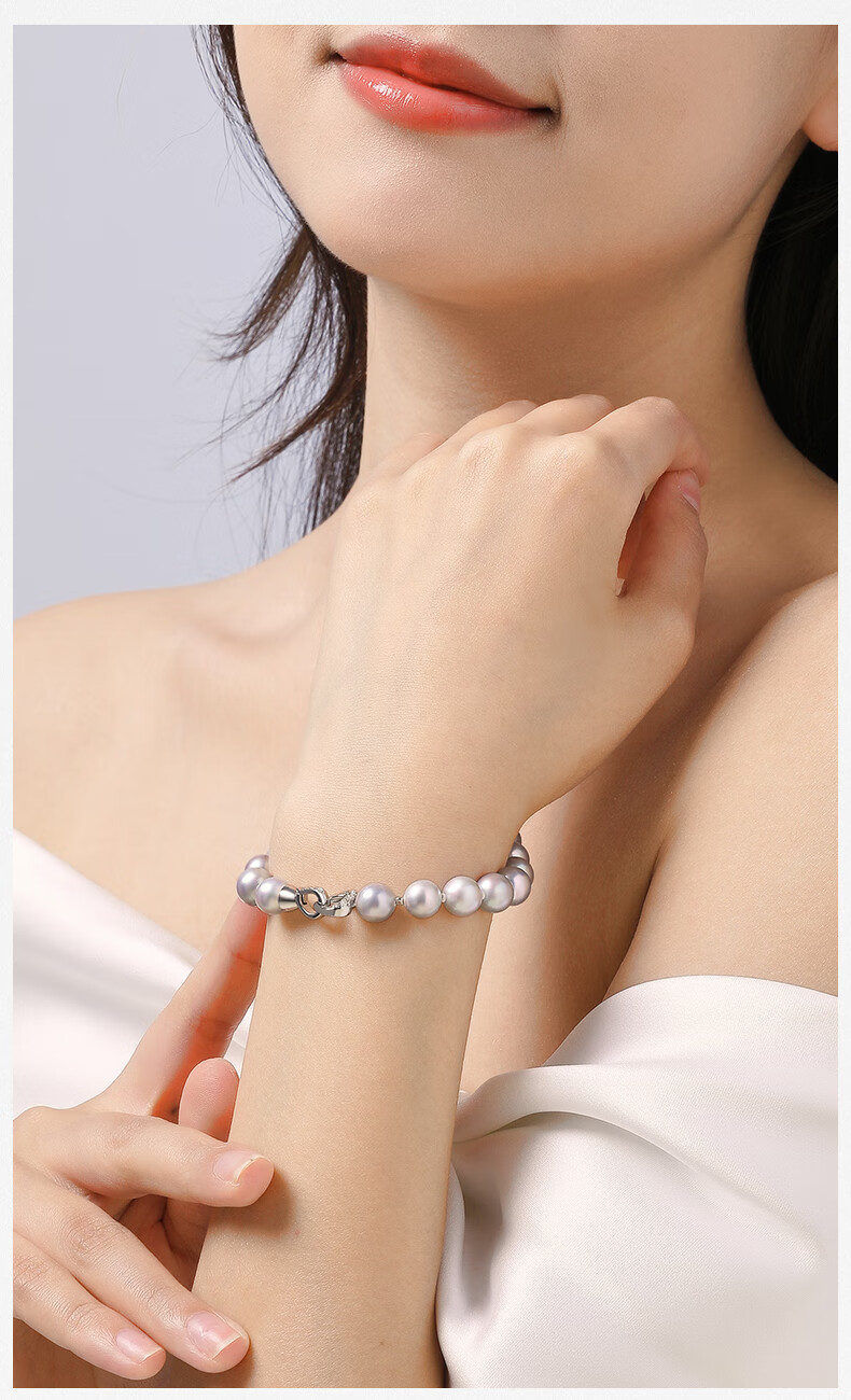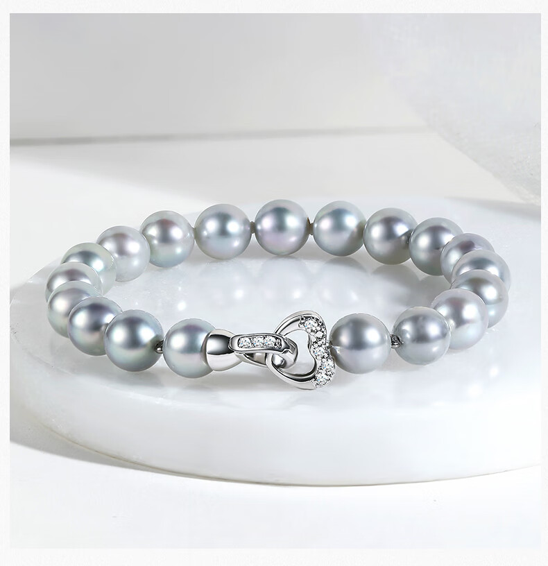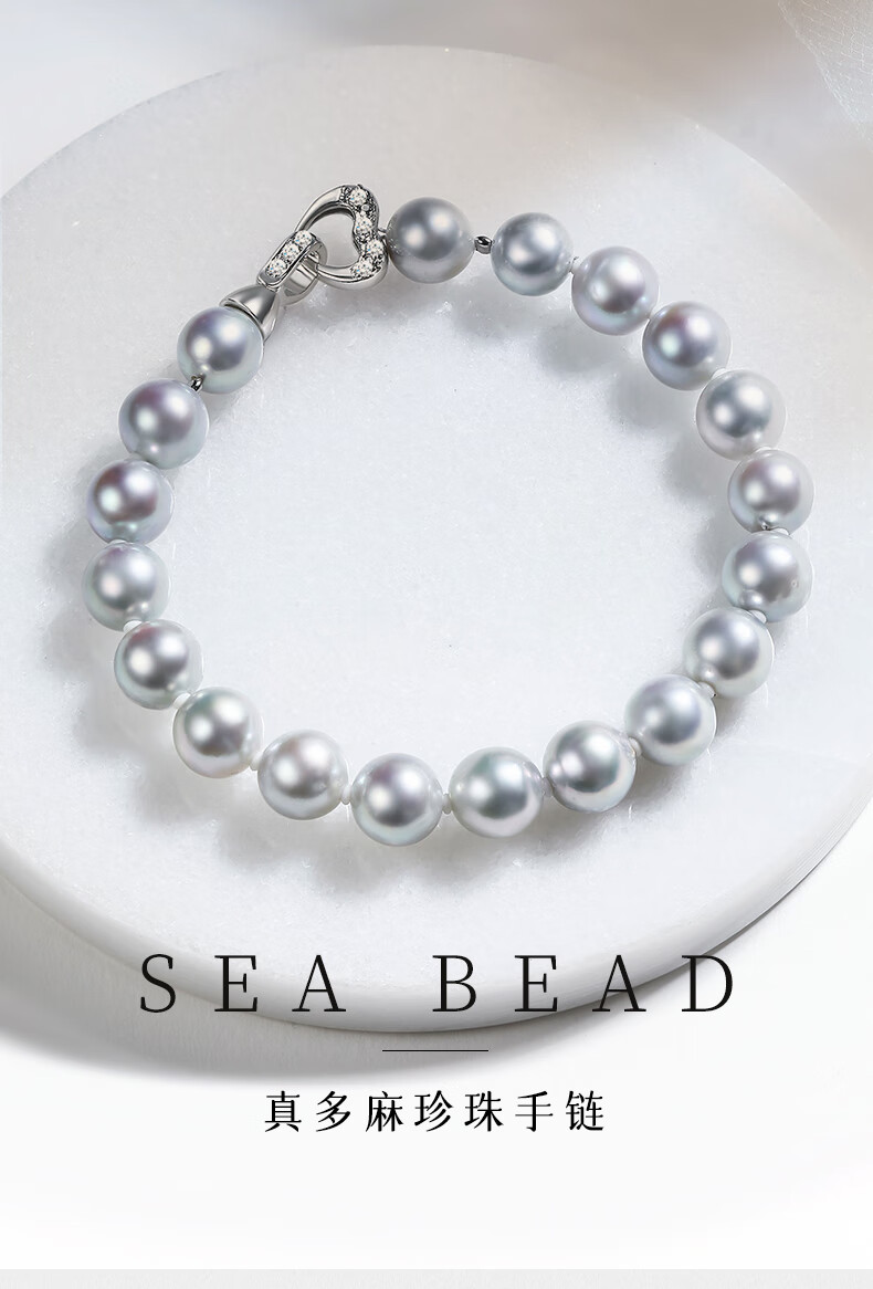 Tahiti Akoya seawater pearl bracelet, gray and blue toned hemp bracelet for your girlfriend, Baroque Xiaoxia/sendo hemp bracelet 8-8.5mm