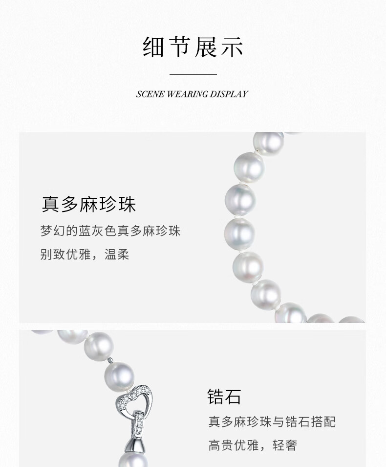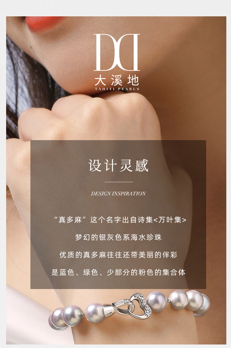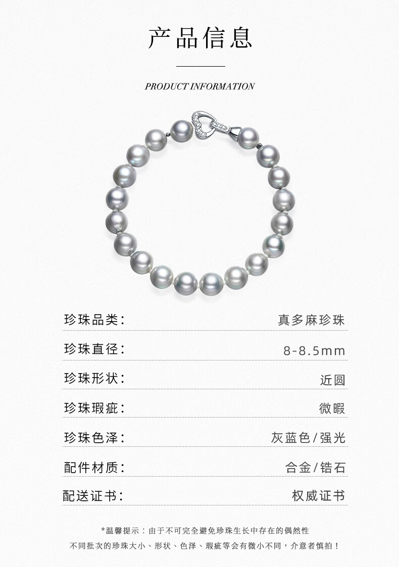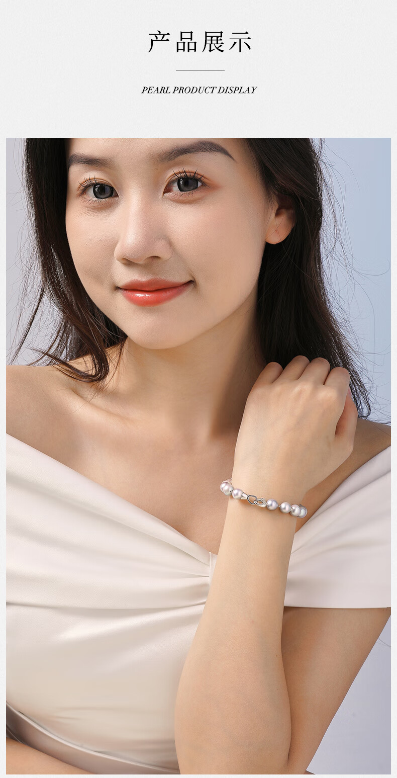 Tahiti Akoya seawater pearl bracelet, gray and blue toned hemp bracelet for your girlfriend, Baroque Xiaoxia/sendo hemp bracelet 8-8.5mm