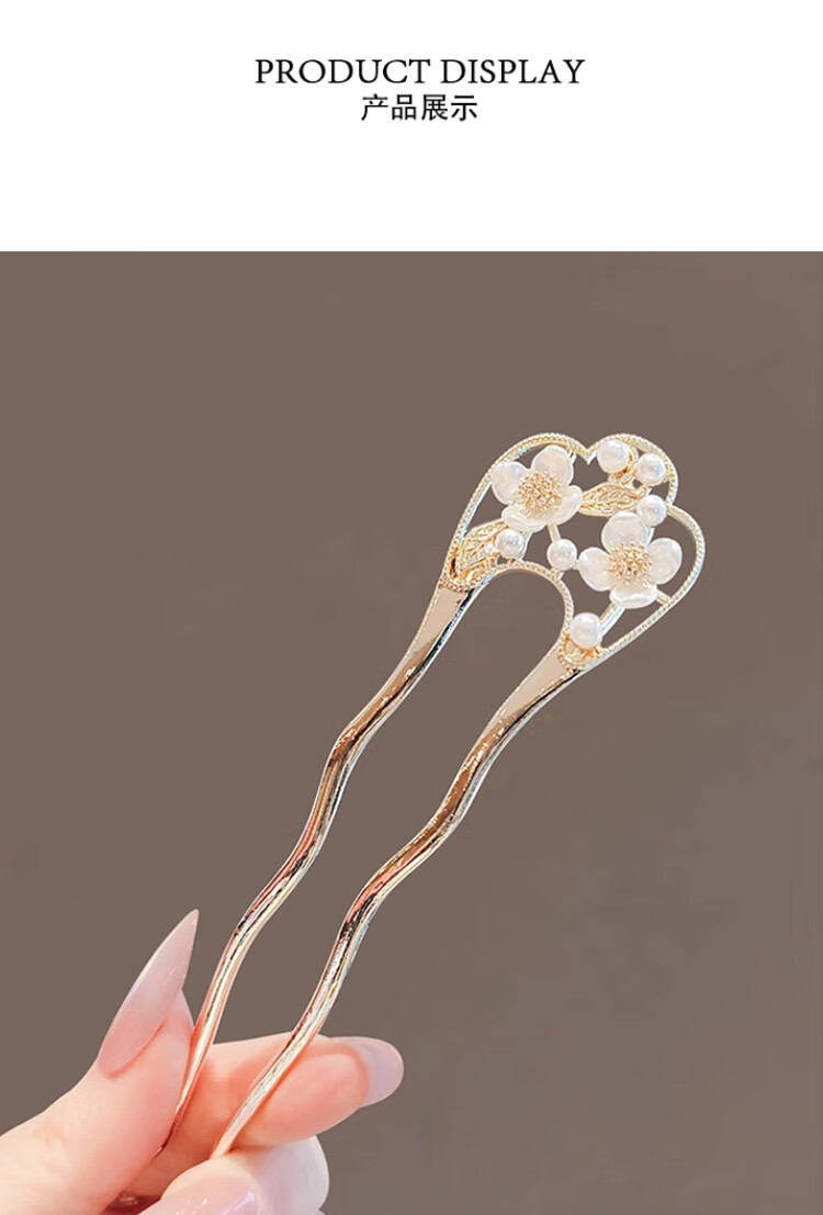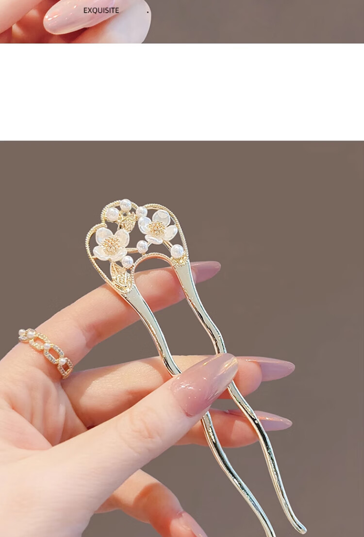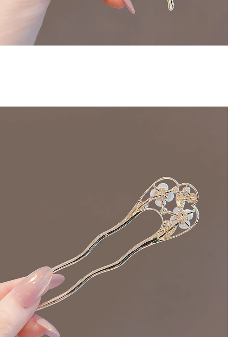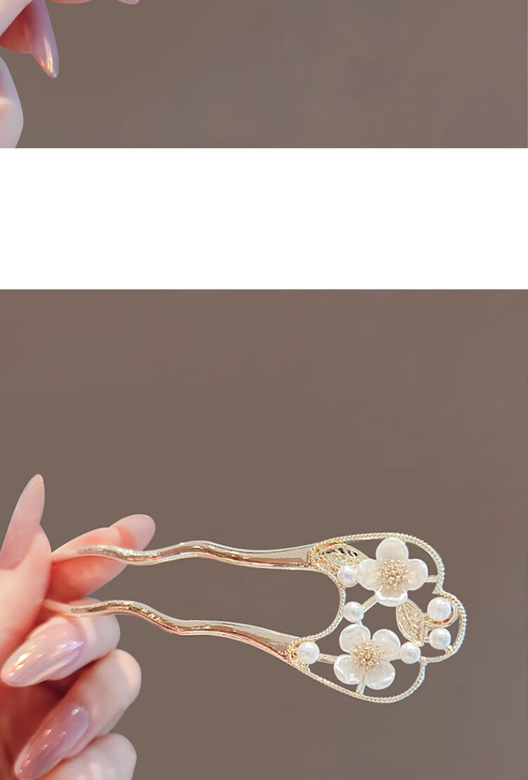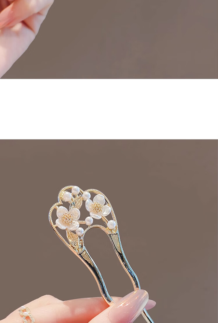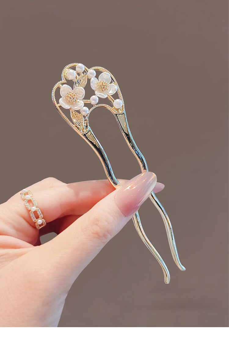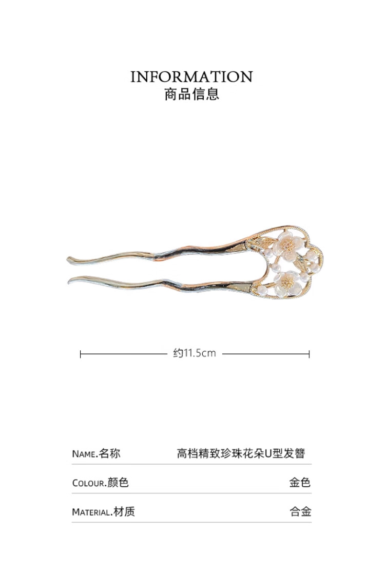 Two Worlds Elegant Artificial Pearl Flower Hairpin for Women Modern Simple Hairpin Double Plug Hairpin U-shaped Hairpin Comb Gold