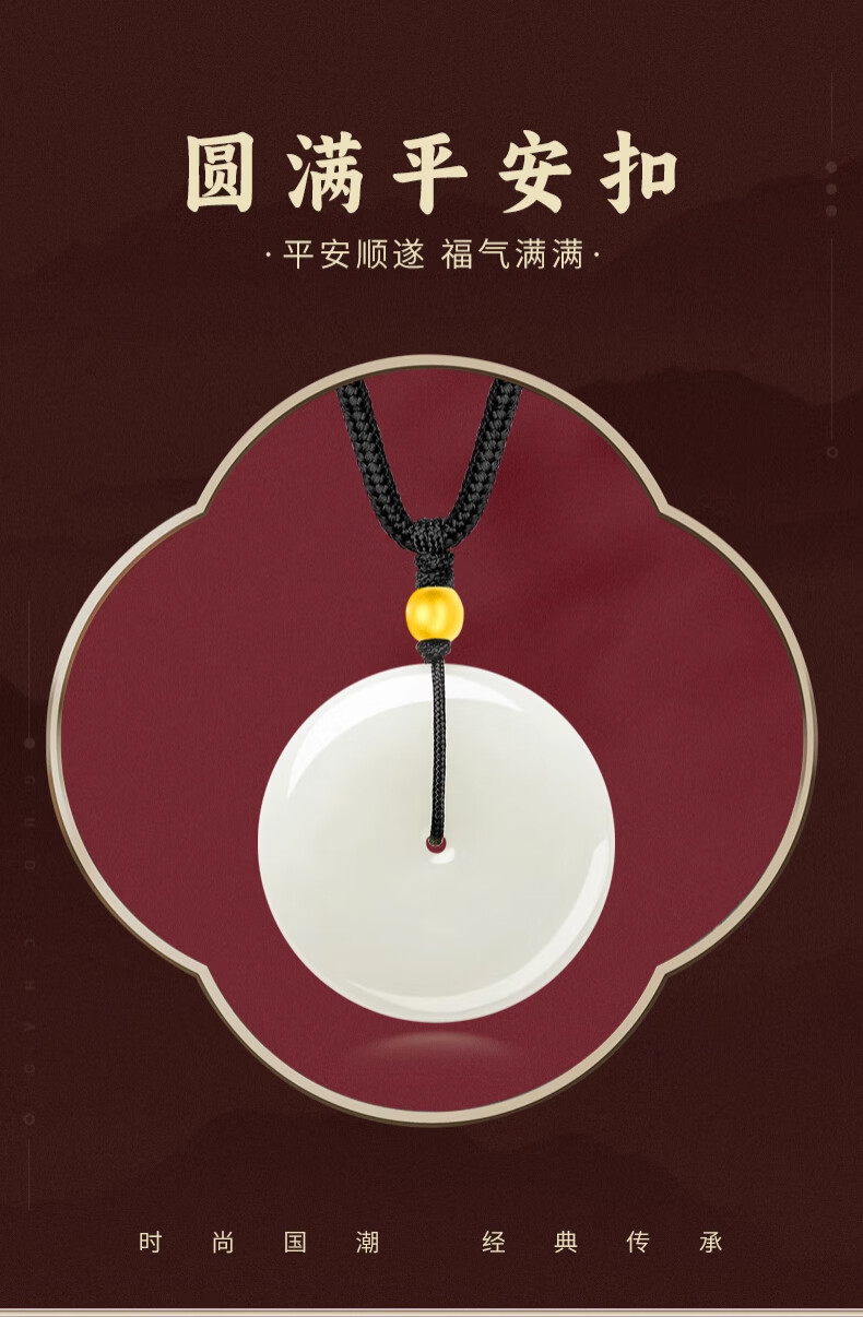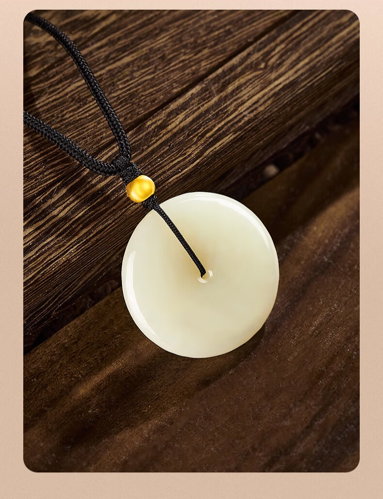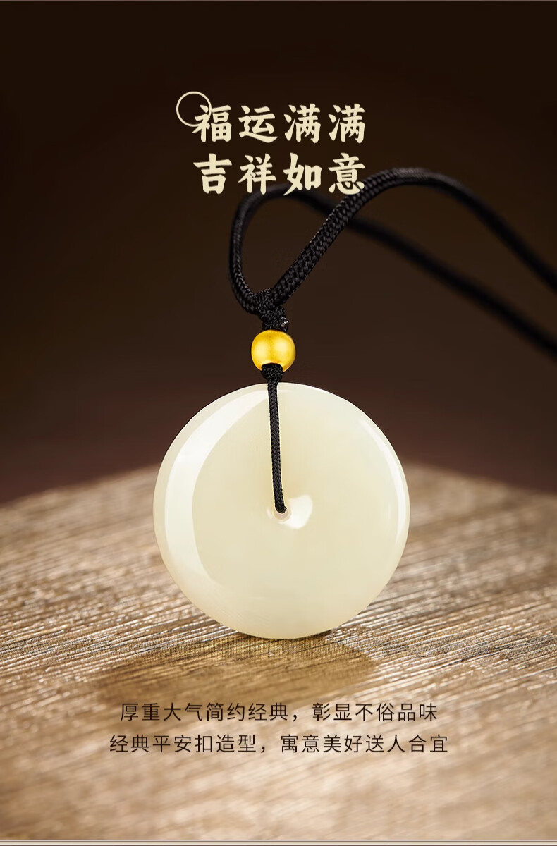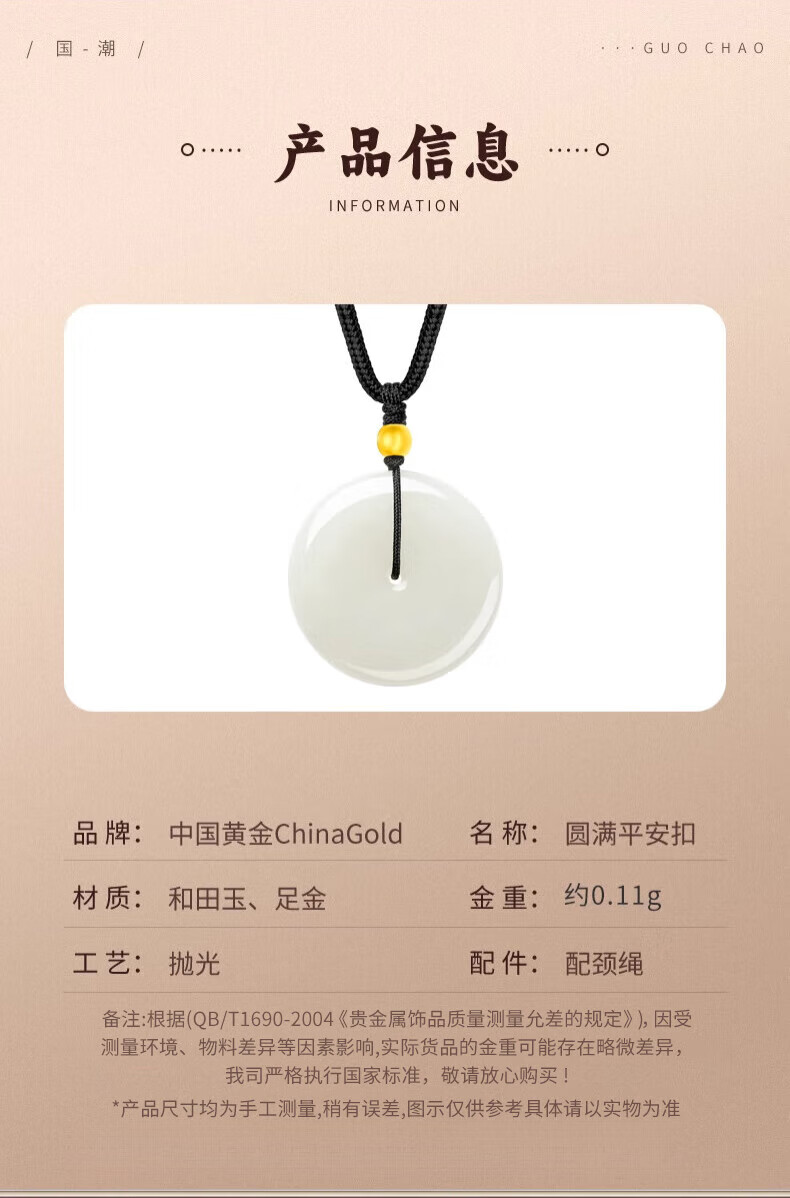 China Gold (CHINA GOLD) Hetian Jade Necklace Women's Foot Gold Peace Buckle Pendant Jade Jade Pendant for Mom, Girlfriend and Wife Jingsuda* Peace Buckle Necklace Gold Beads About 0.11g + Black Rope