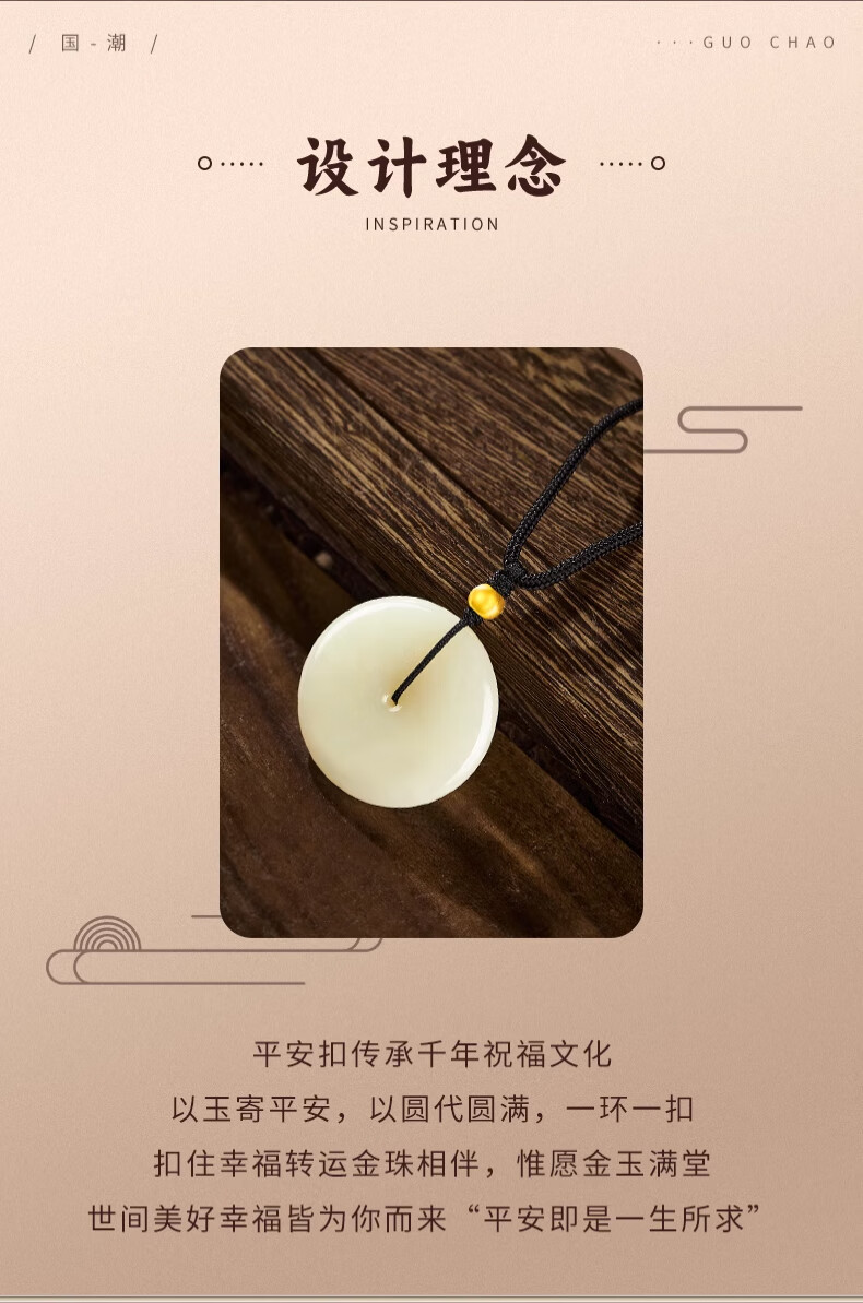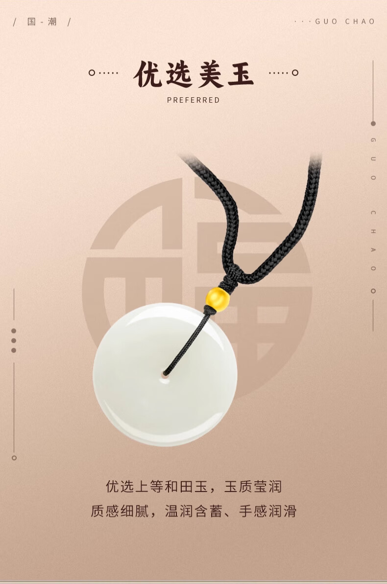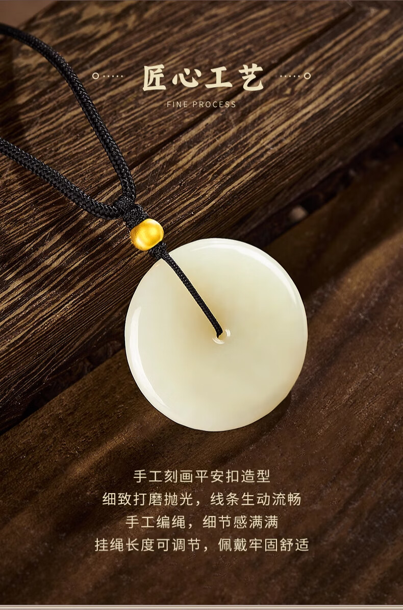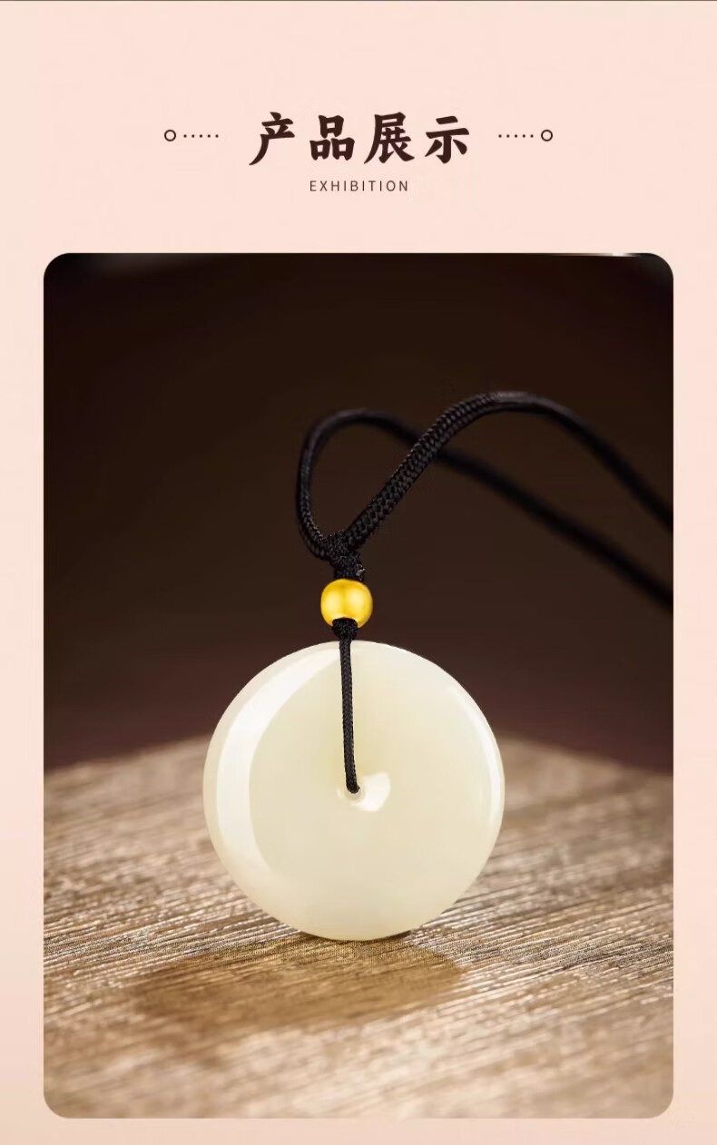 China Gold (CHINA GOLD) Hetian Jade Necklace Women's Foot Gold Peace Buckle Pendant Jade Jade Pendant for Mom, Girlfriend and Wife Jingsuda* Peace Buckle Necklace Gold Beads About 0.11g + Black Rope
