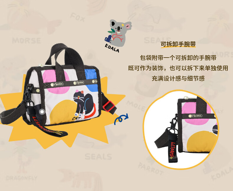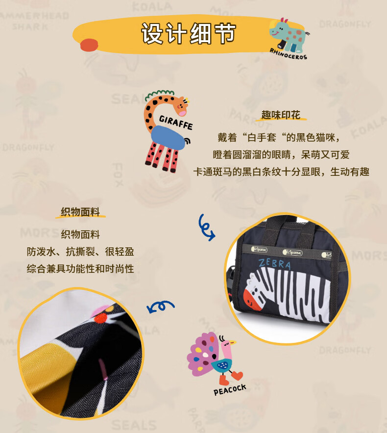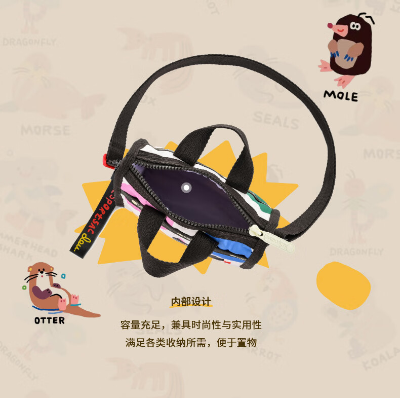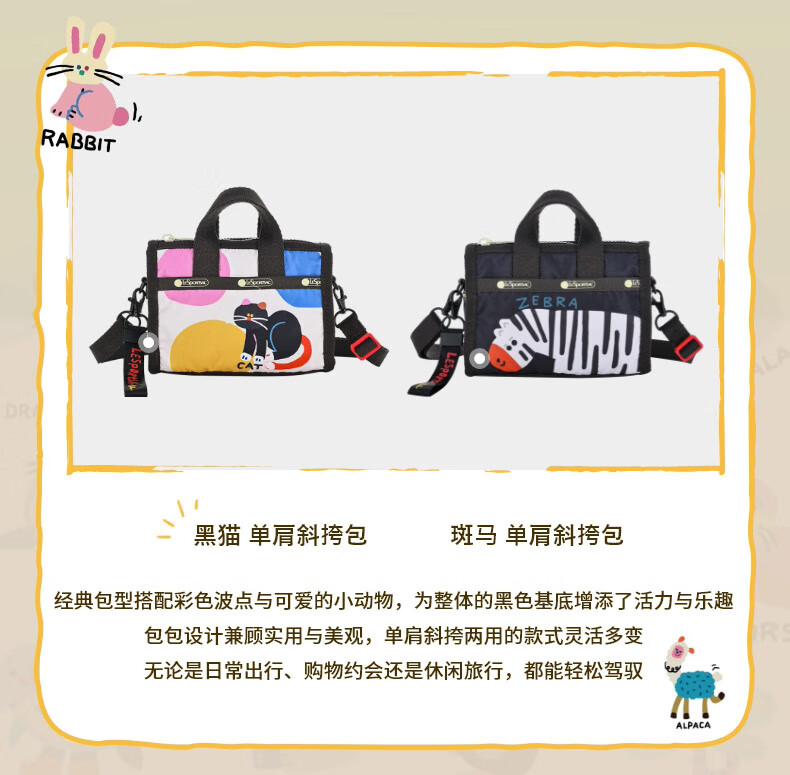 LeSportsac new funny duck joint crossbody bag cute printed clutch bag shoulder bag gift for girls Zebra