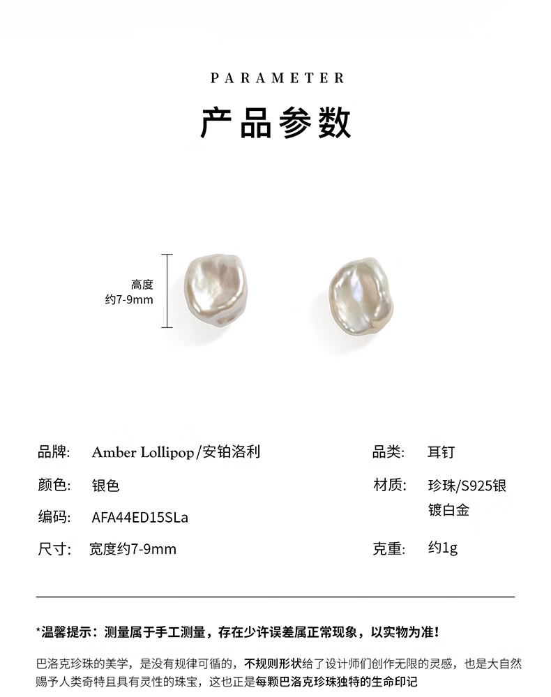 Amber Lollipop Baroque Pearl Earrings Women's High-end Petal Earrings Anniversary Birthday Gift for Girlfriend and Wife Silver