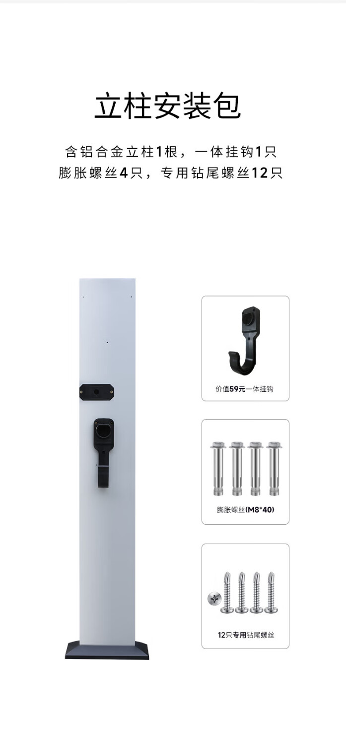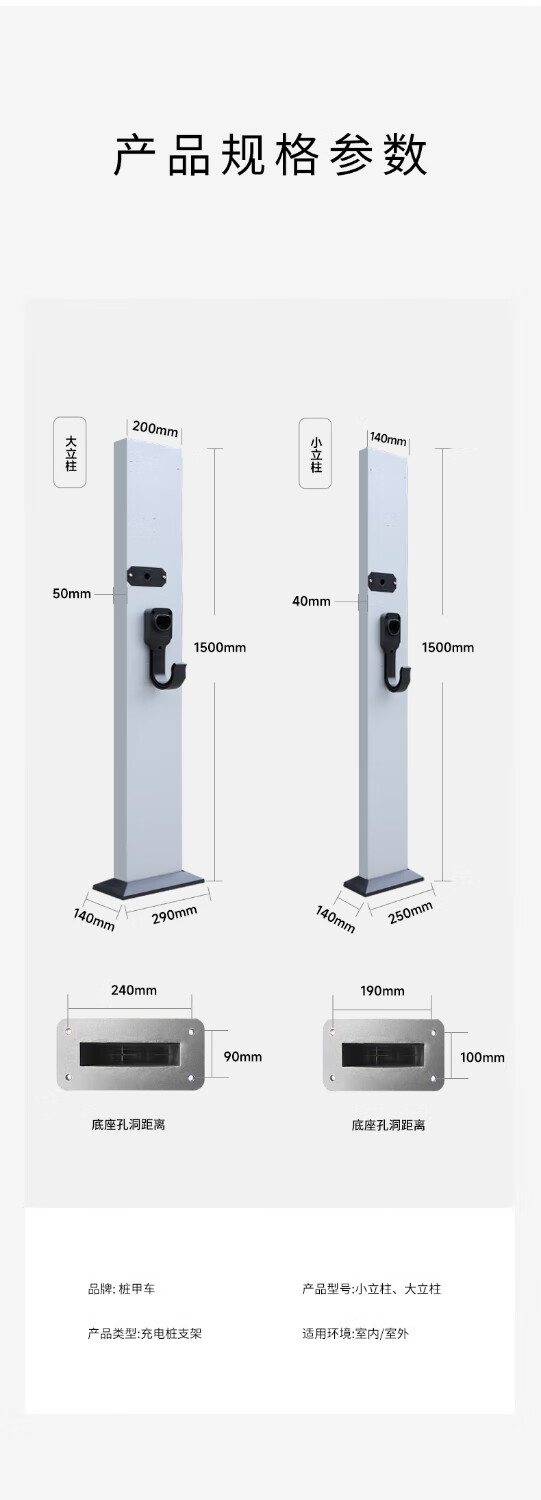 Pile A car charging pile pole suitable for Tesla Porsche BMW BYD Xiaopeng aluminum alloy bracket small column 150*14cm-ordinary hook