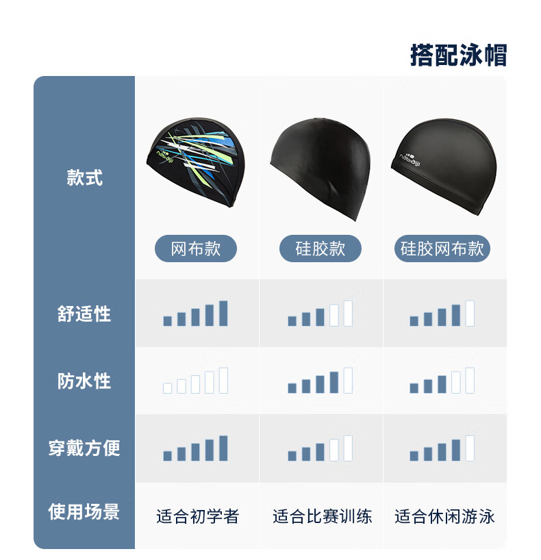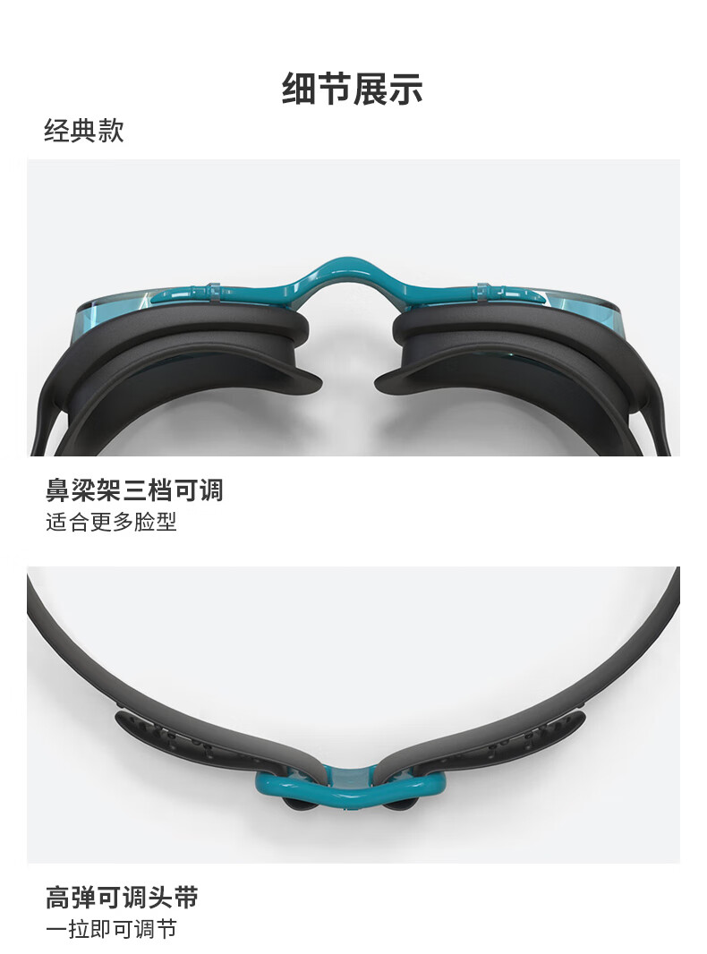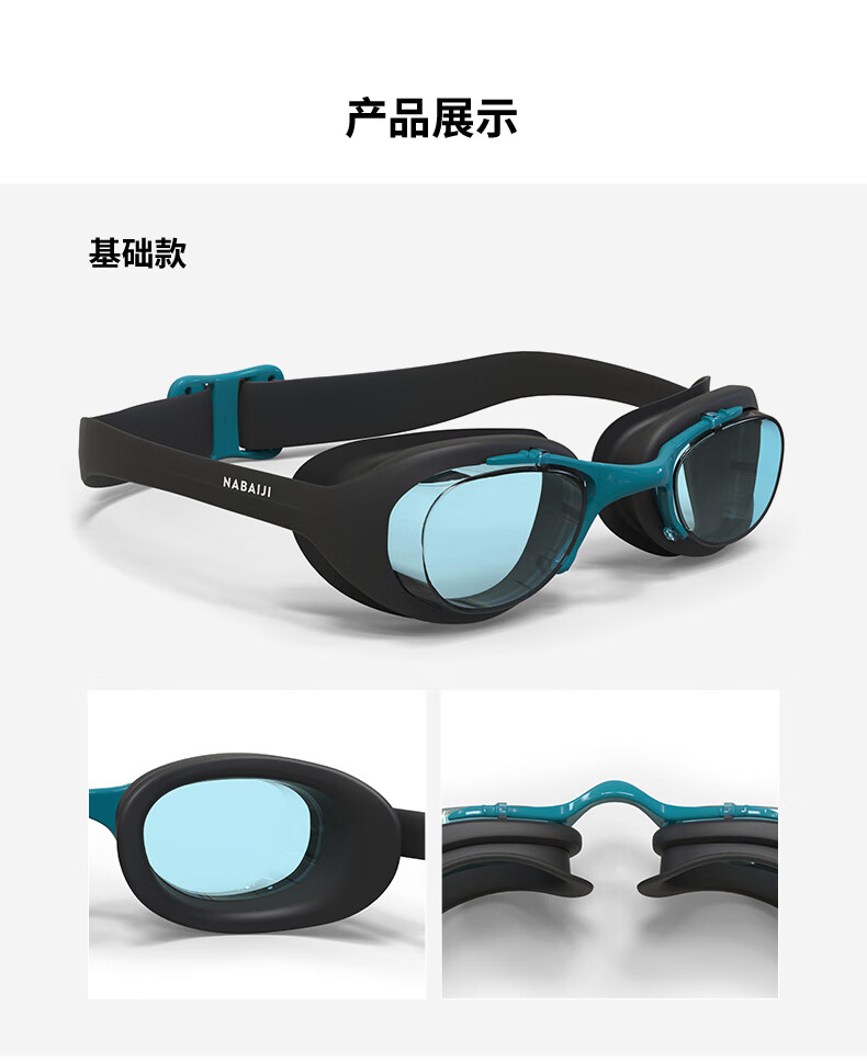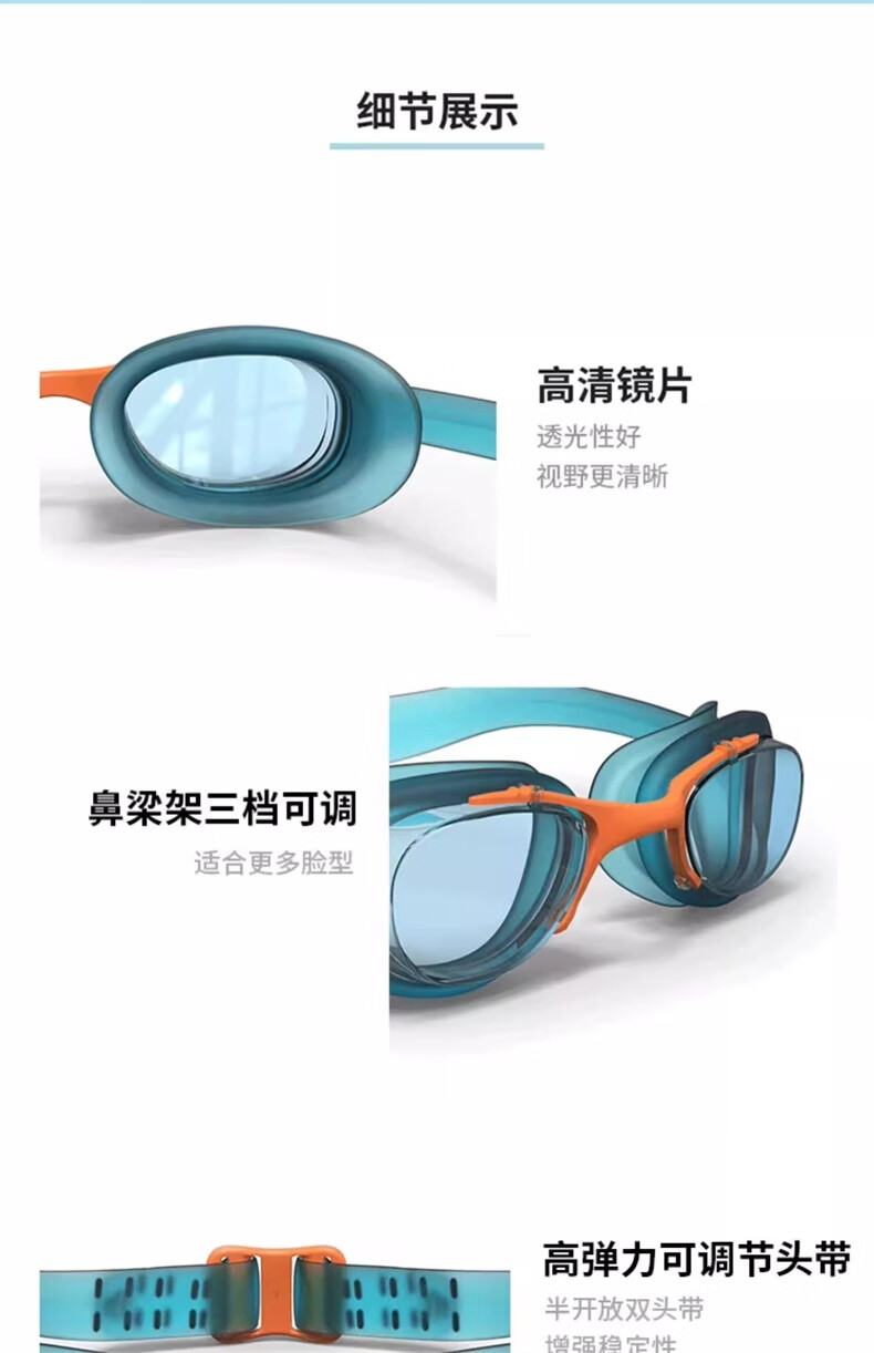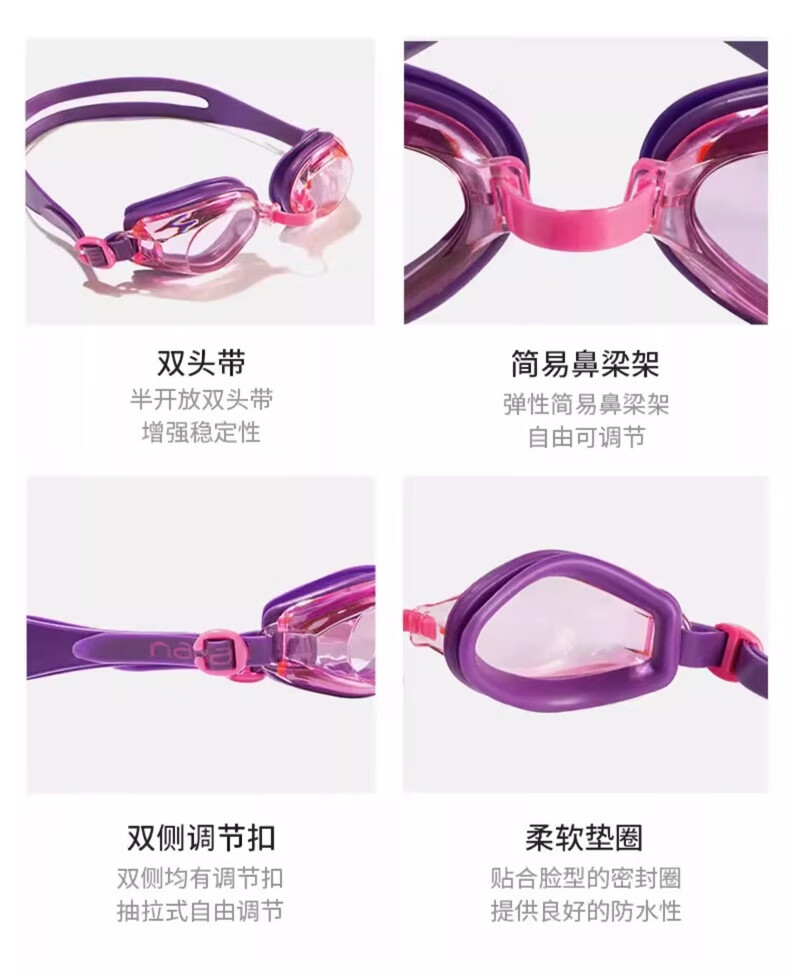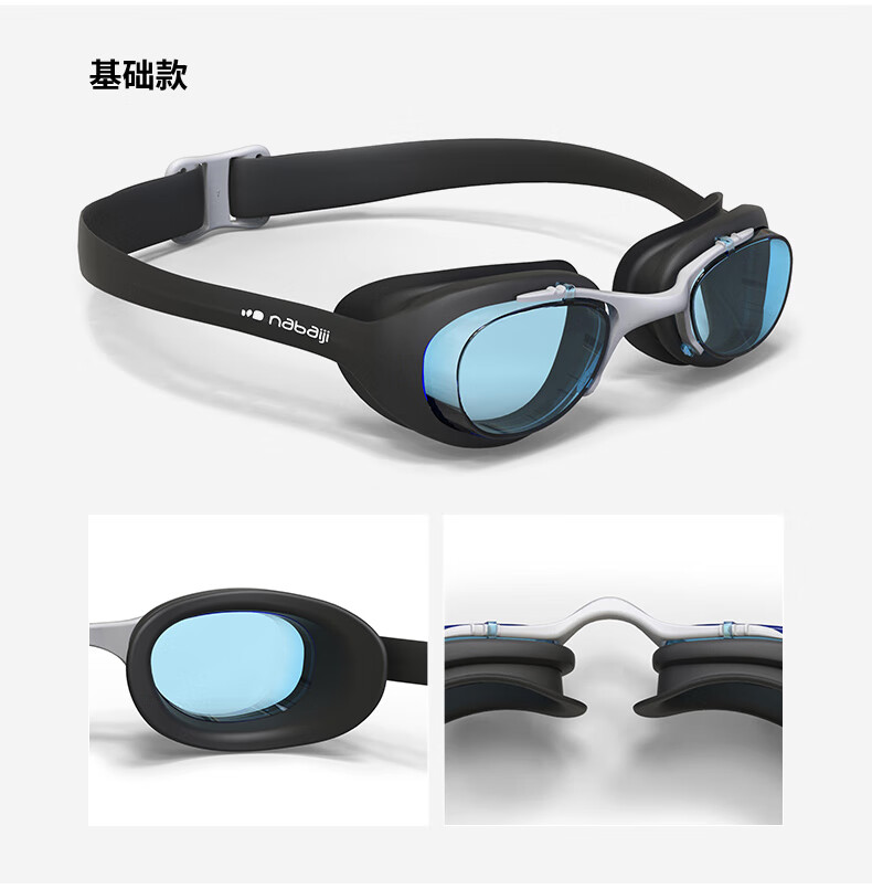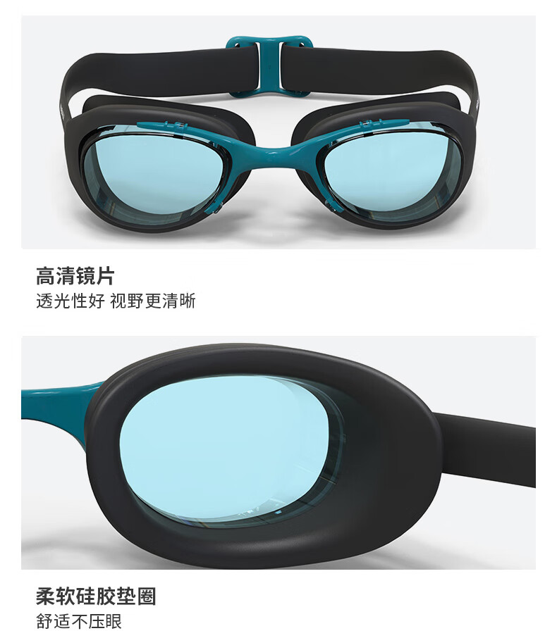 Decathlon (DECATHLON) small-frame swimming goggles high-definition anti-fog and sunscreen swimming goggles training equipment for children and adults, suitable for beginners, solid color, quiet black (suitable for teenagers)