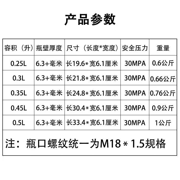 High pressure gas cylinder 30mpa aluminum bottle diving soda water CO2 one-piece explosion-proof cylinder small gas cylinder black 0.35