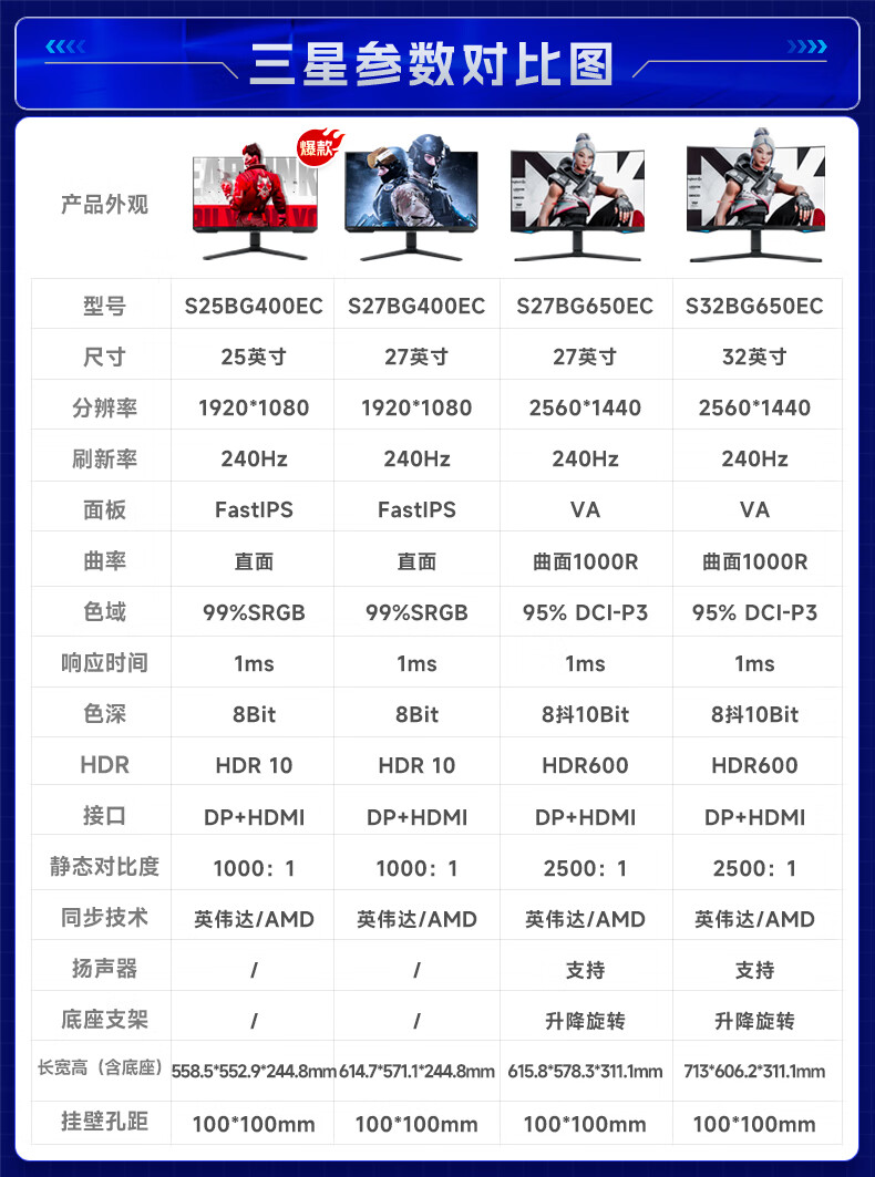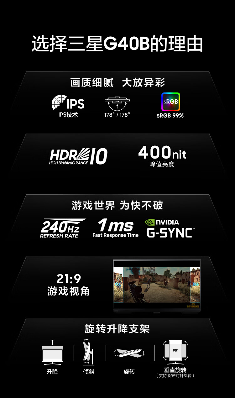 Samsung (SAMSUNG) 24.5-inch 1K 240HZ IPS high-brush monitor, professional e-sports game lifting and rotating 1MS responsive high color gamut screen 25 1K 240 S25BG400EC worry-free service, no bright spots | 180 days only replacement without repair | color correction service