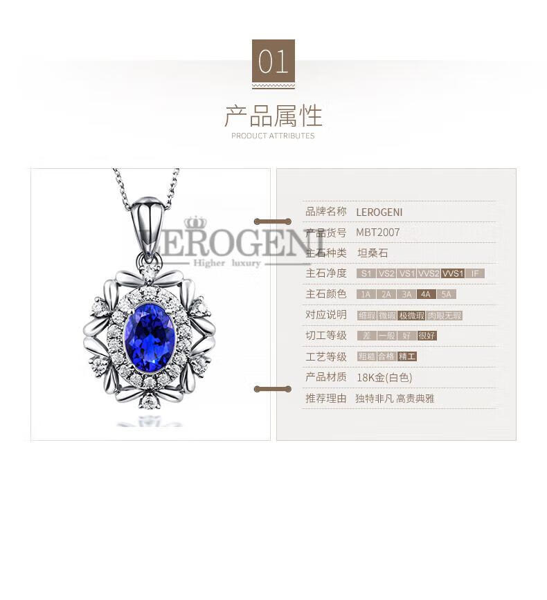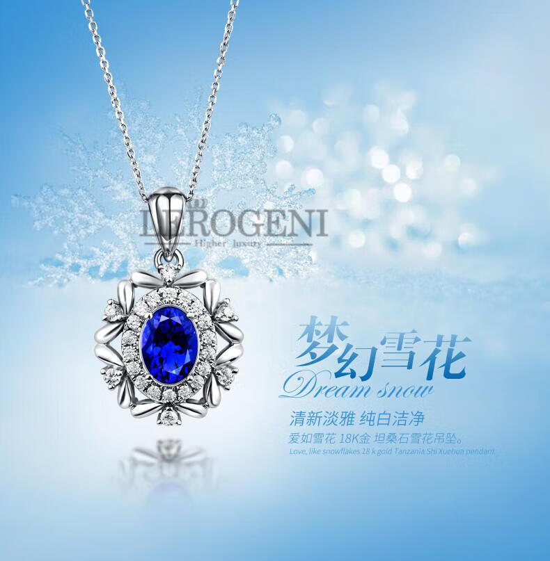 Lirokini Necklace Women's Tanzanite Blue Gemstone Pendant High-end Luxury Jewelry Women's Day Birthday Gift 2-Carat Tanzanite Necklace Brand Gift Box