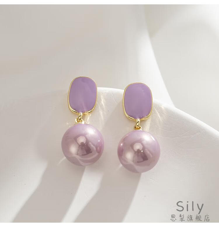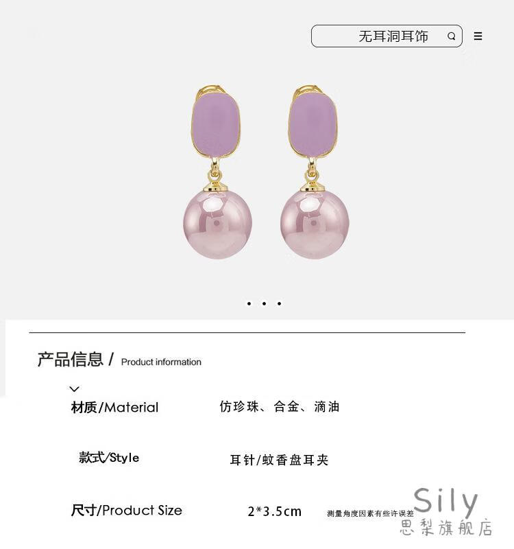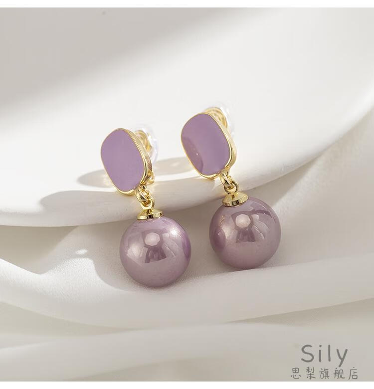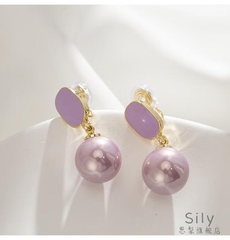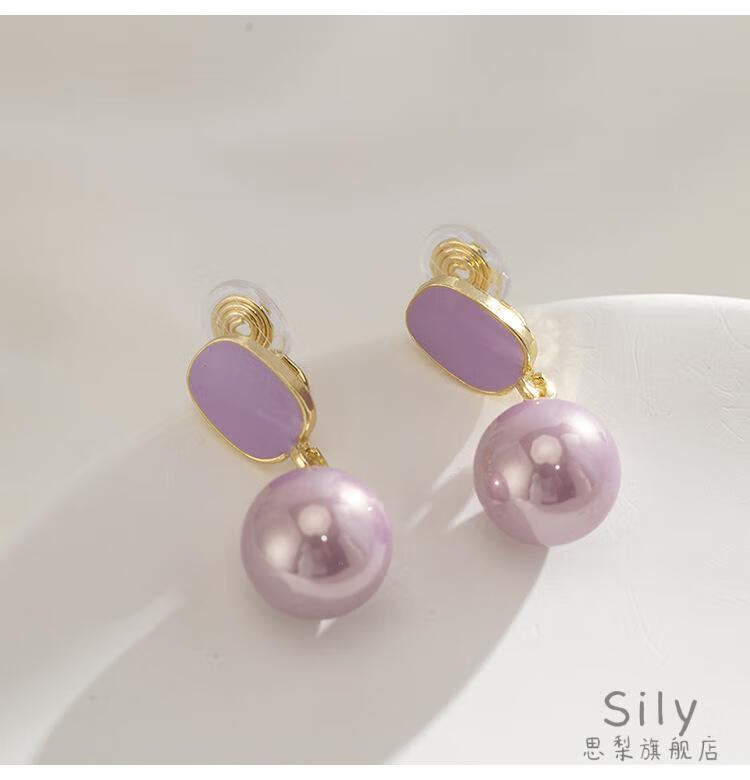Sili Korean temperament socialite purple pearl earrings female sweat Internet celebrity trendy fashion versatile ear clip without piercing 1029 purple pearl mosquito coil ear clip