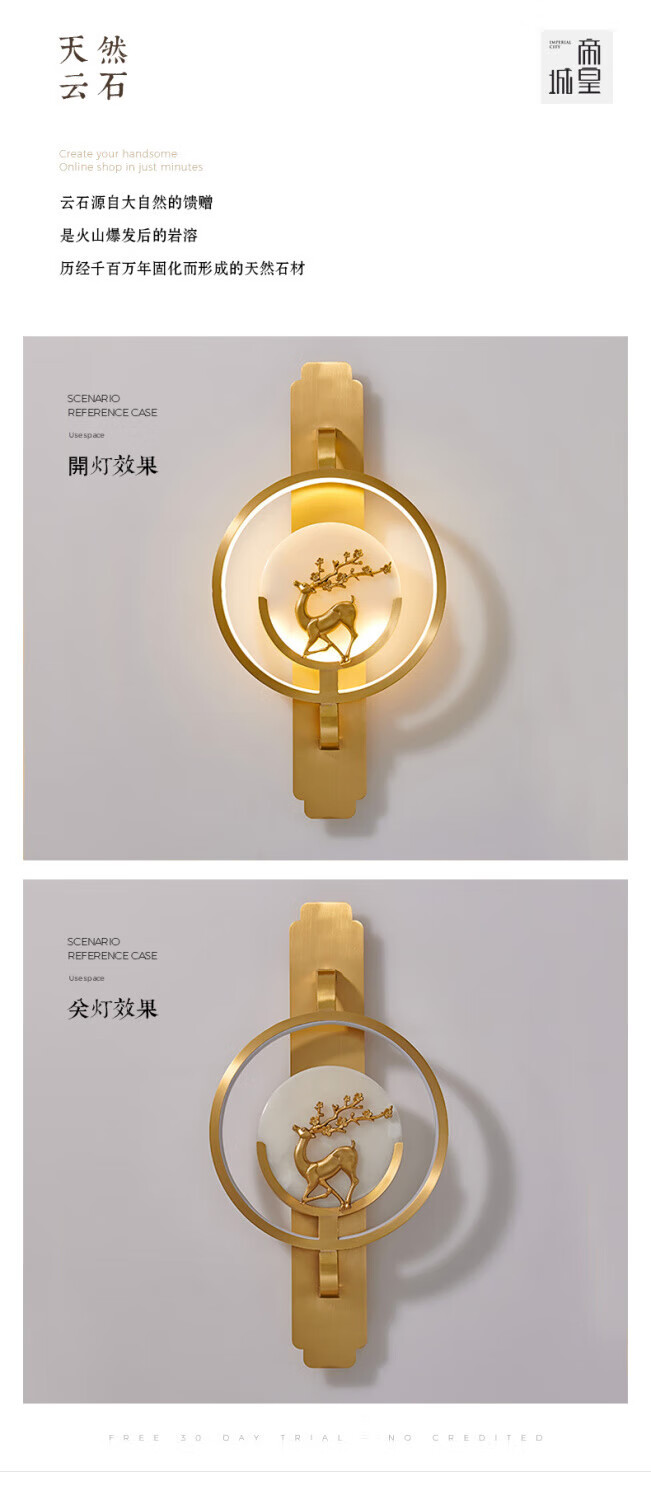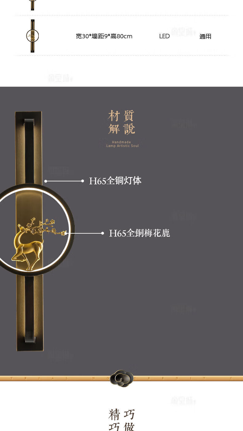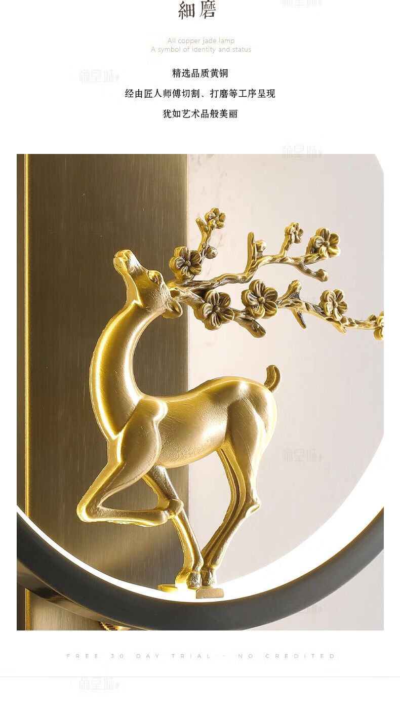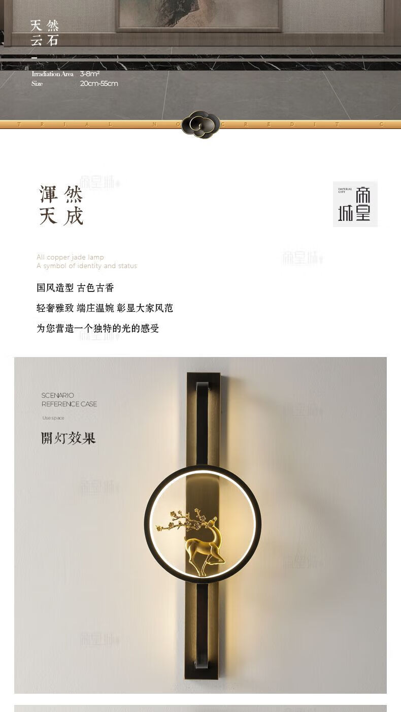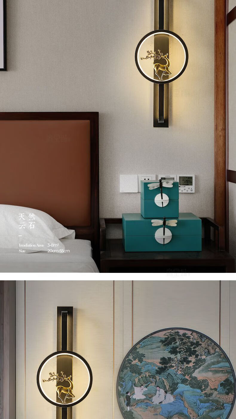 Runhua New Year's New Chinese Style Full Copper Wall Lamp Light Luxury Living Room TV Background Wall Lamp Modern Deer Head Decoration Bedroom Bedside Aisle Lamp B075-Height 55CM (Black Left) Iron Style