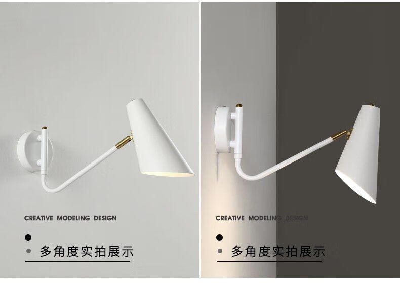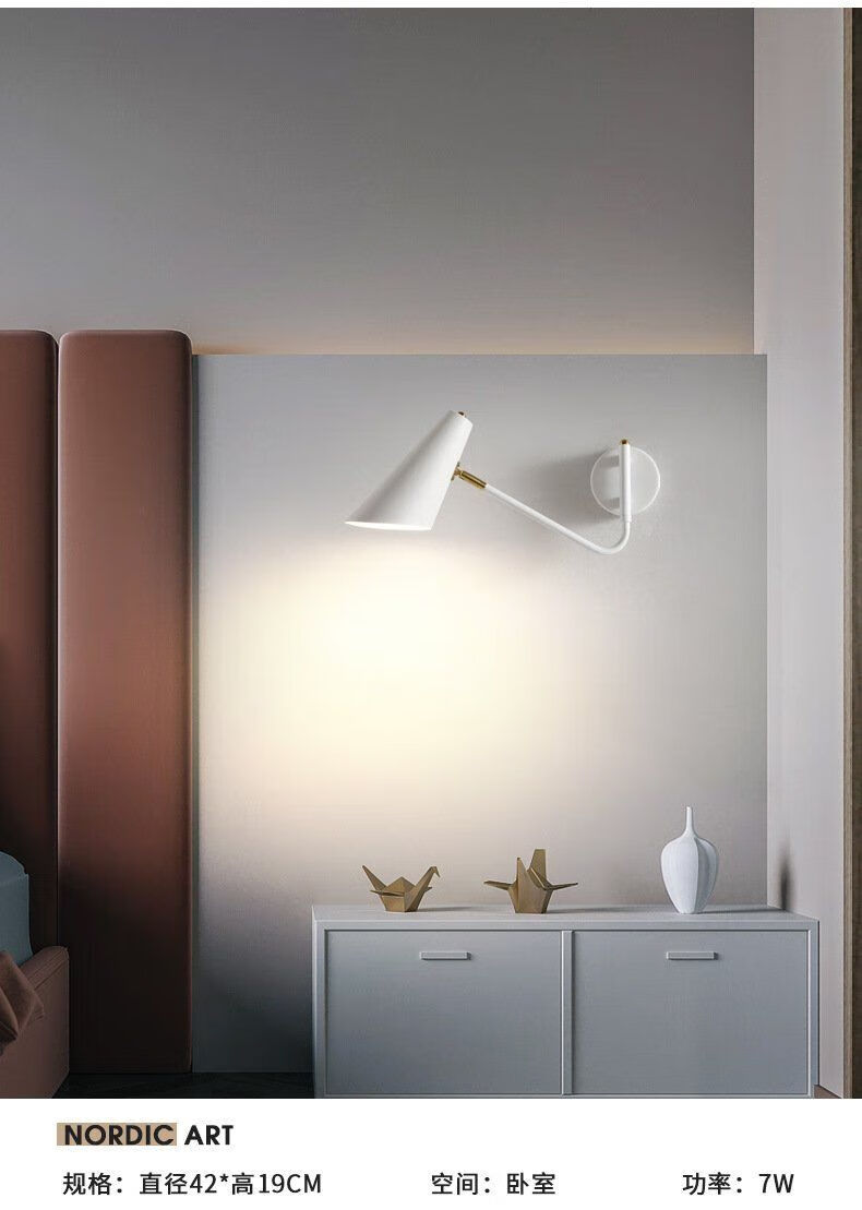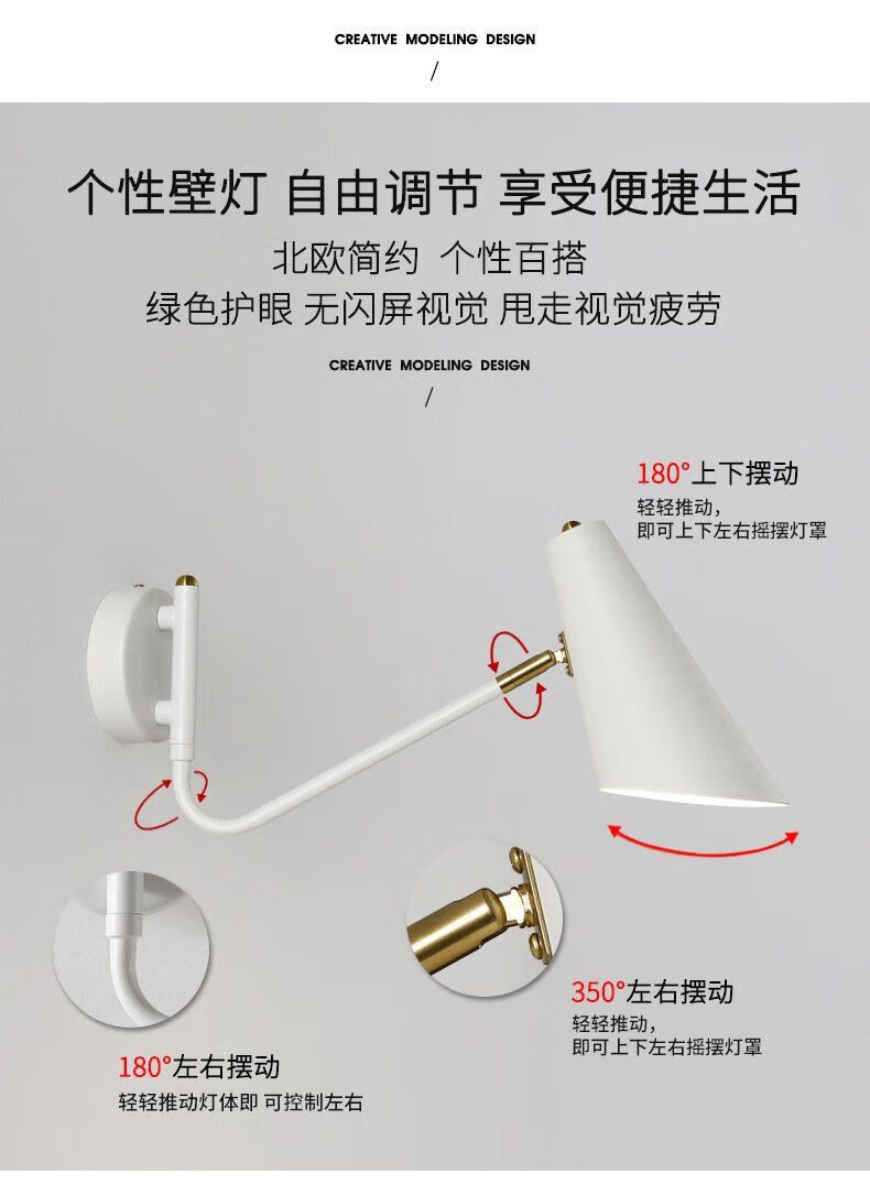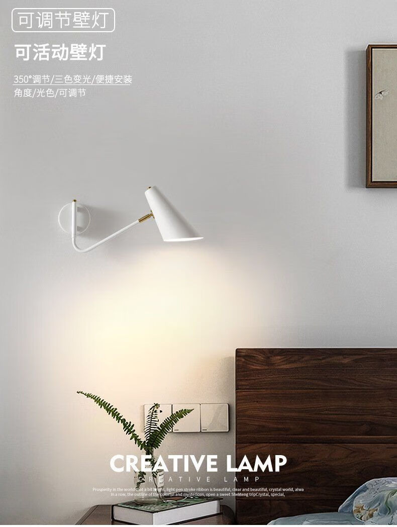 Runhuanian wall lamp bedroom bedside lamp creative with switch desk eye protection wall lamp light luxury swing arm rotating white wall lamp simple white without light source