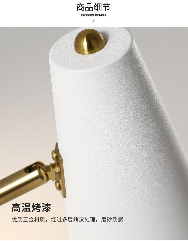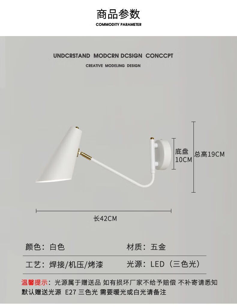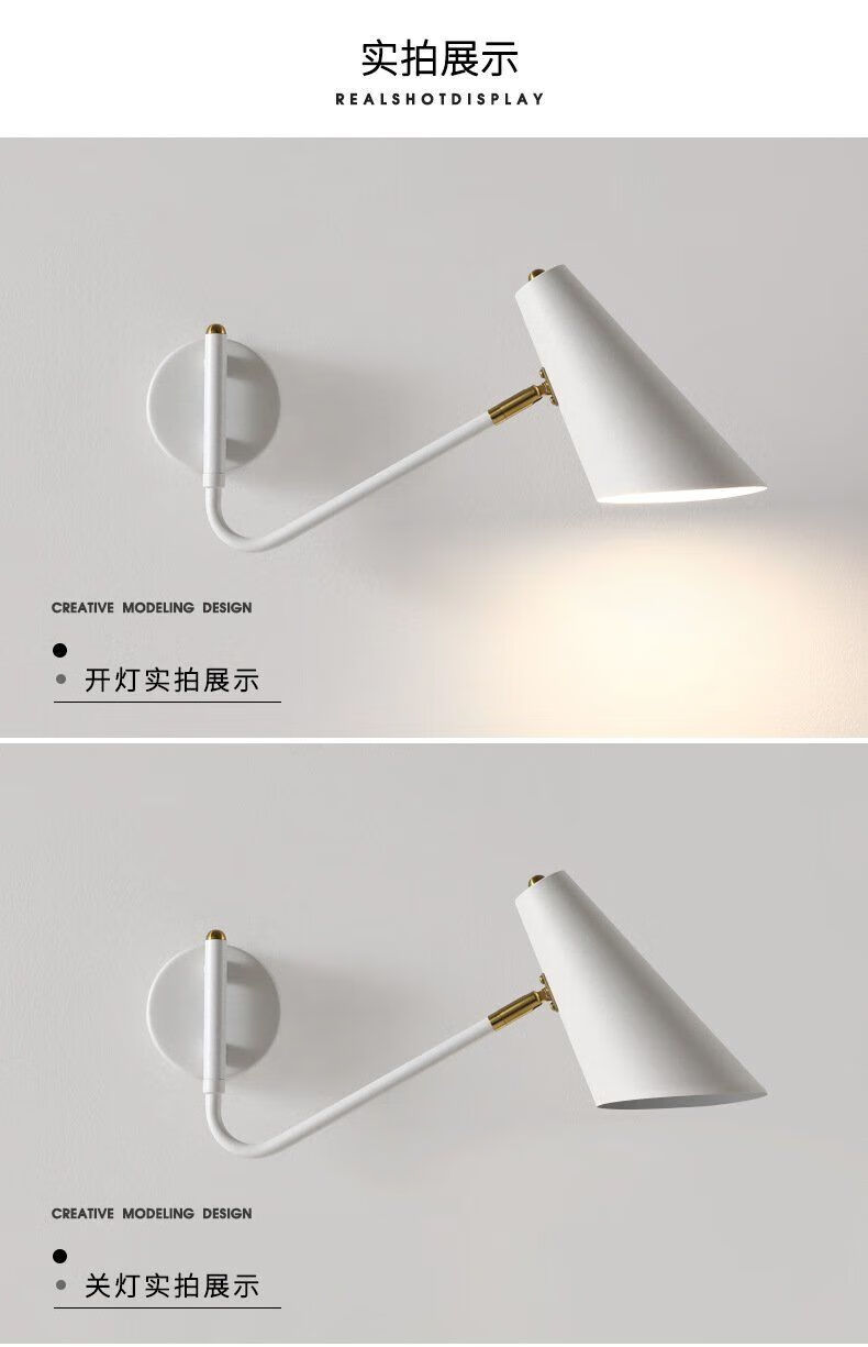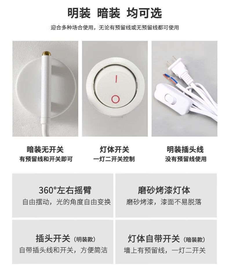 Runhuanian wall lamp bedroom bedside lamp creative with switch desk eye protection wall lamp light luxury swing arm rotating white wall lamp simple white without light source