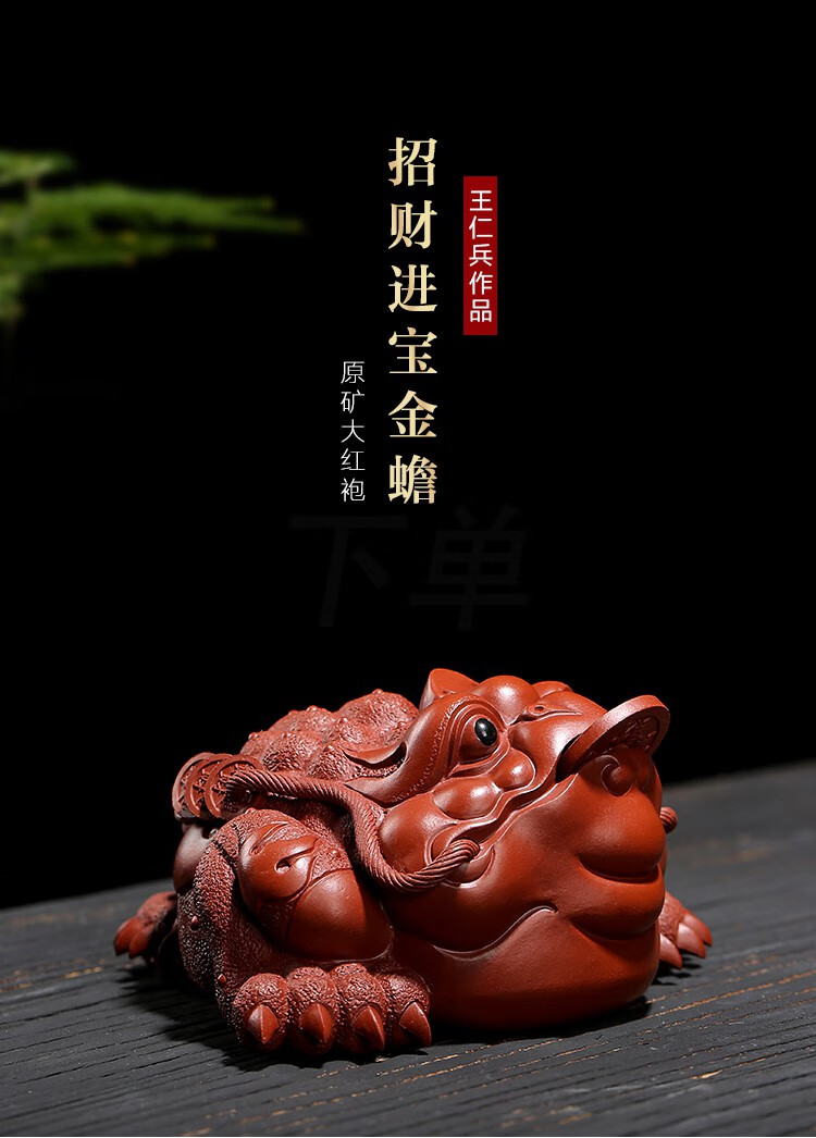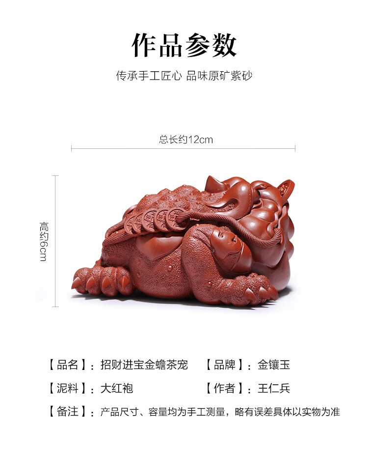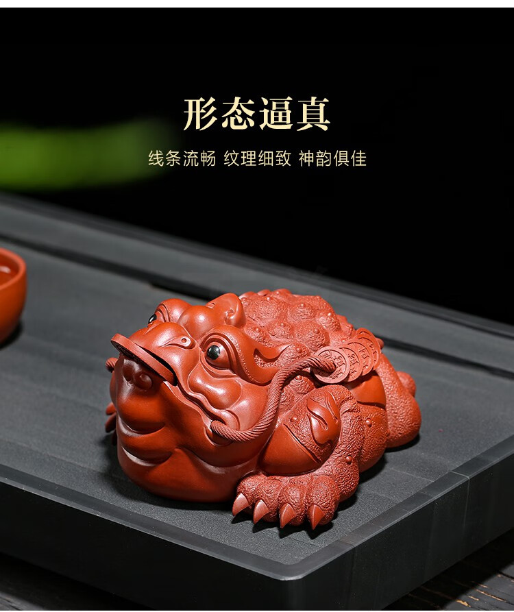 Gold inlaid jade teacher Wang Renbing’s handmade three-legged golden toad tea pet tea table ornaments Yixing purple sand tea table Kung Fu tea set Wang Renbing’s new golden toad to attract wealth