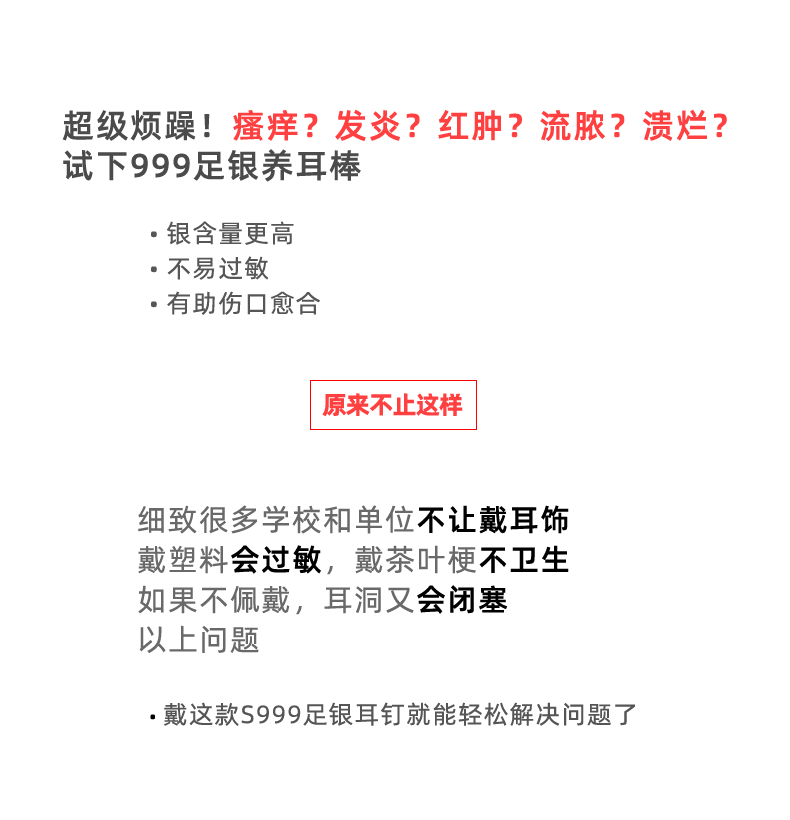 DAISY DREAM999 Foot Tremella Stick Round Head Earrings Women's Ear Holes Prevent Falling Out When Sleeping No-Pick Small Earrings Ear Bone Nail Peas Earrings 2 Pieces 10mm Suitable for Ear Lobe 999 Foot Tremella Stick