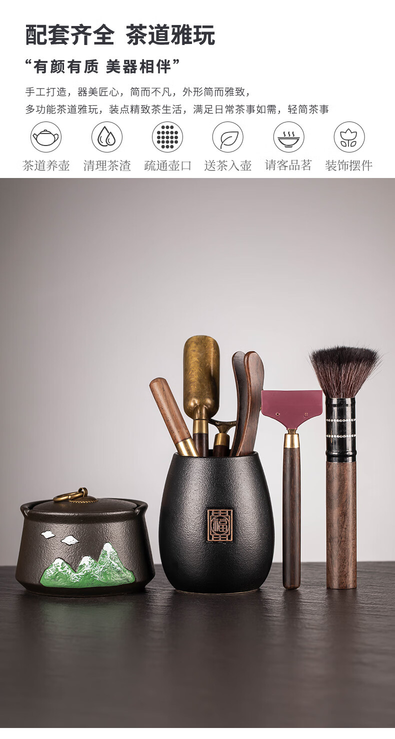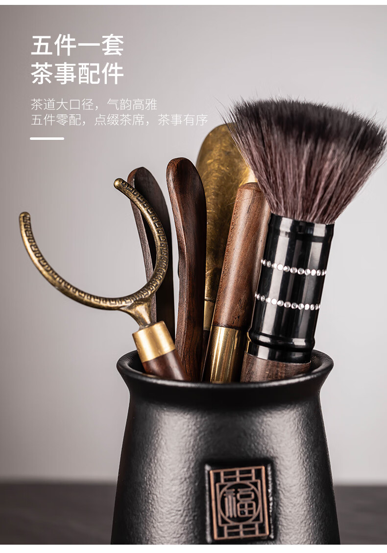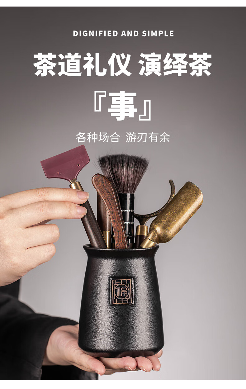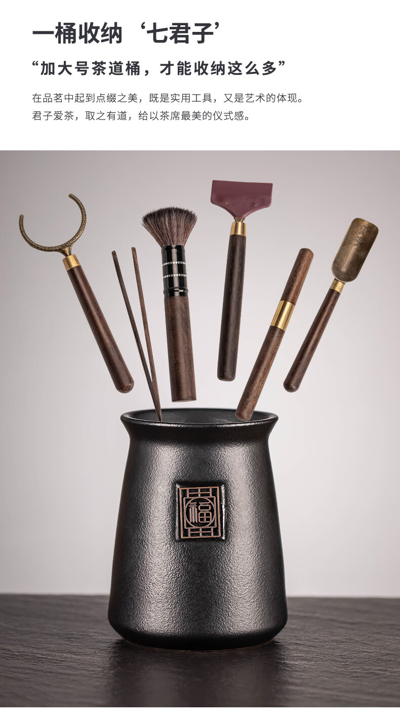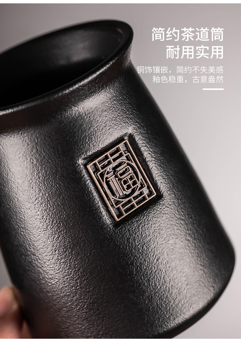 Craftsman's Preface Tea Ceremony Six Gentlemen Ceramic Tea Cylinder Ebony Sauce Tea Needle Teaspoon Pot Pen Tea Clip Tea Accessories Tea Pet <Fang Fu> Tea Ceremony Barrel - Single Barrel