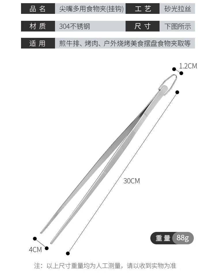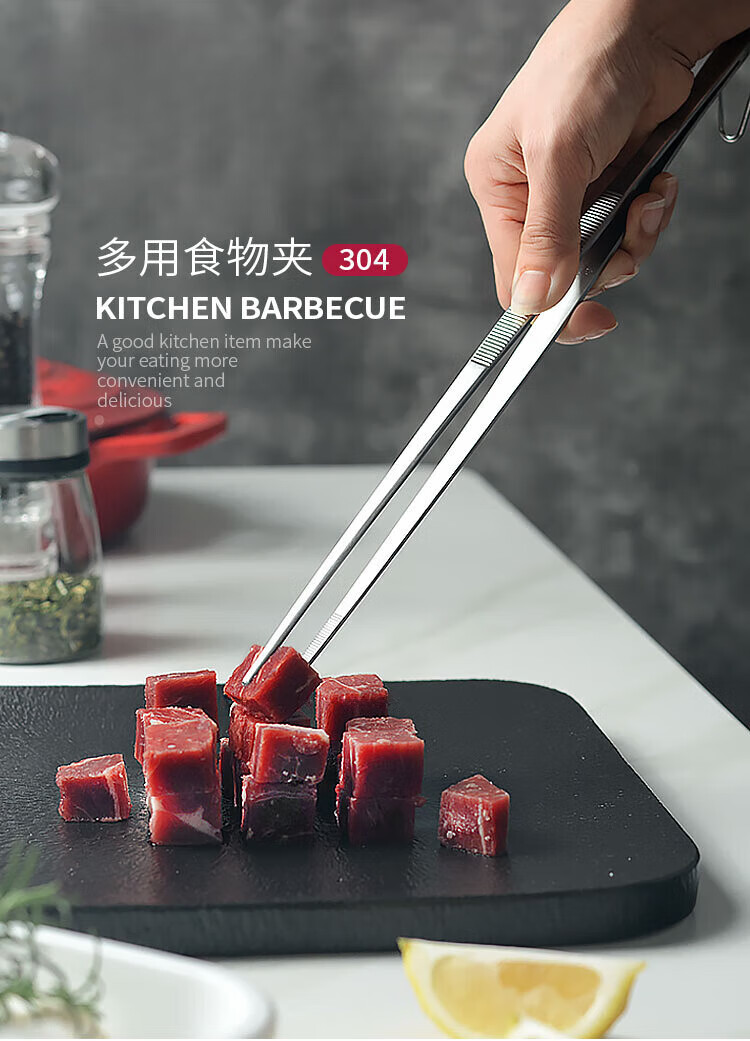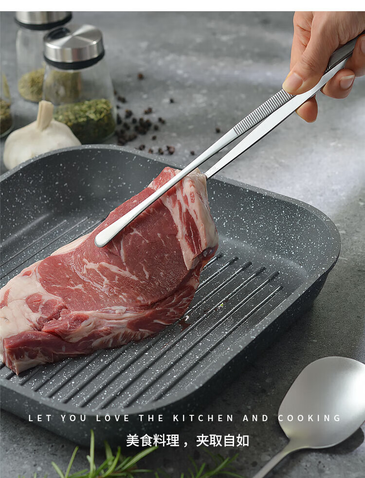 The legend of the pot kitchen tweezers air fryer cooking tongs 304 food clips barbecue steak clips stainless steel barbecue clips TONG01-304 round head stainless steel food clips