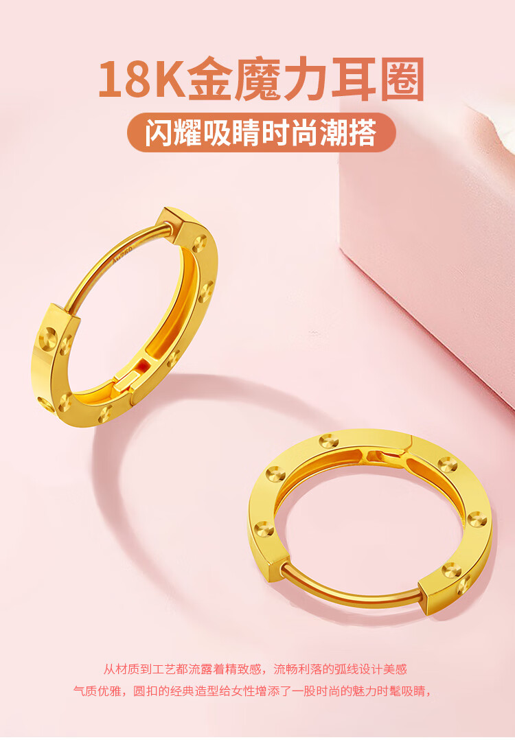 DL 1998 Fat Donglai same style 18k gold earrings ear buckle 18K gold rose gold gold earrings color gold single ear bone small earring k l8k rose gold single outer diameter 9mm about 0.26 grams