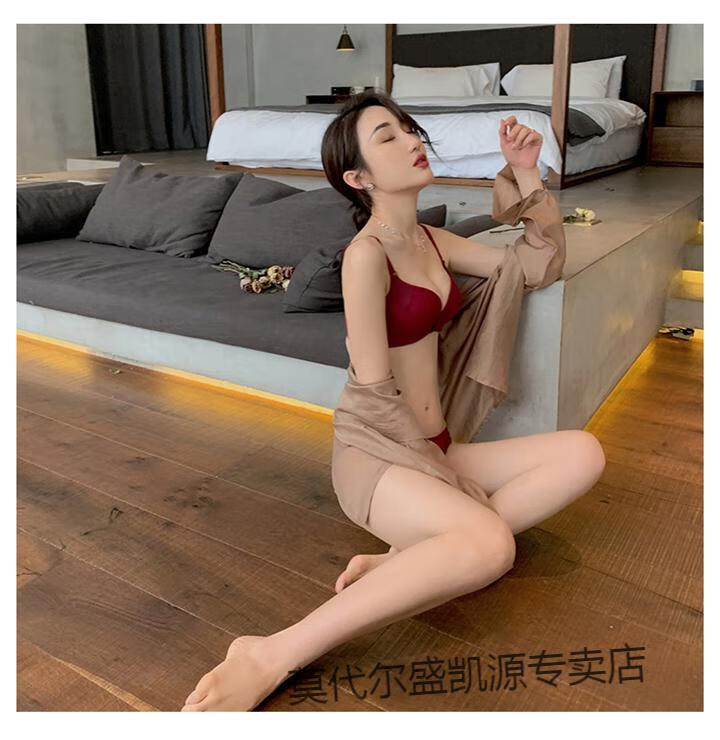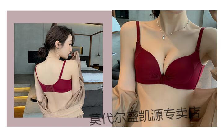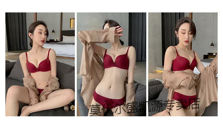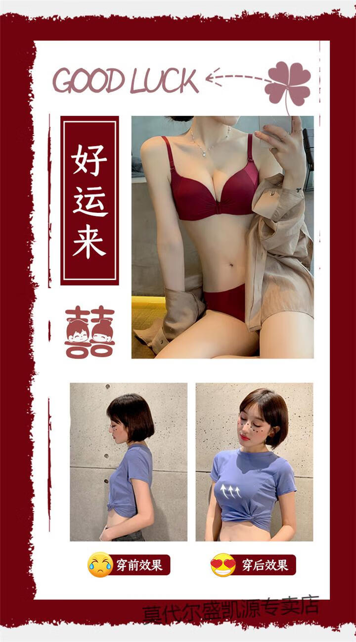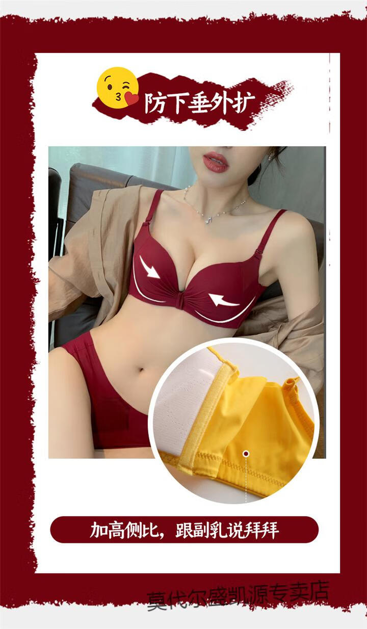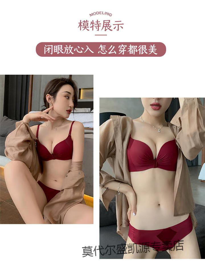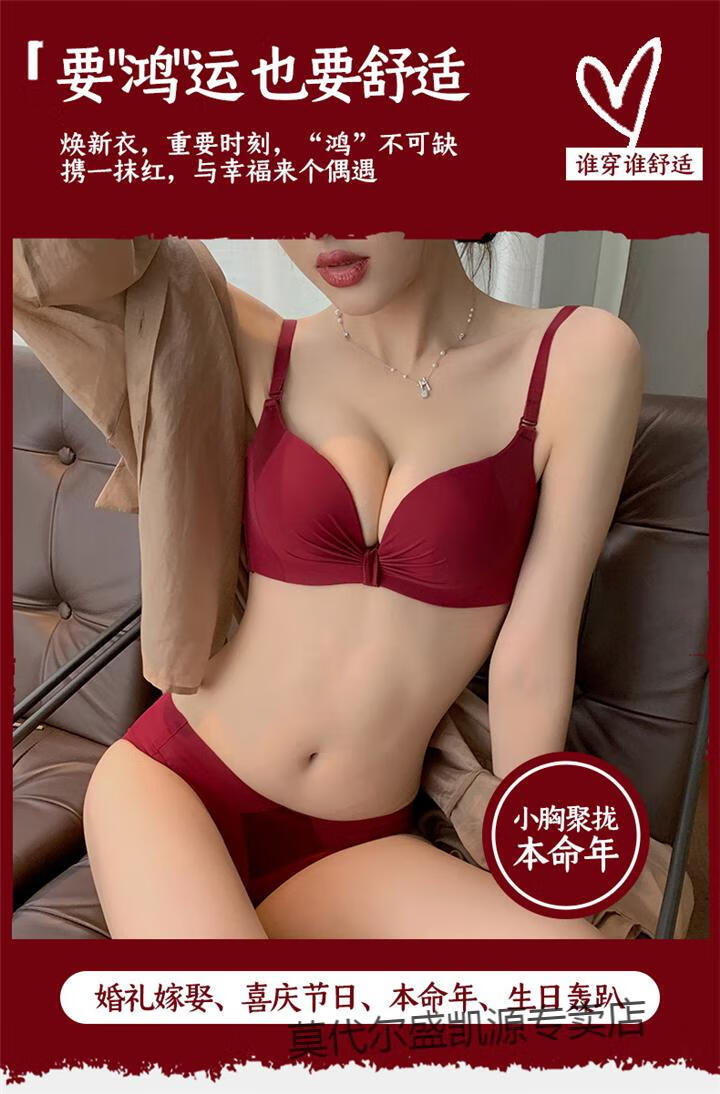 Modal Red Underwear Women's Small Breast Push Up Wedding Bride's Zodiac Year Women's Wireless Bra Panties Set Burgundy (Thin 1cm) Set 80B 80B
