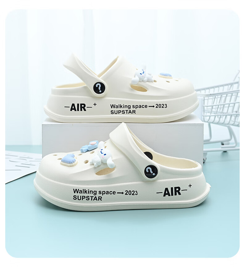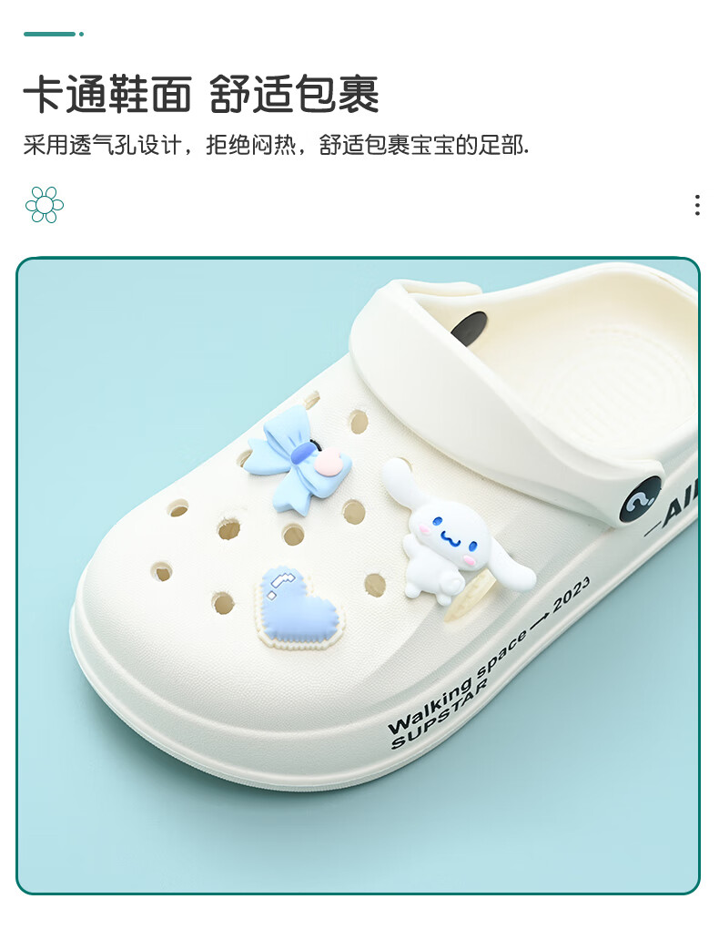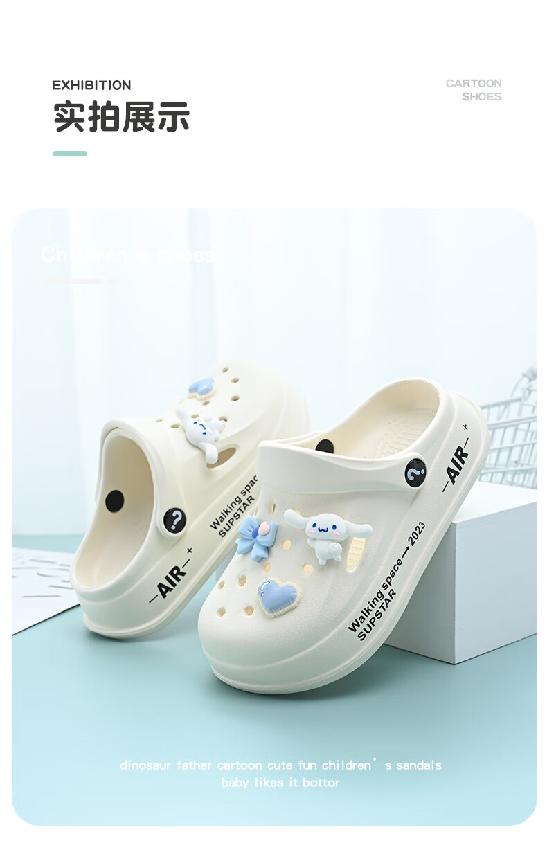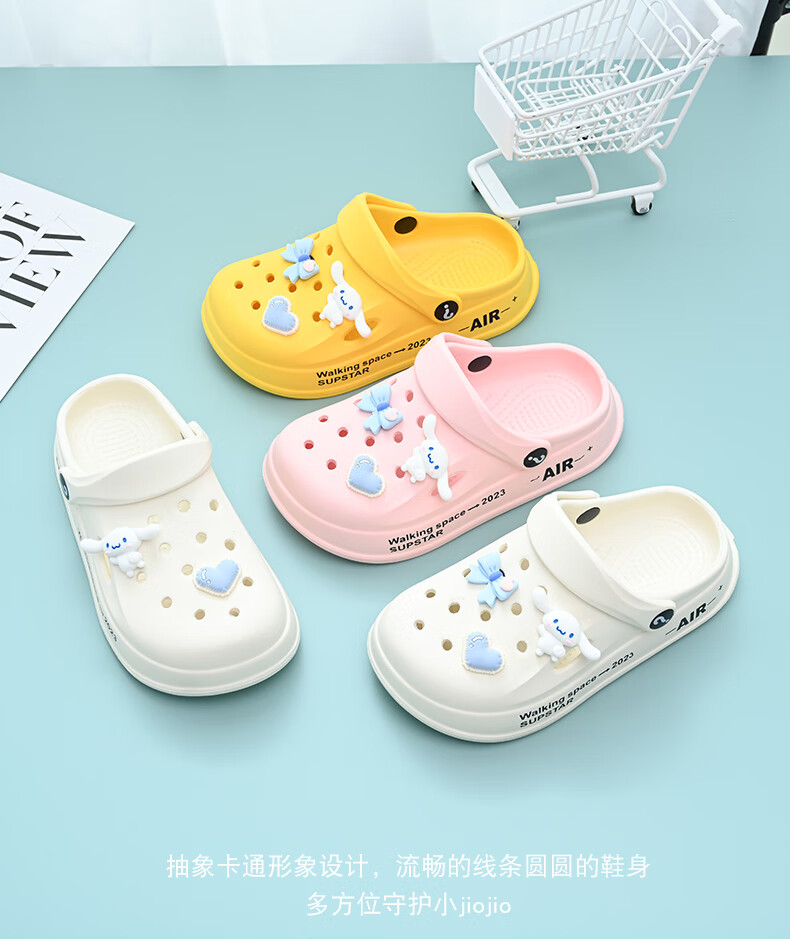 G.duck girls' clogs, summer children's slippers, breathable soft-soled outer wear indoor non-slip cinnamon dog slippers for medium and large children, off-white (Melody), size 33, 32-inner length 21 cm