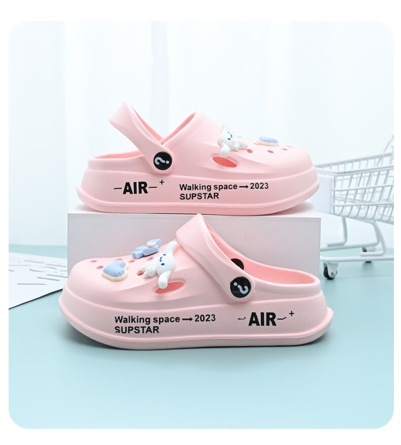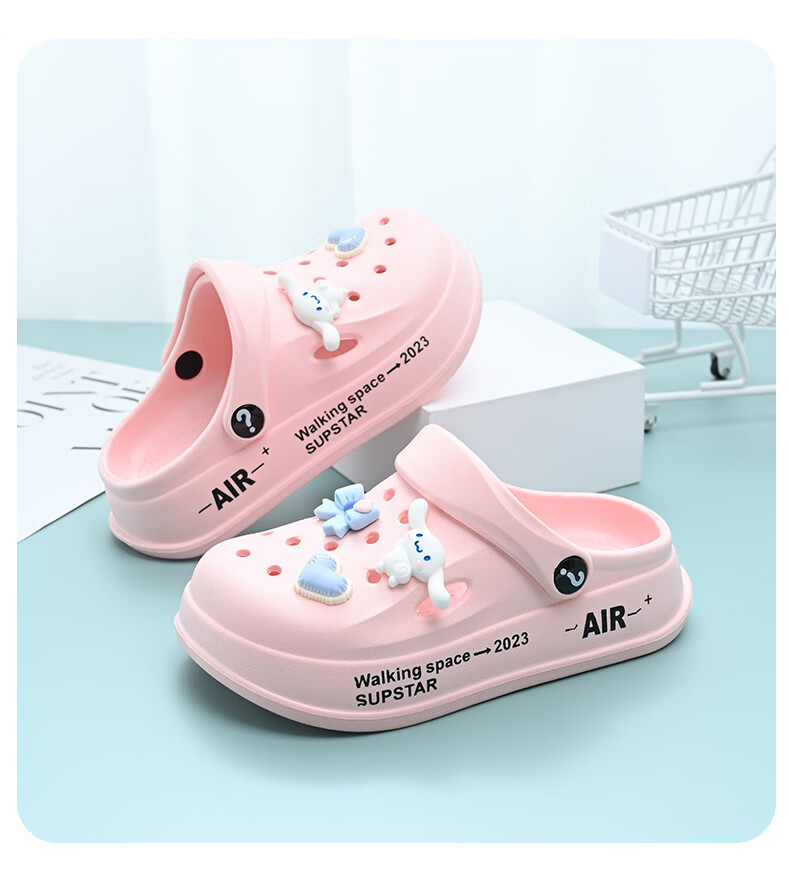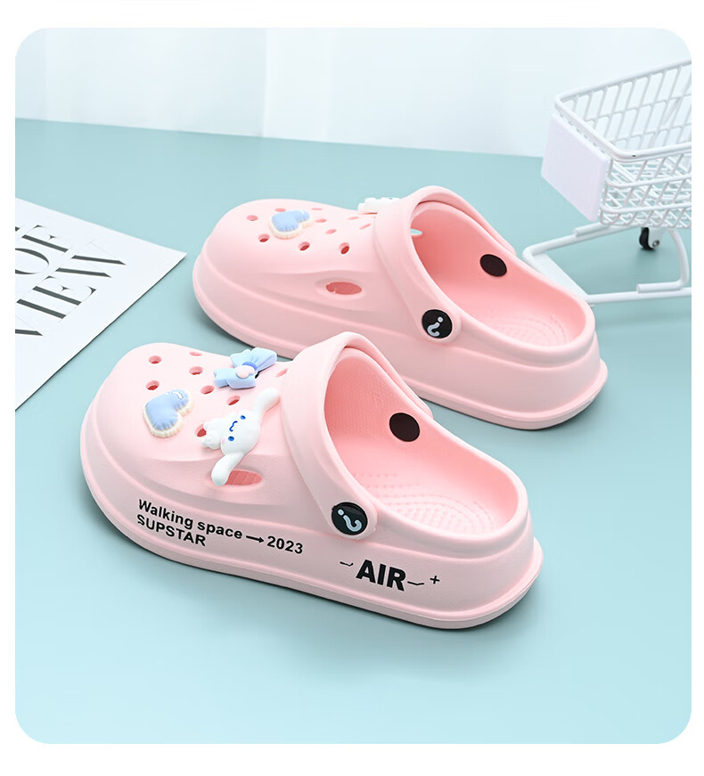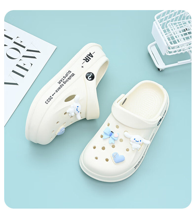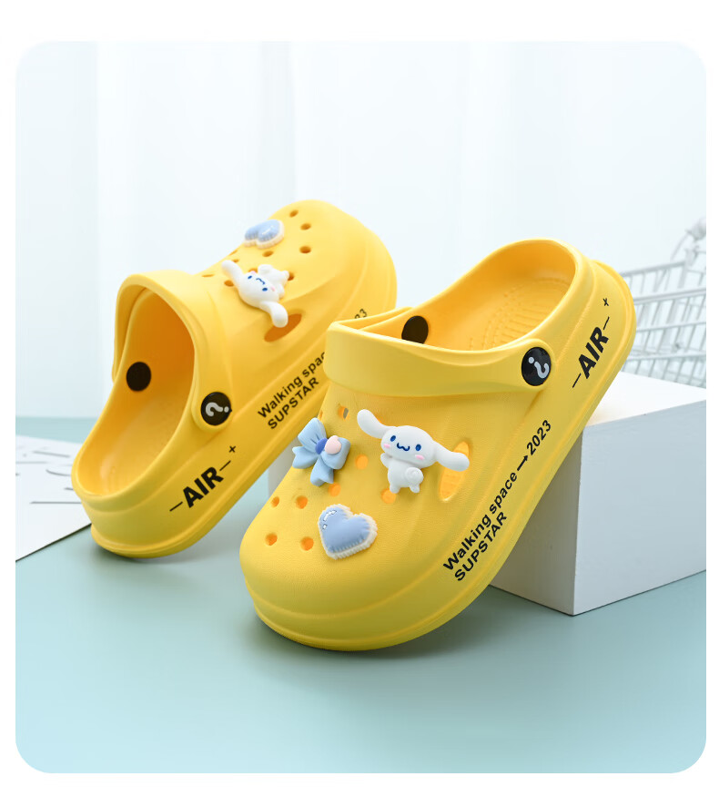 G.duck girls' clogs, summer children's slippers, breathable soft-soled outer wear indoor non-slip cinnamon dog slippers for medium and large children, off-white (Melody), size 33, 32-inner length 21 cm