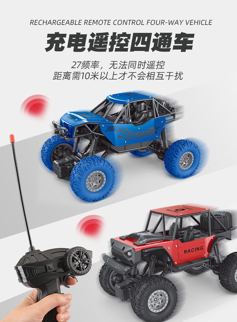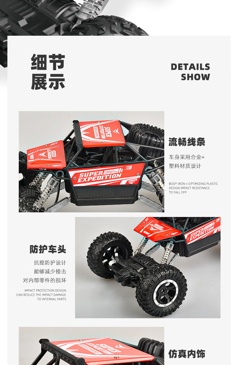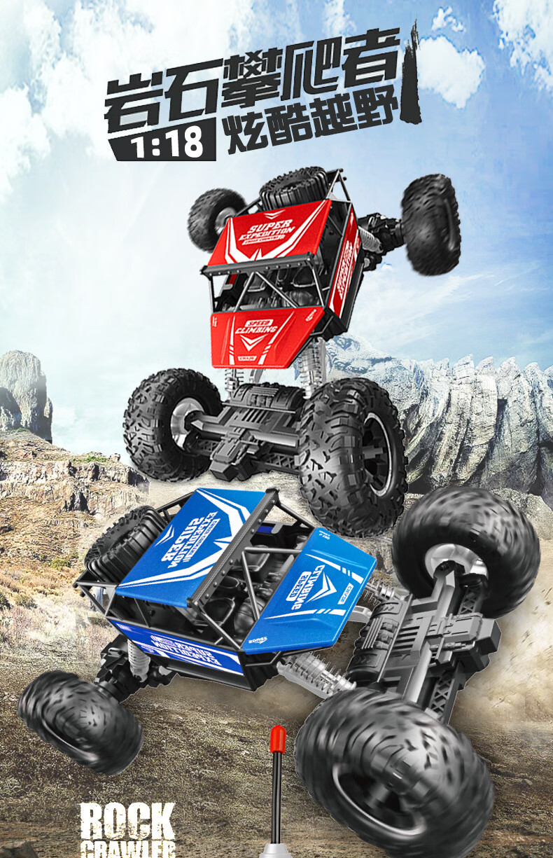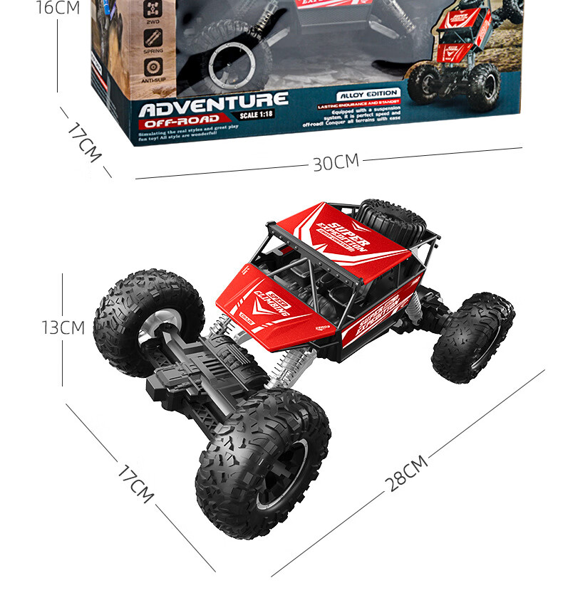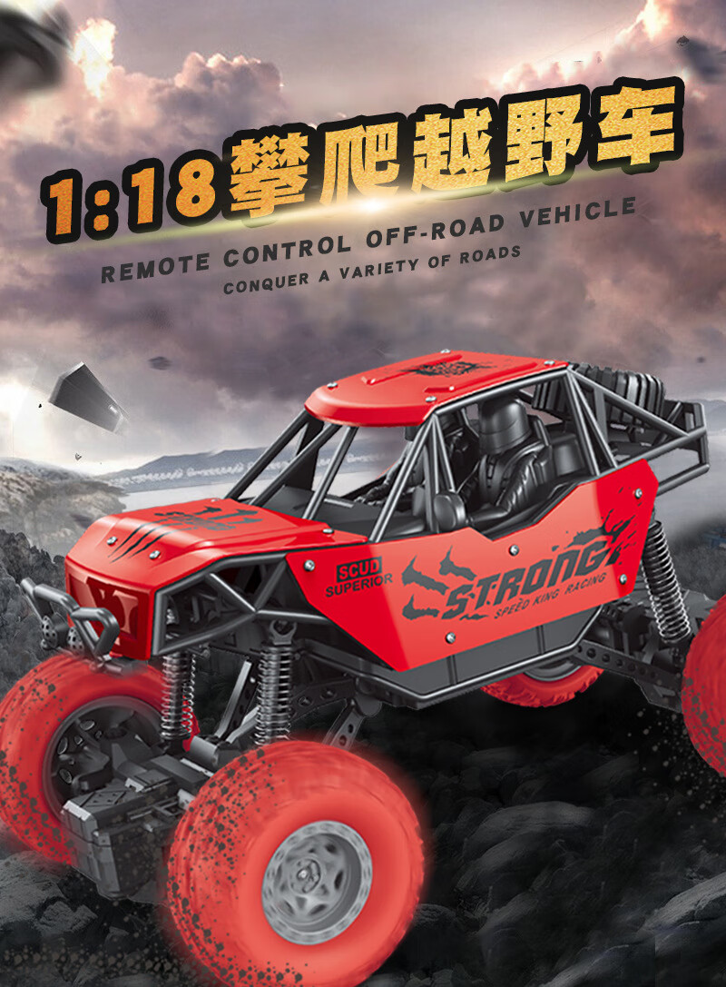 Kankeirr cross-border 1 18 remote control off-road climbing car 2.4G four-way drift stunt car children's electric toy car model 6061 red (with lights) 500g 1 18/ window color box