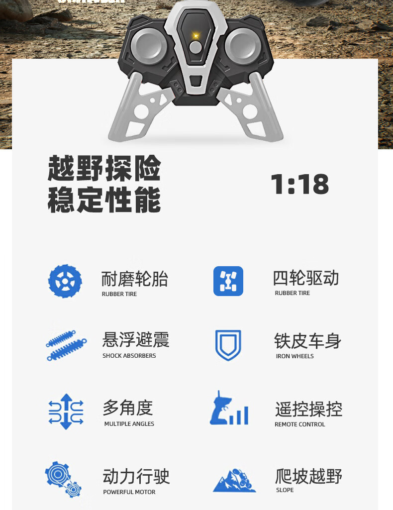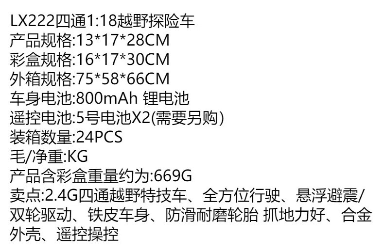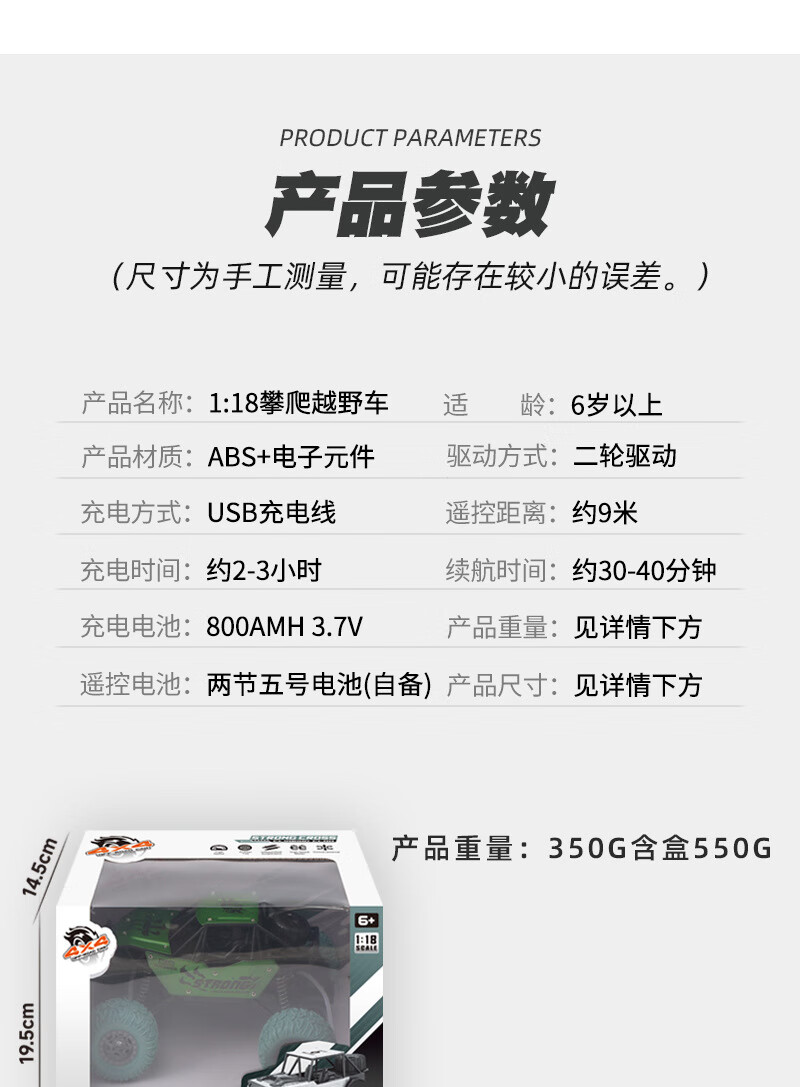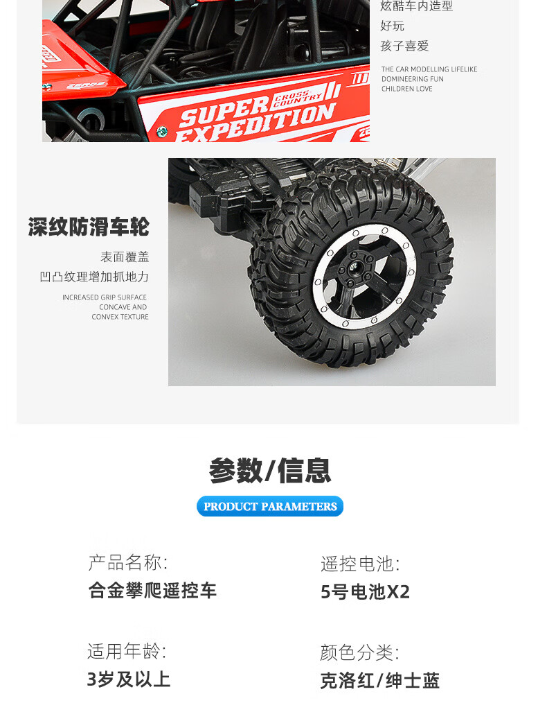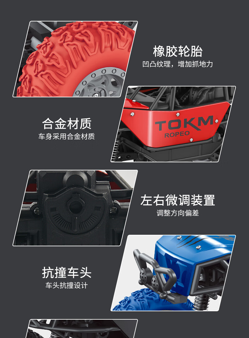 Kankeirr cross-border 1 18 remote control off-road climbing car 2.4G four-way drift stunt car children's electric toy car model 6061 red (with lights) 500g 1 18/ window color box